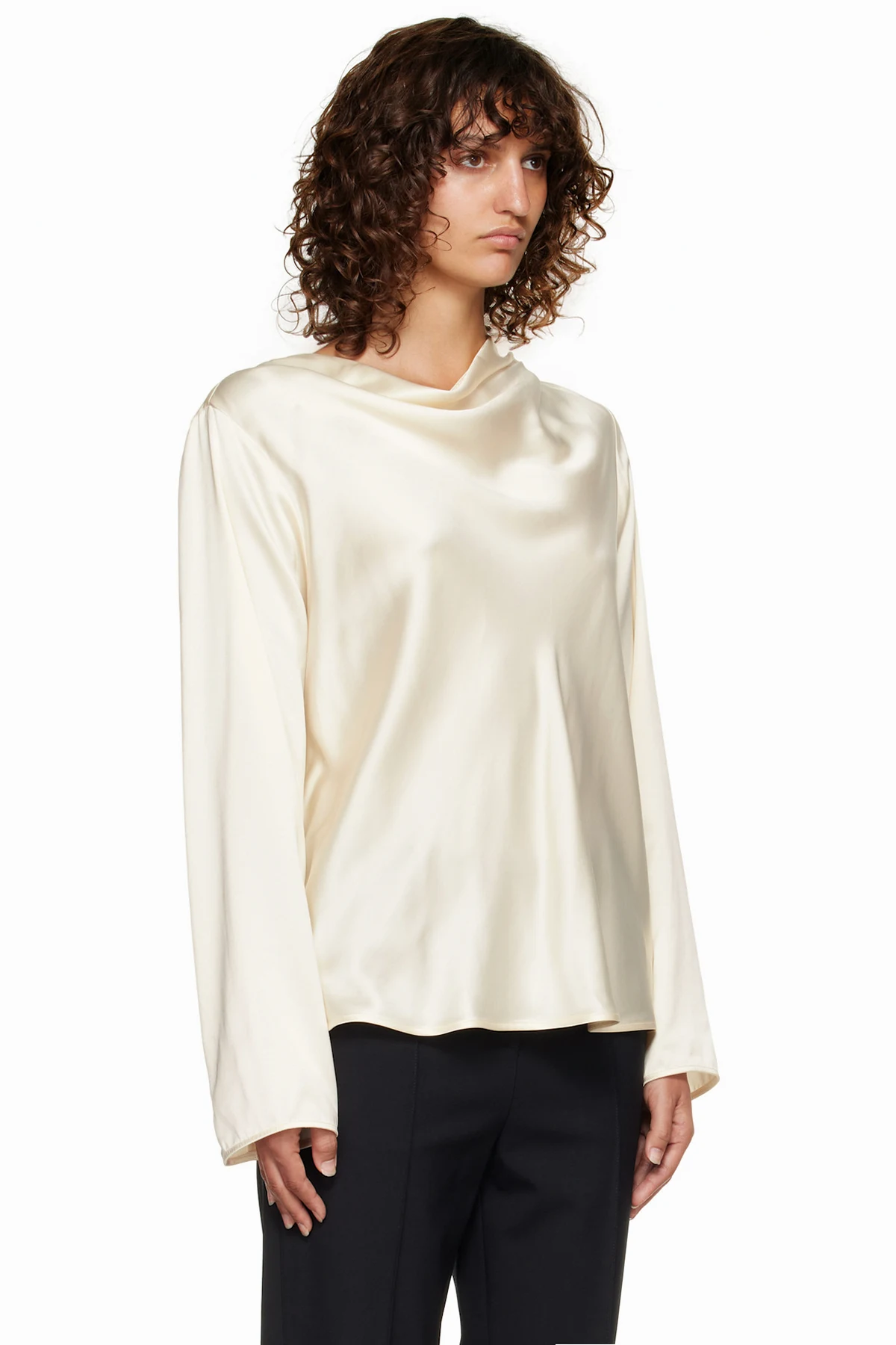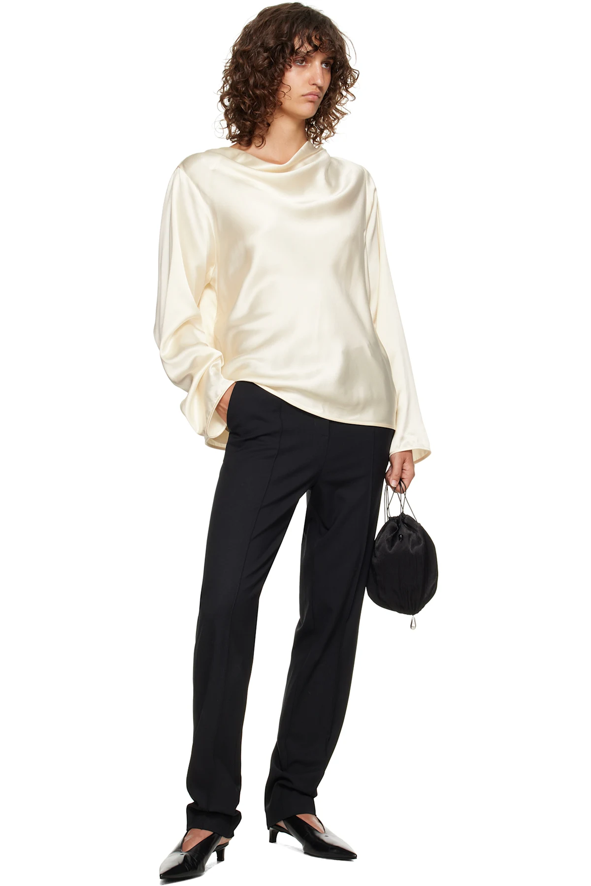Viscose- and virgin wool-blend satin blouse.