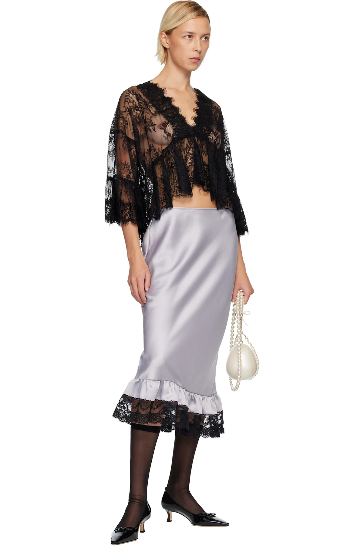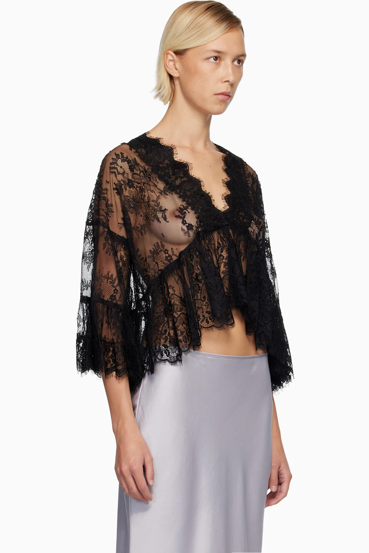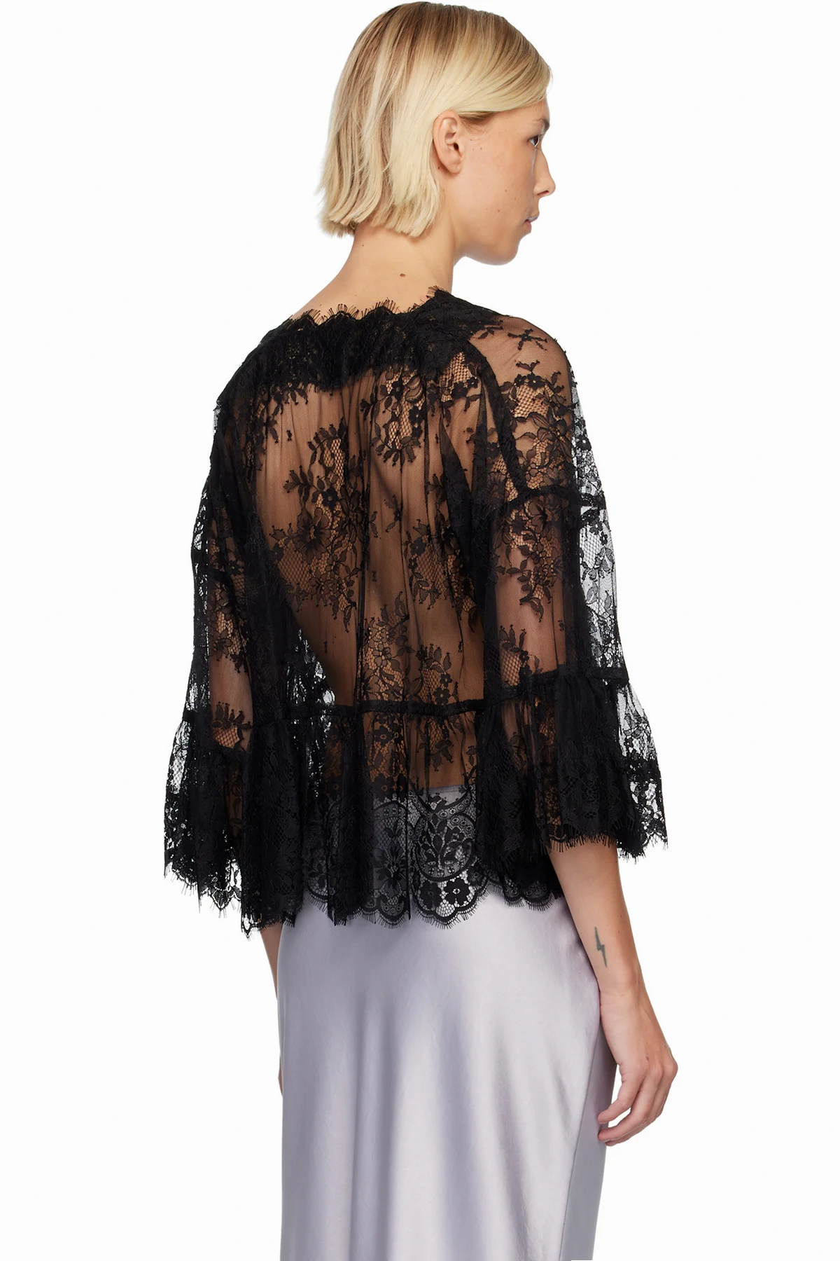 Sheer lace blouse.