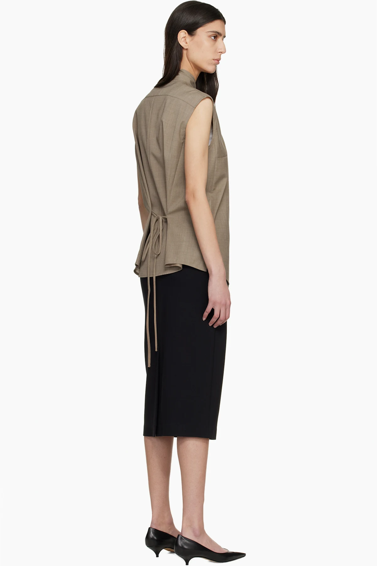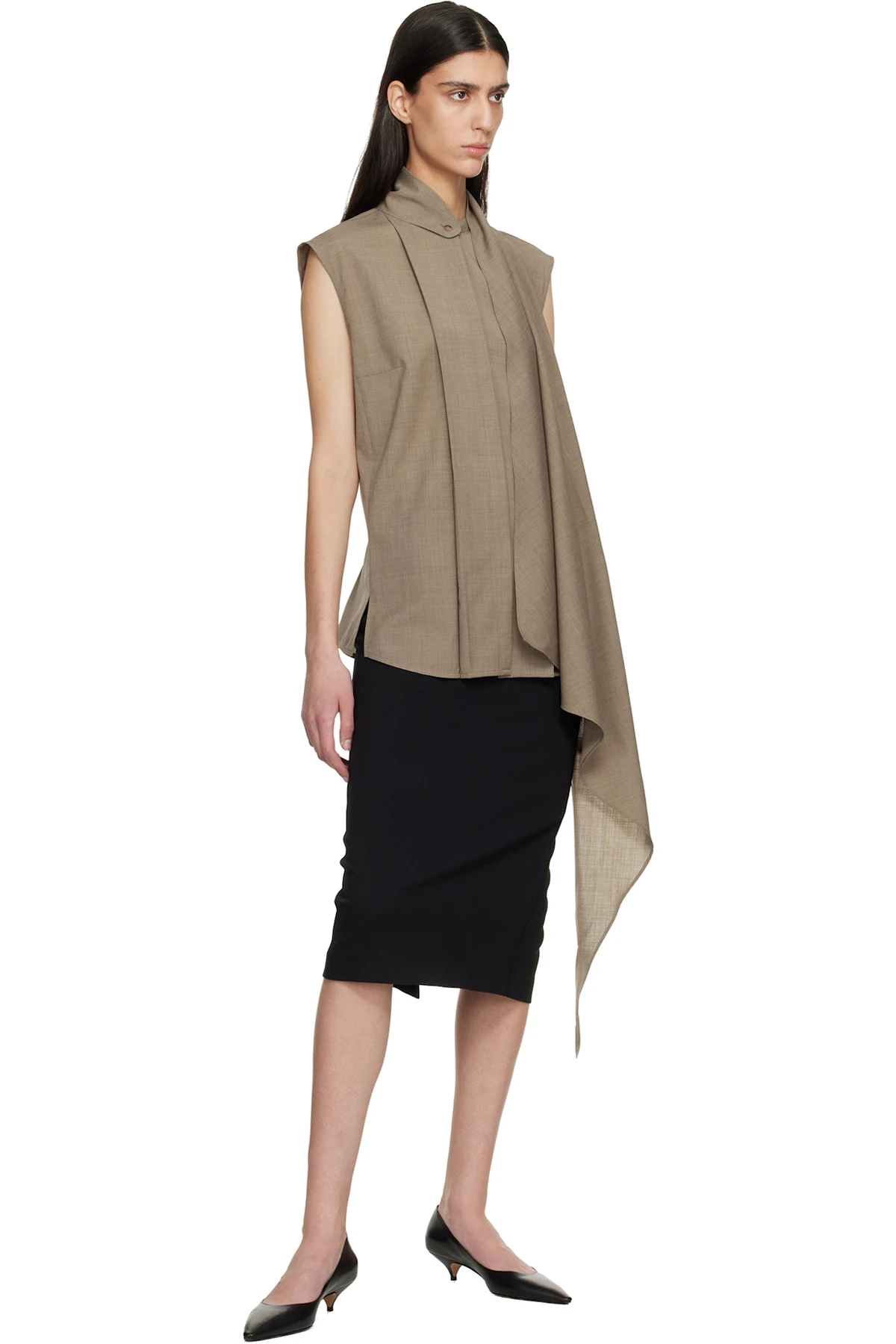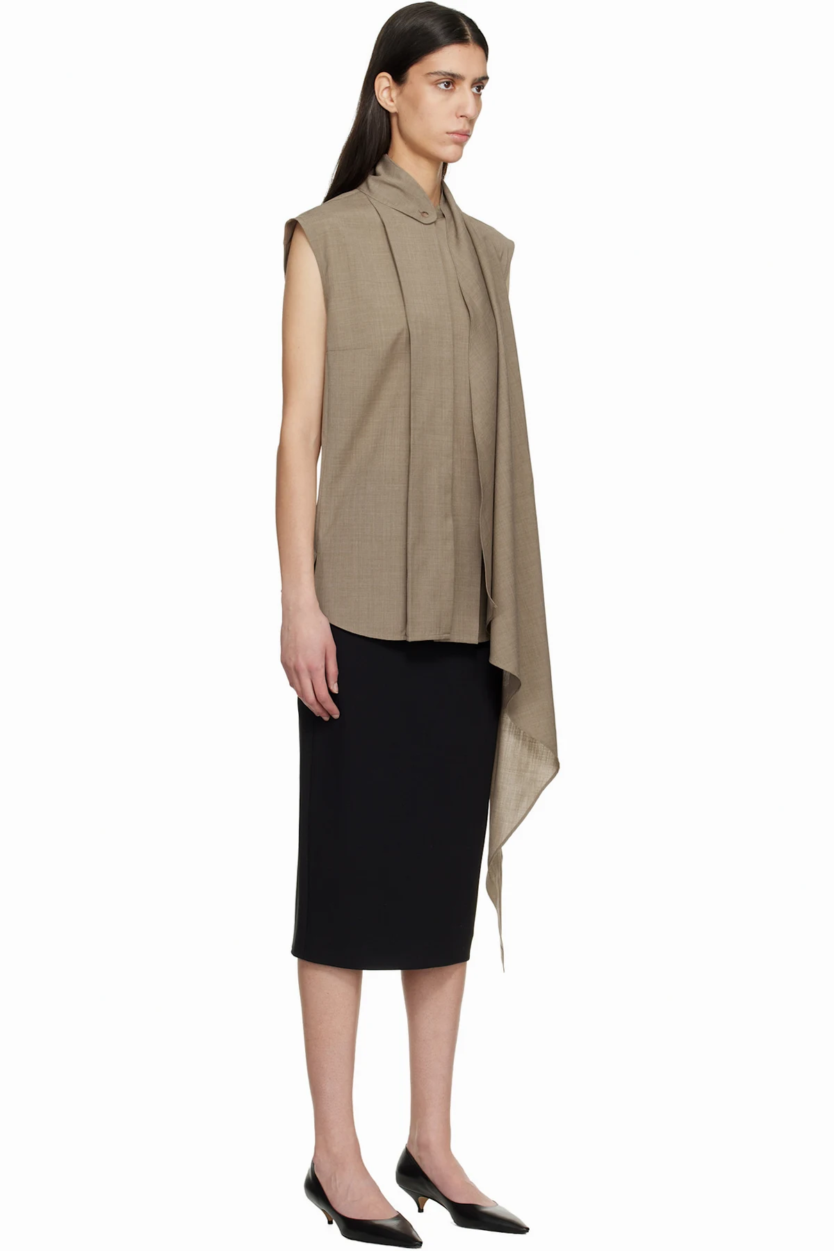 Brown Cape Sleeveless Blouse
