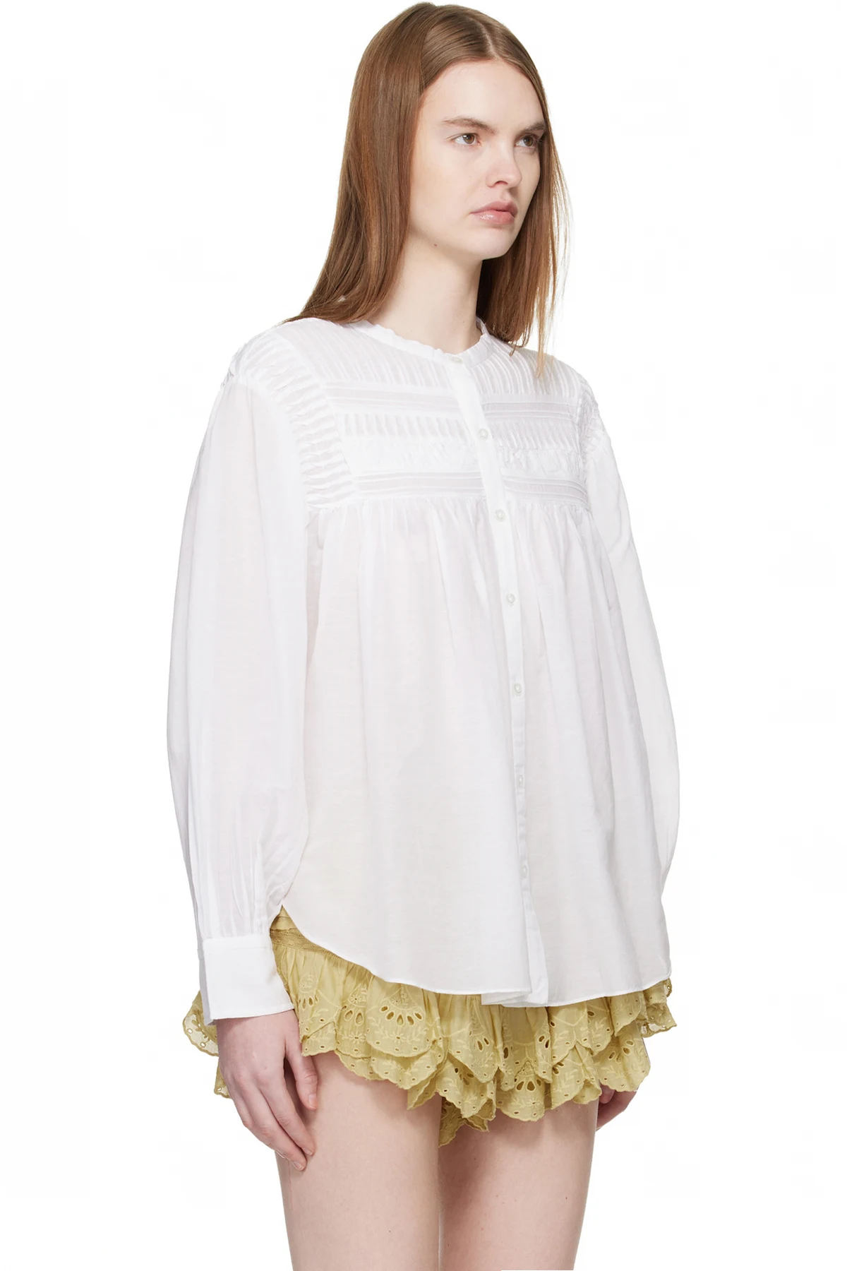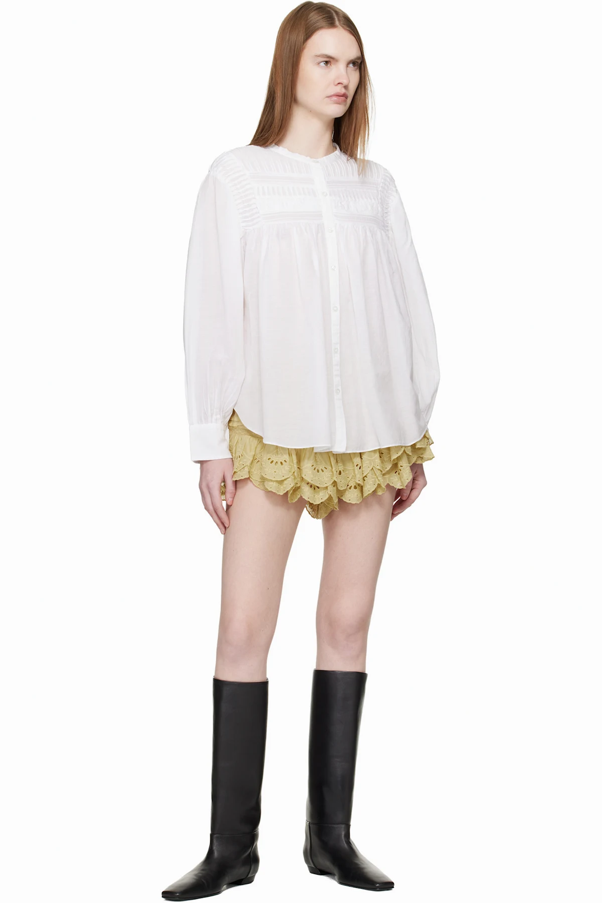 Off-White Puff-Sleeve Ruffle Crêpe De Chine Blouse