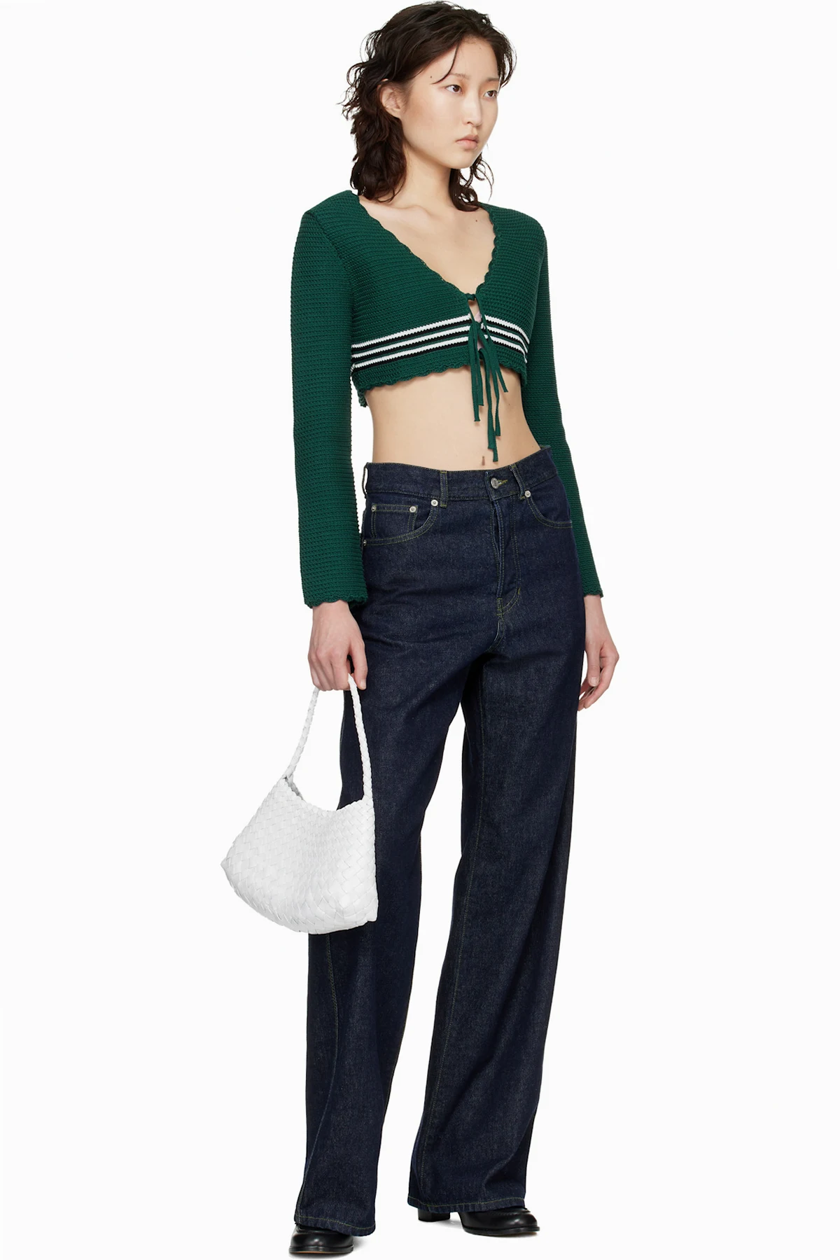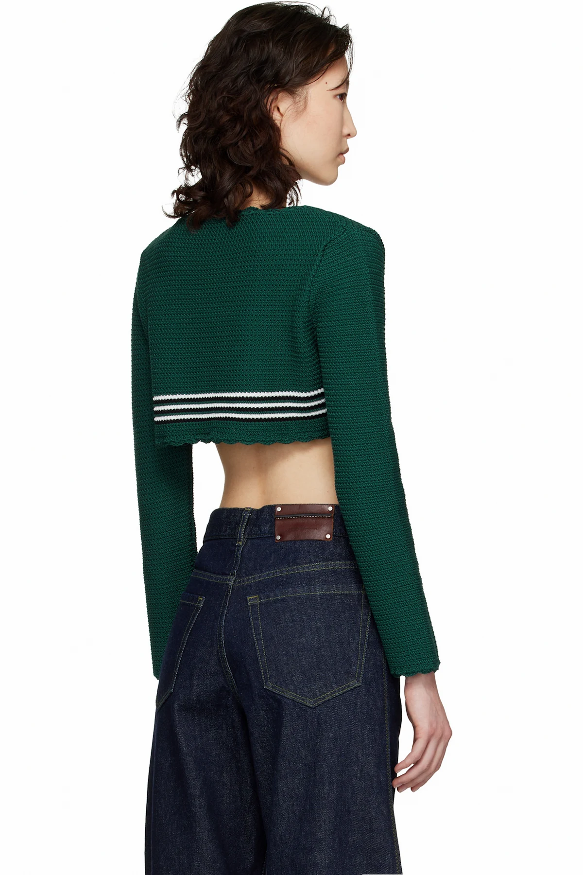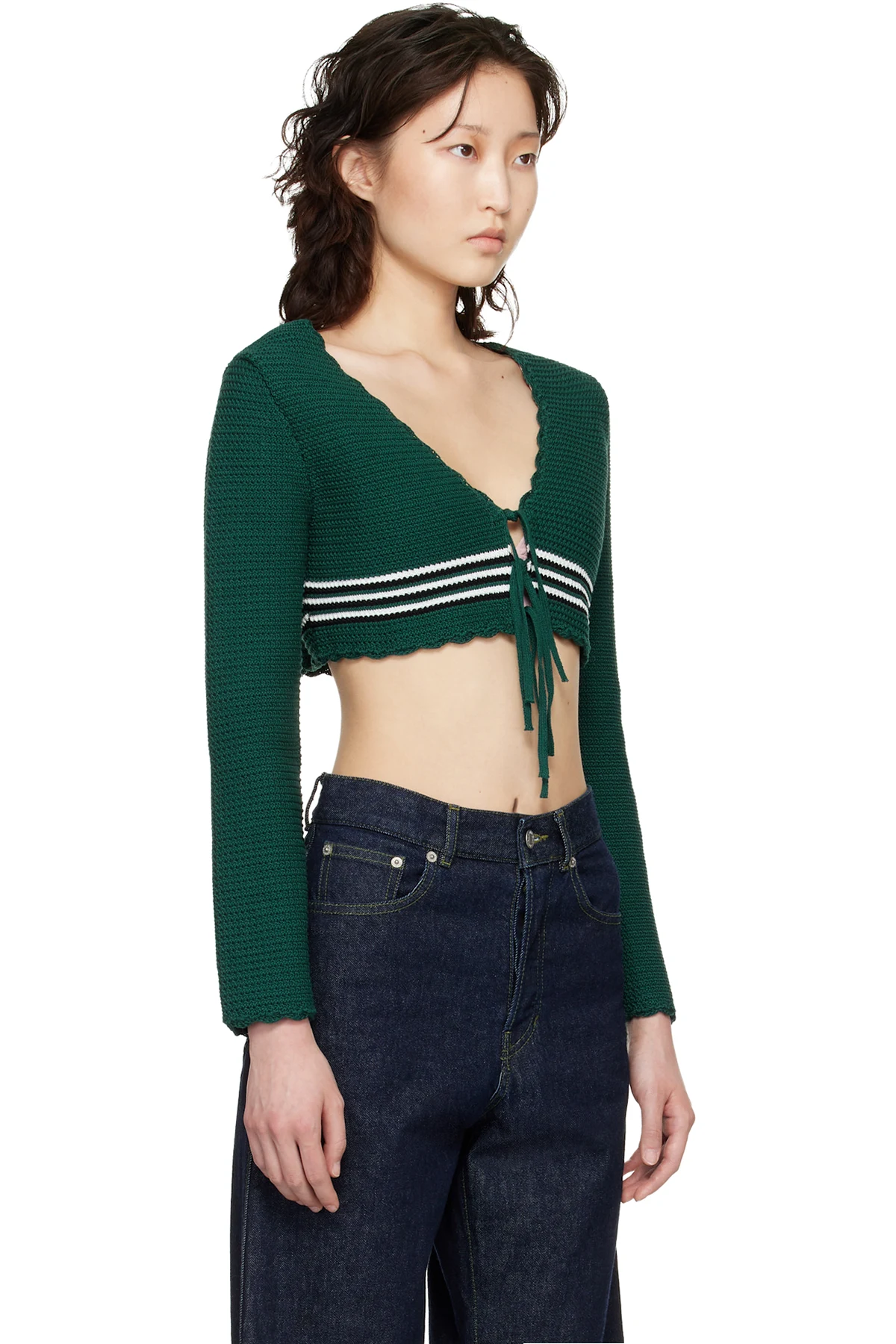 · Scalloped Y-neck, cropped hem, and cuffs