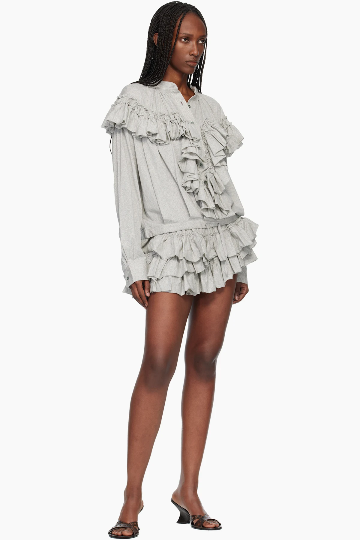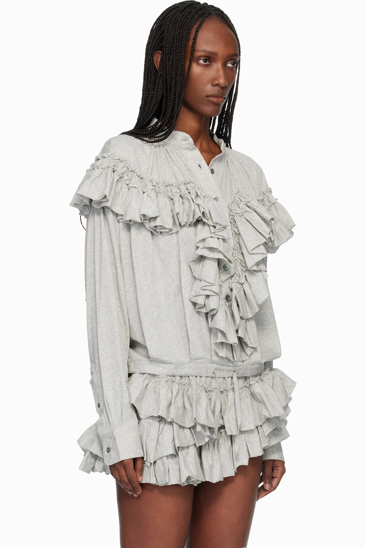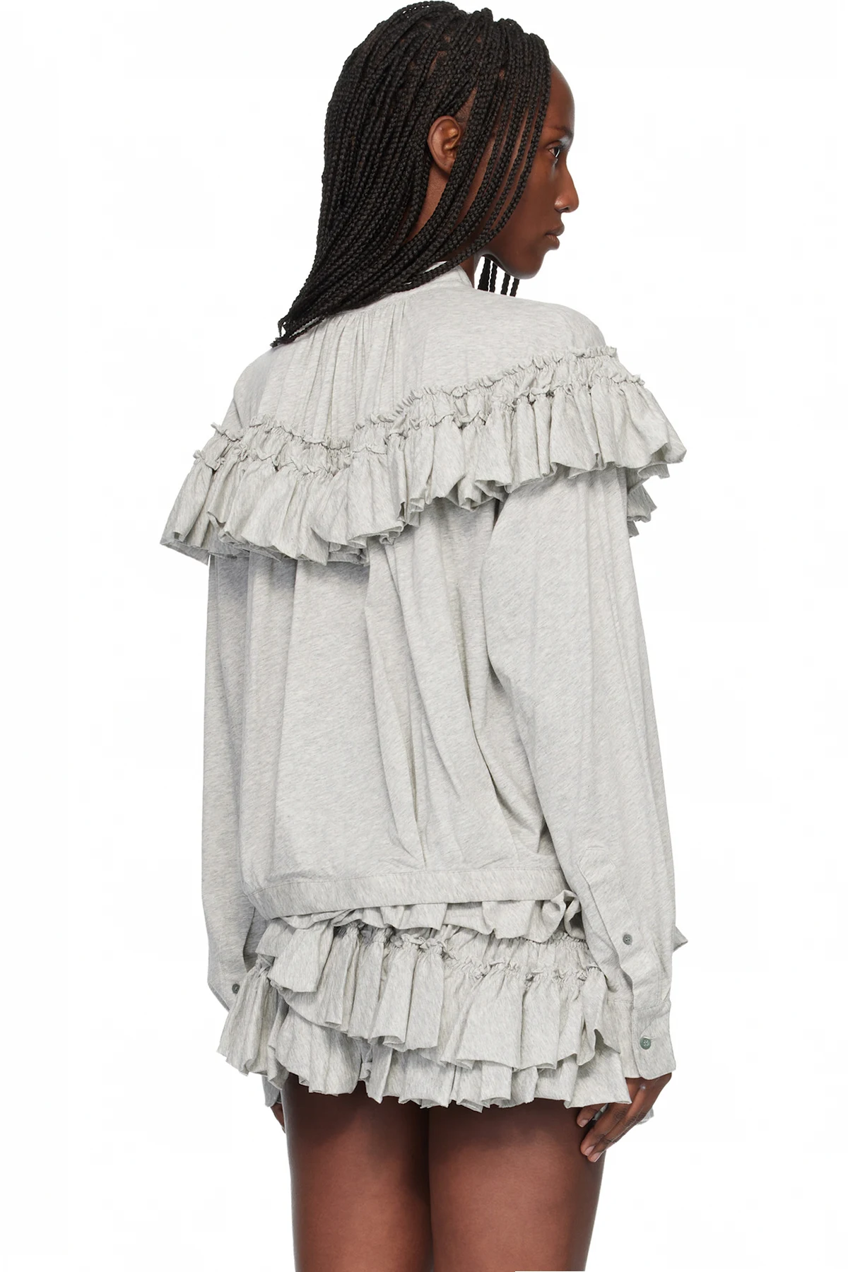 Off-White Puff-Sleeve Ruffle Crêpe De Chine Blouse