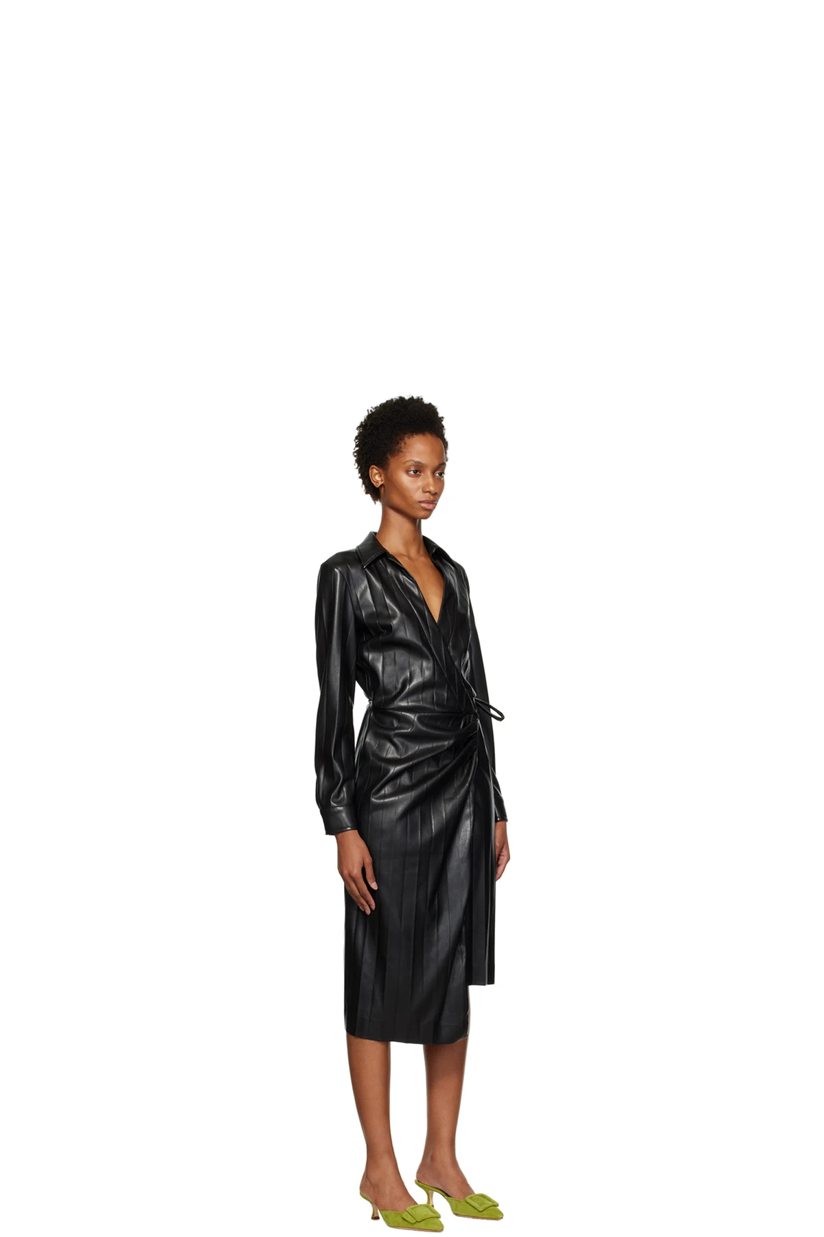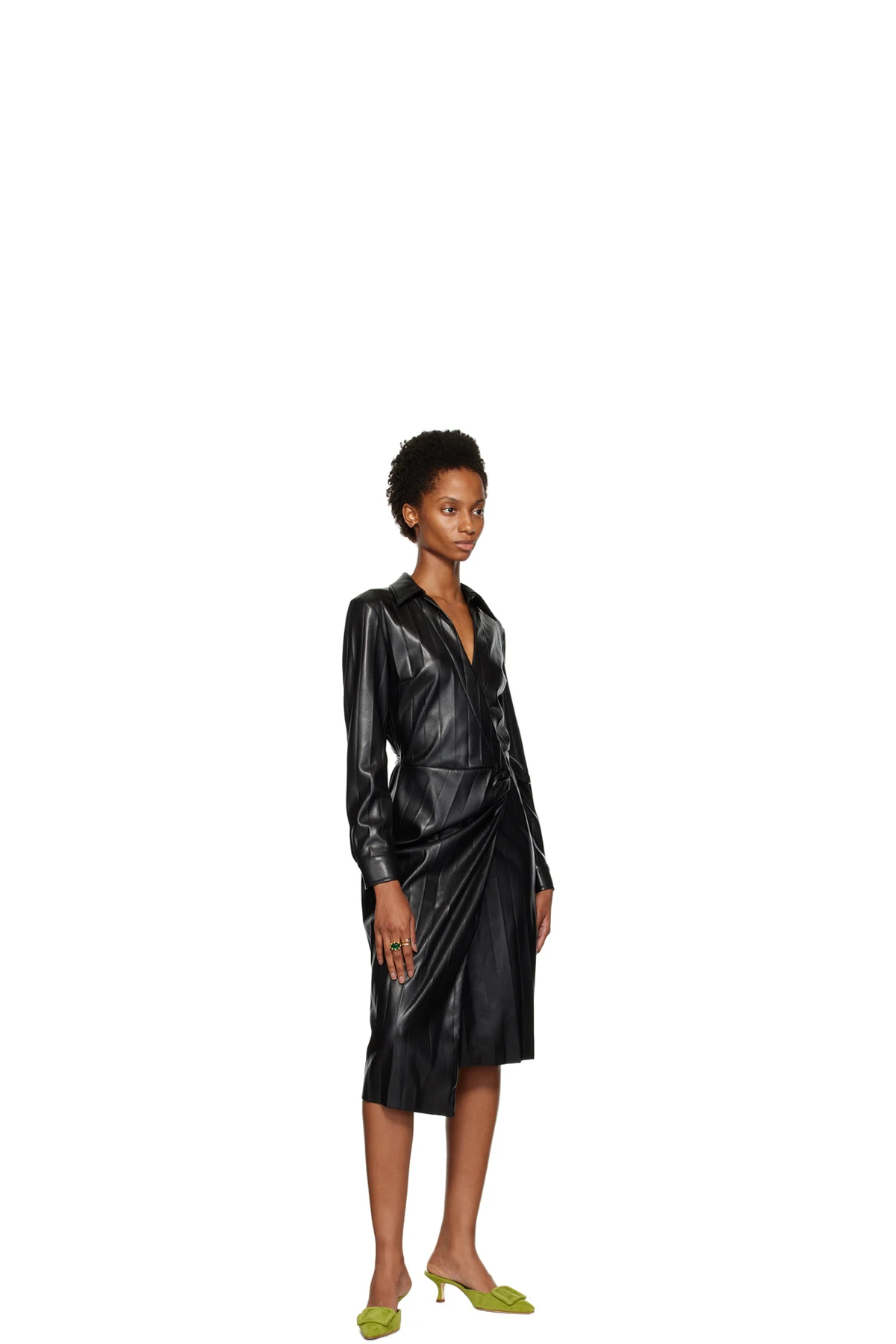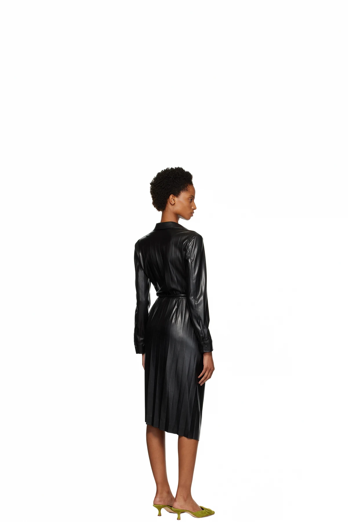 Coated grained faux-leather dress. Pleats throughout.