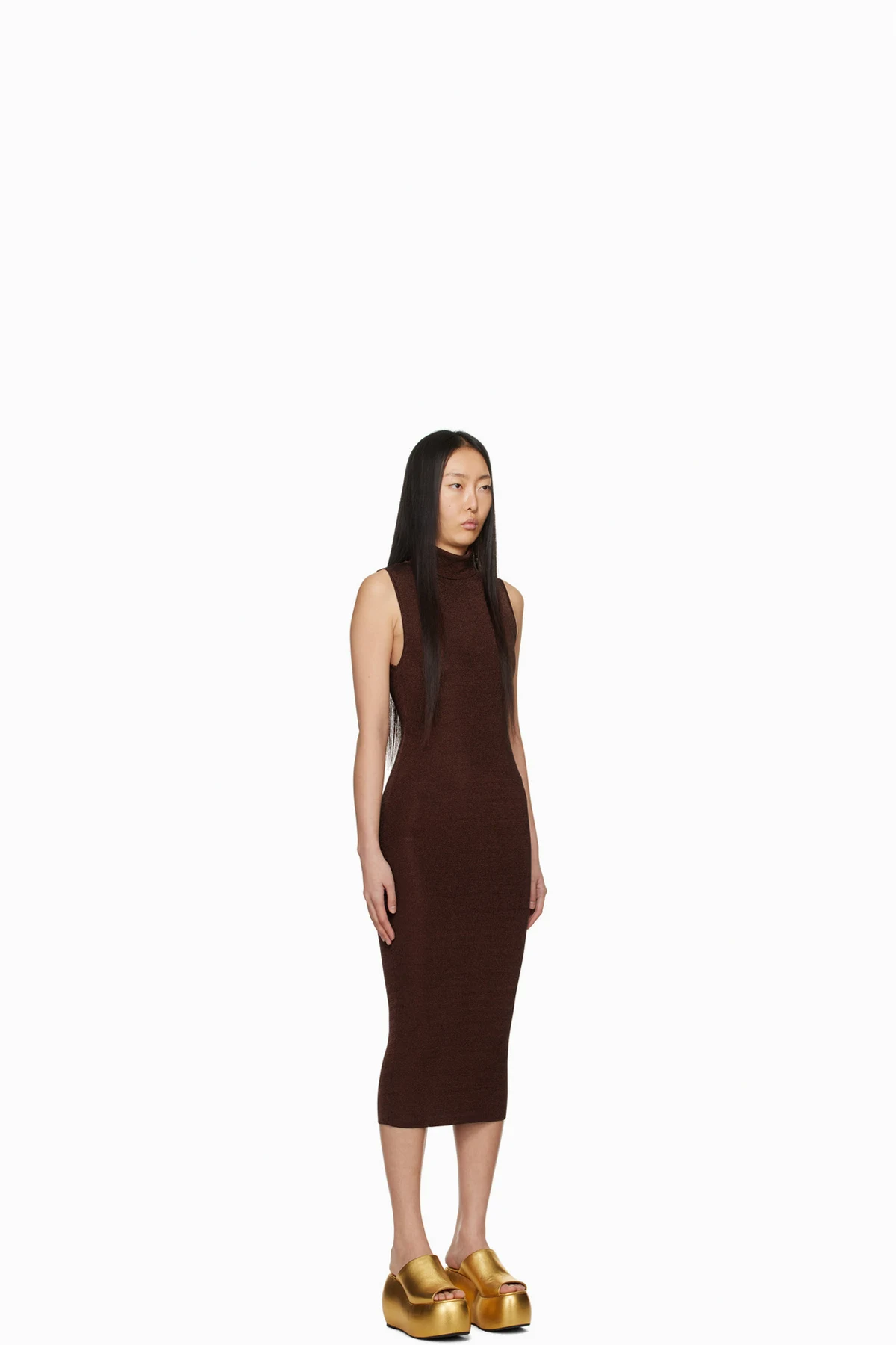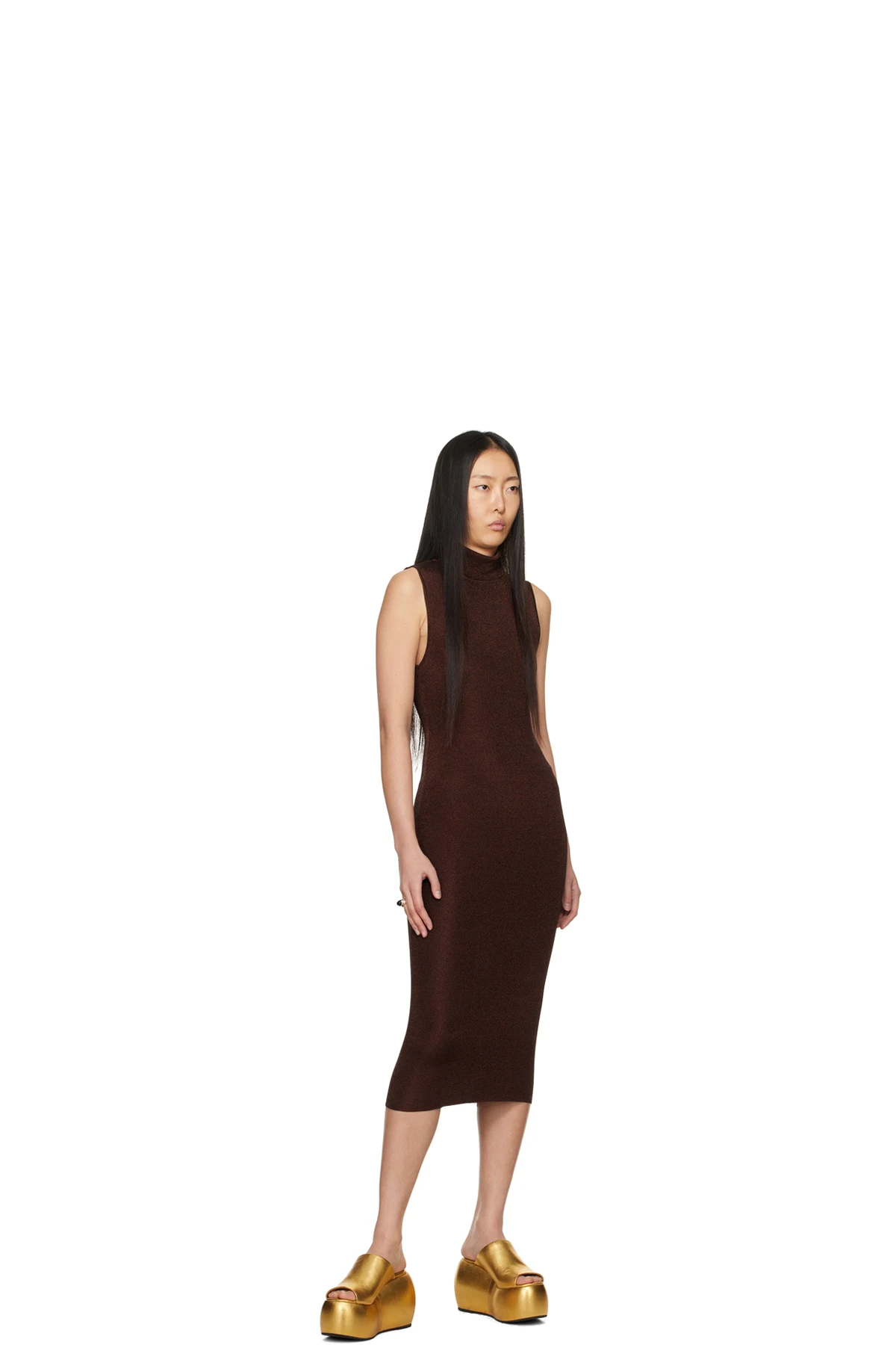 Brown Flora Midi Dress