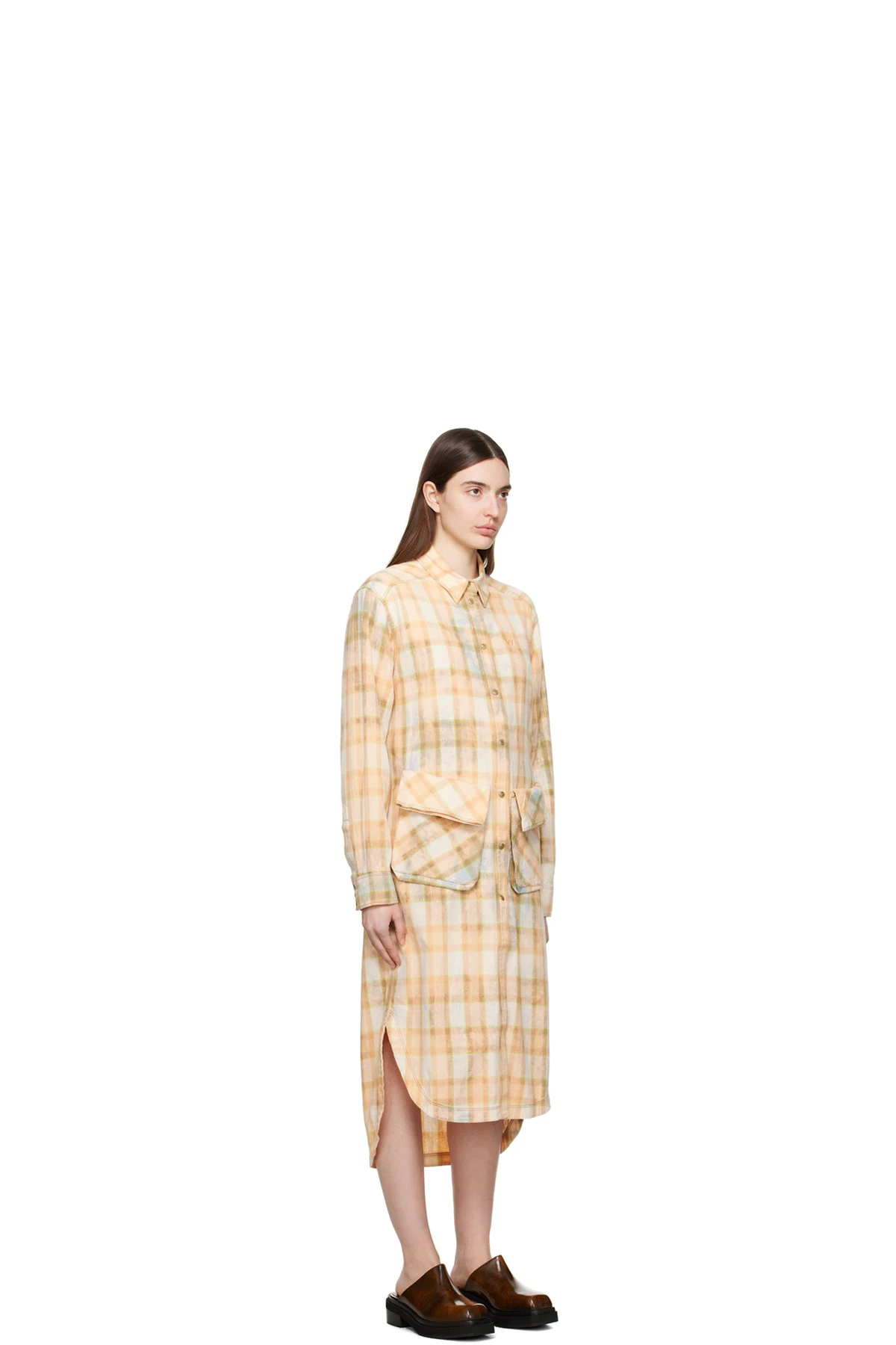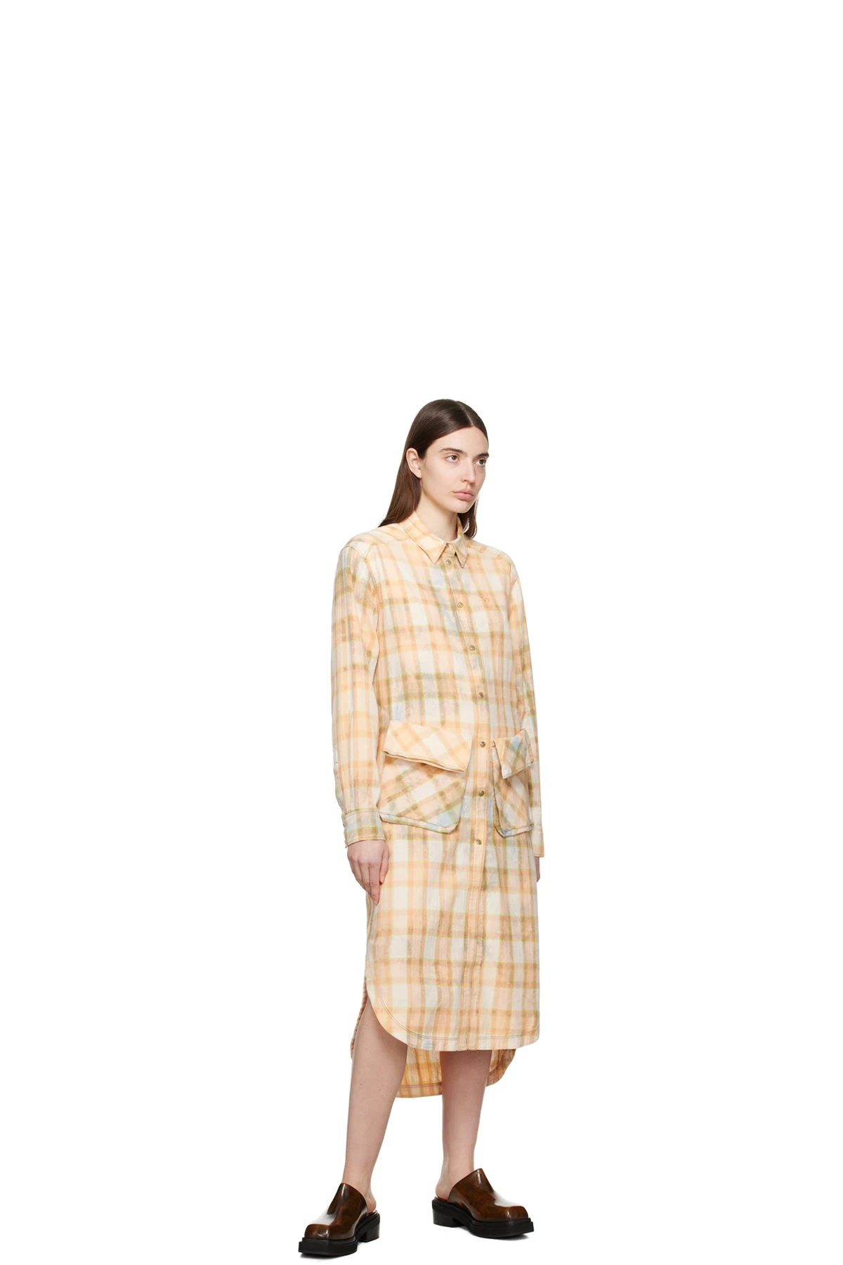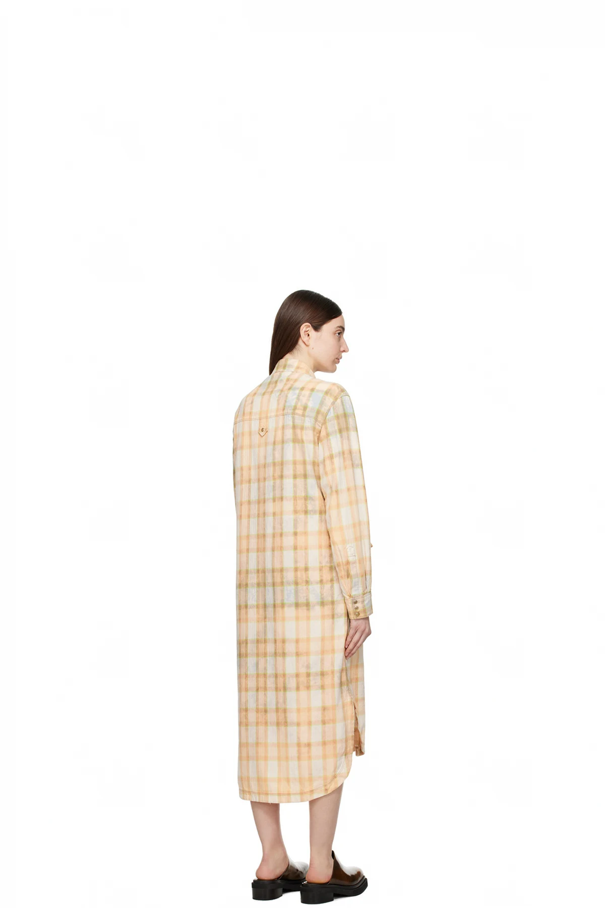 Cotton flannel dress. Check pattern, fading, and paint splatter effect throughout.