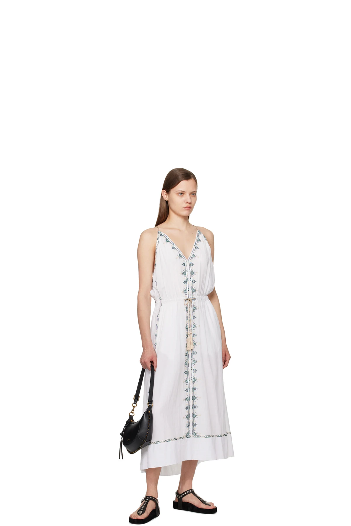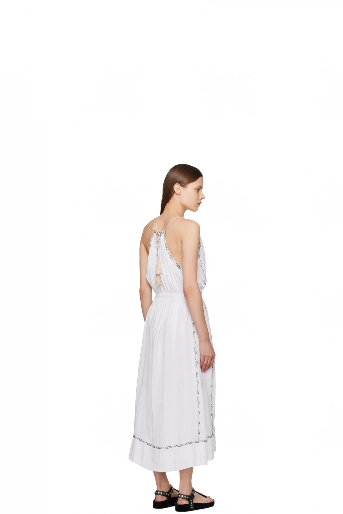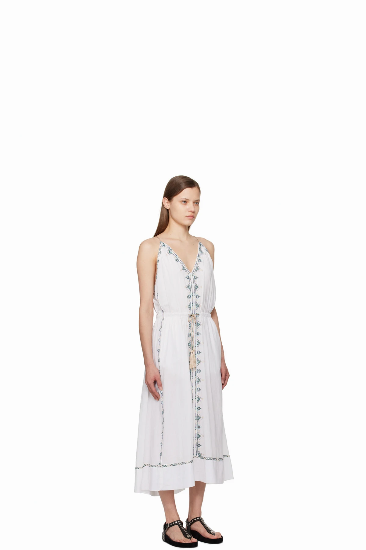 Cotton gauze dress. Floral embroidered detailing throughout.
