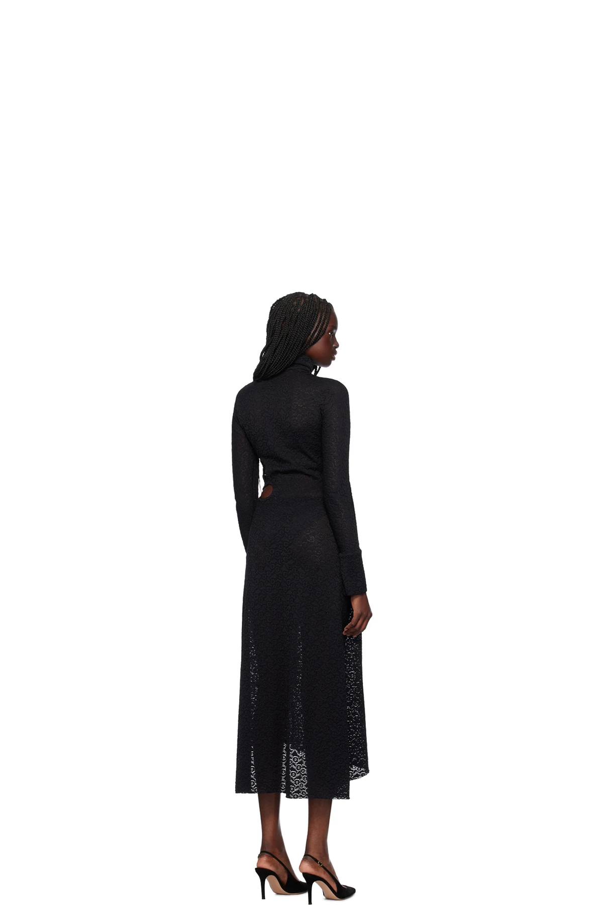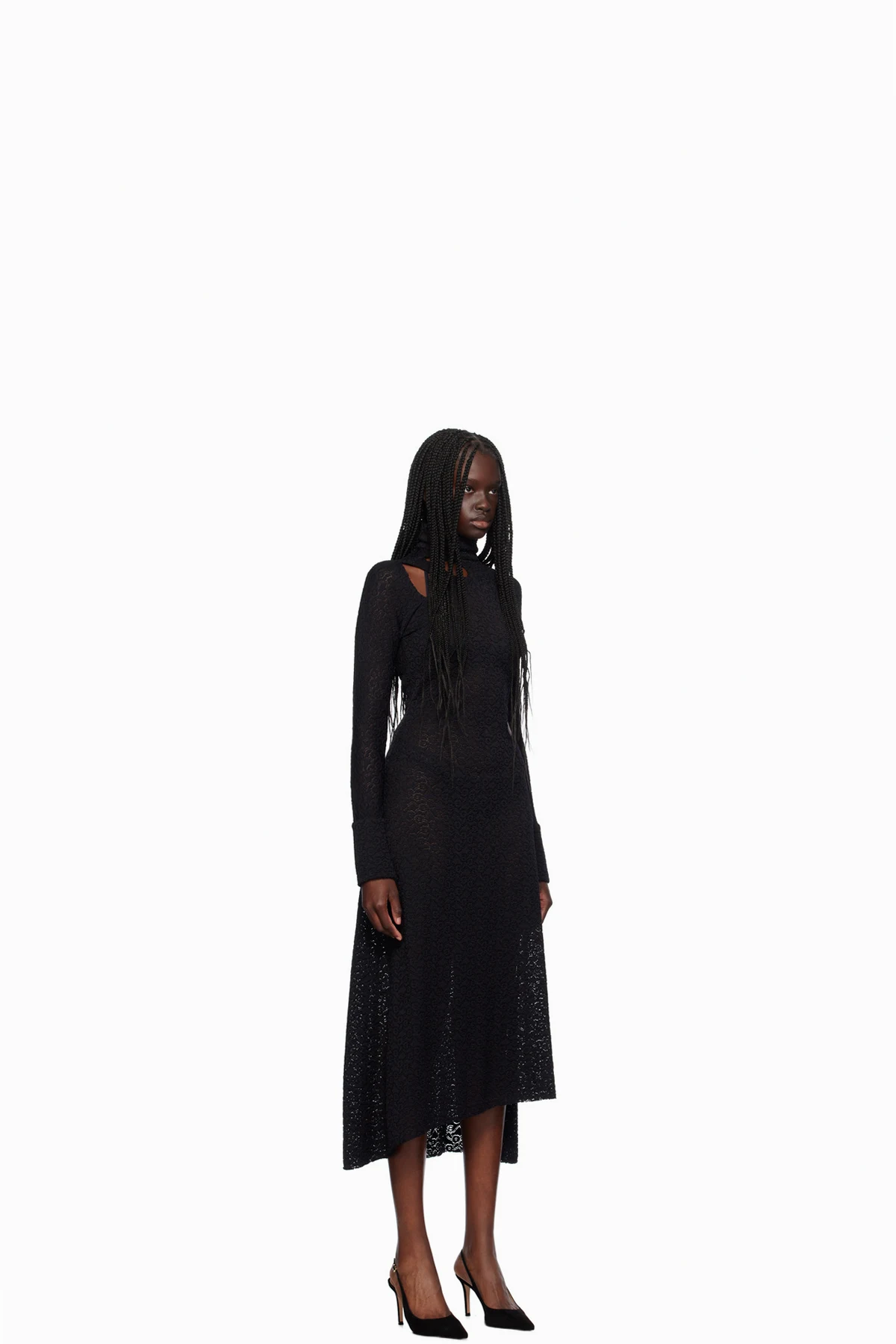 Stretch nylon lace dress. Floral pattern and cutouts throughout.