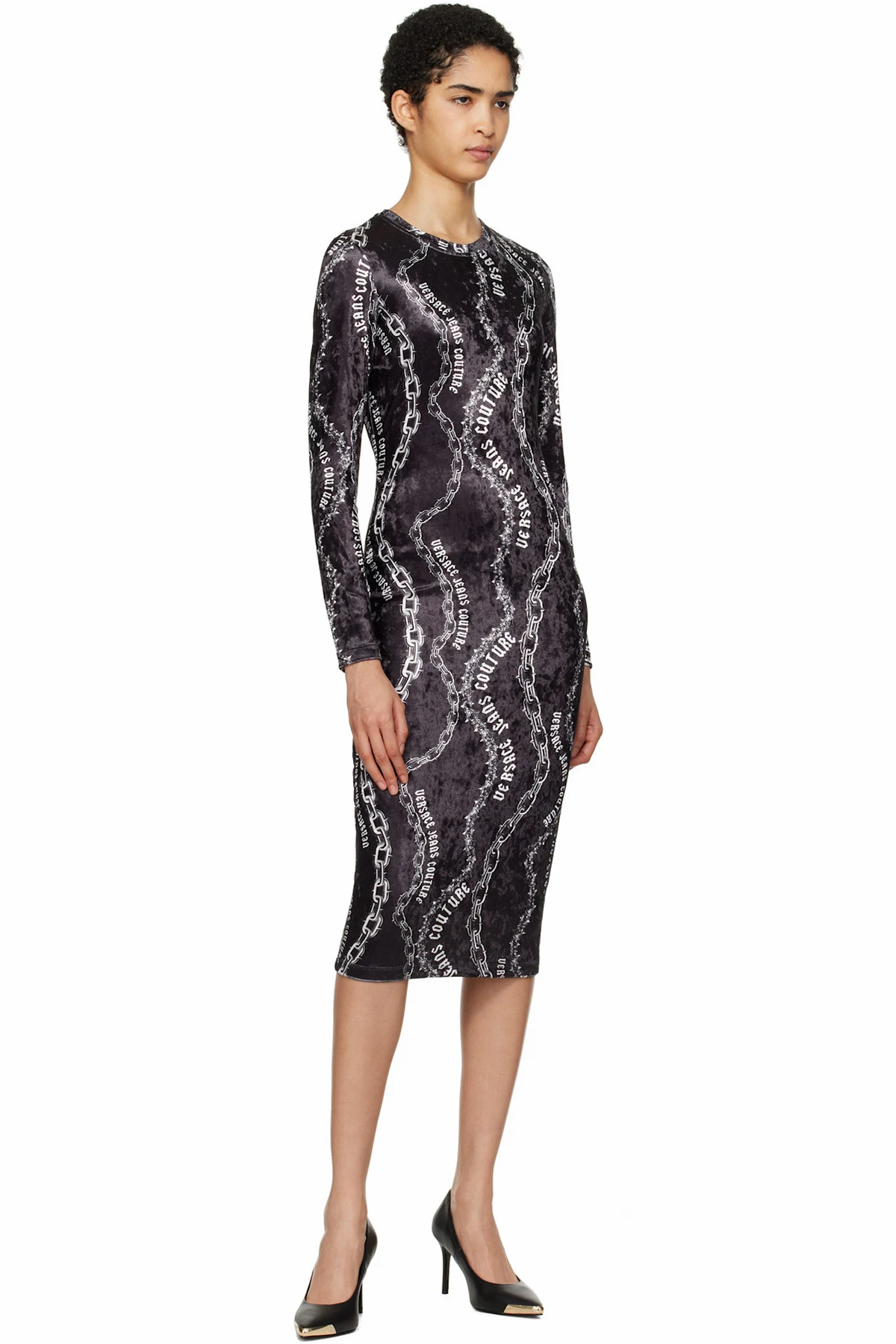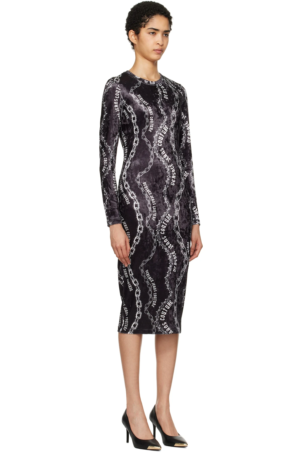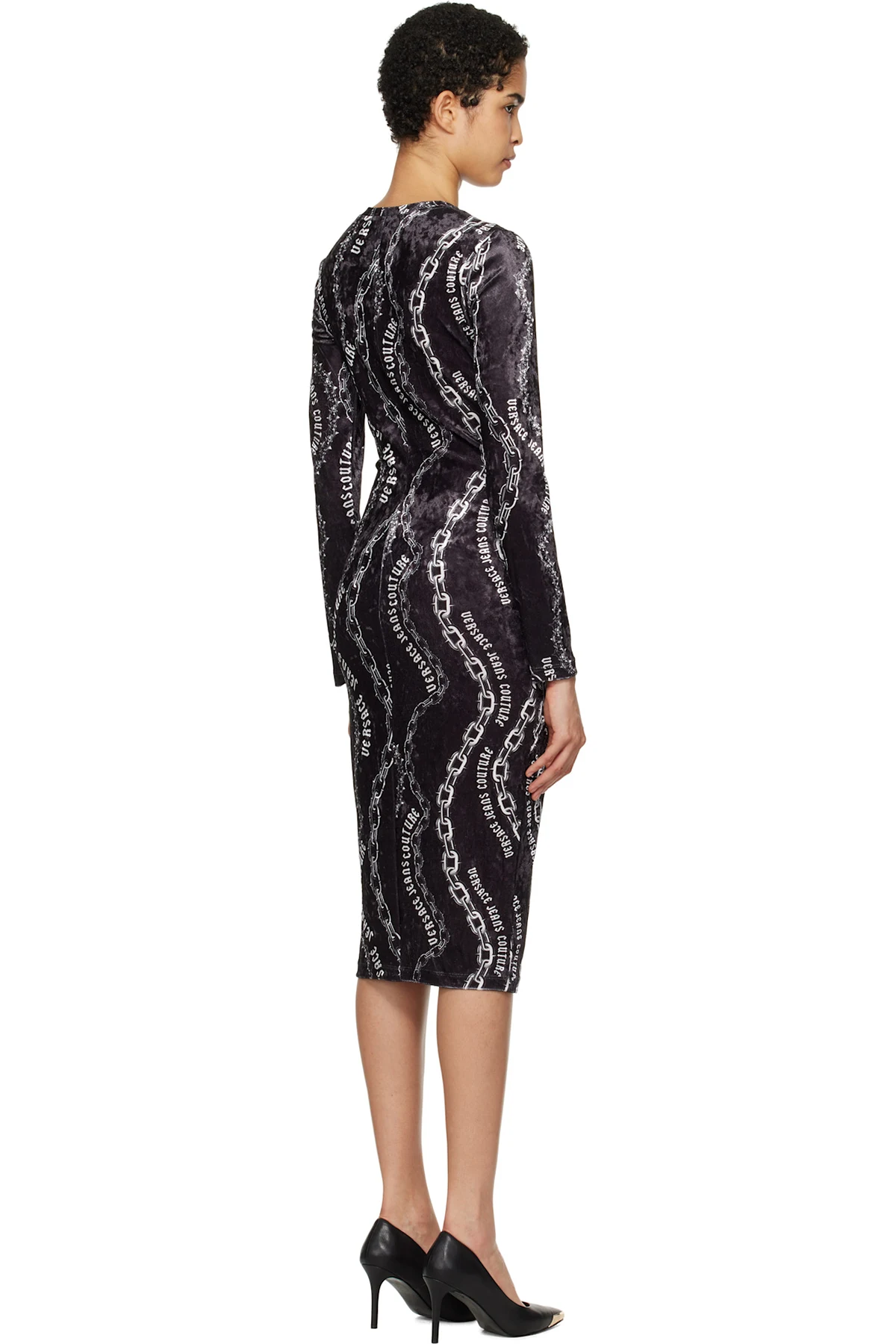 Black Chain Couture Velvet Midi Dress