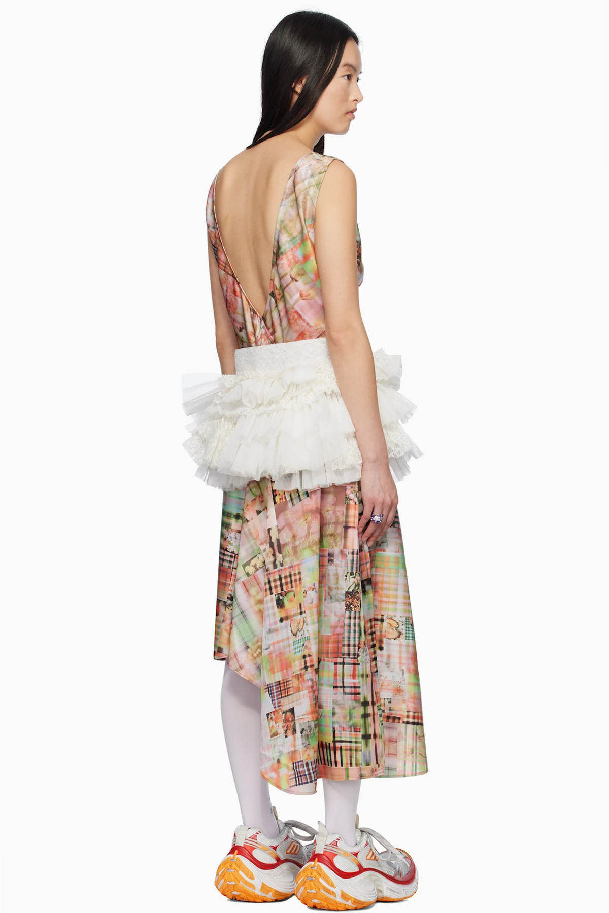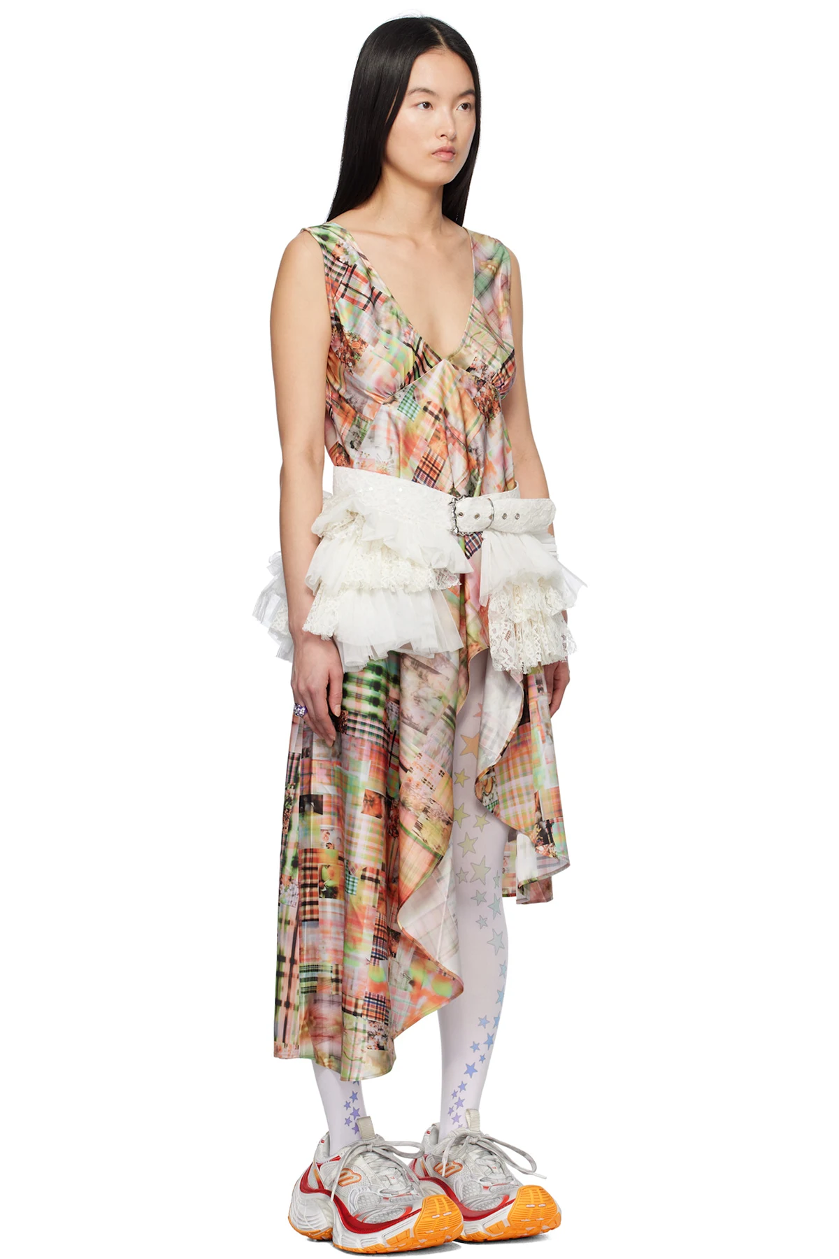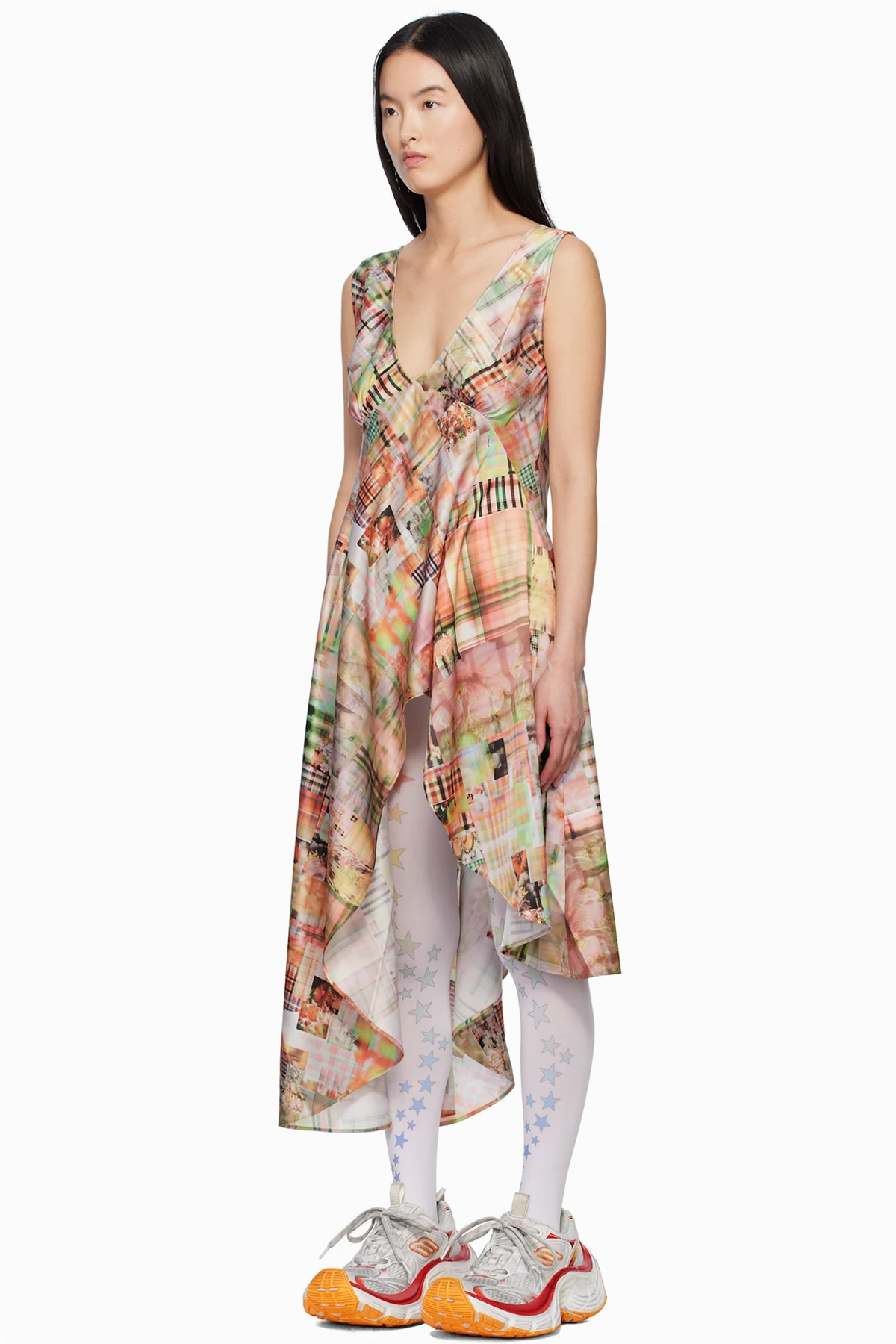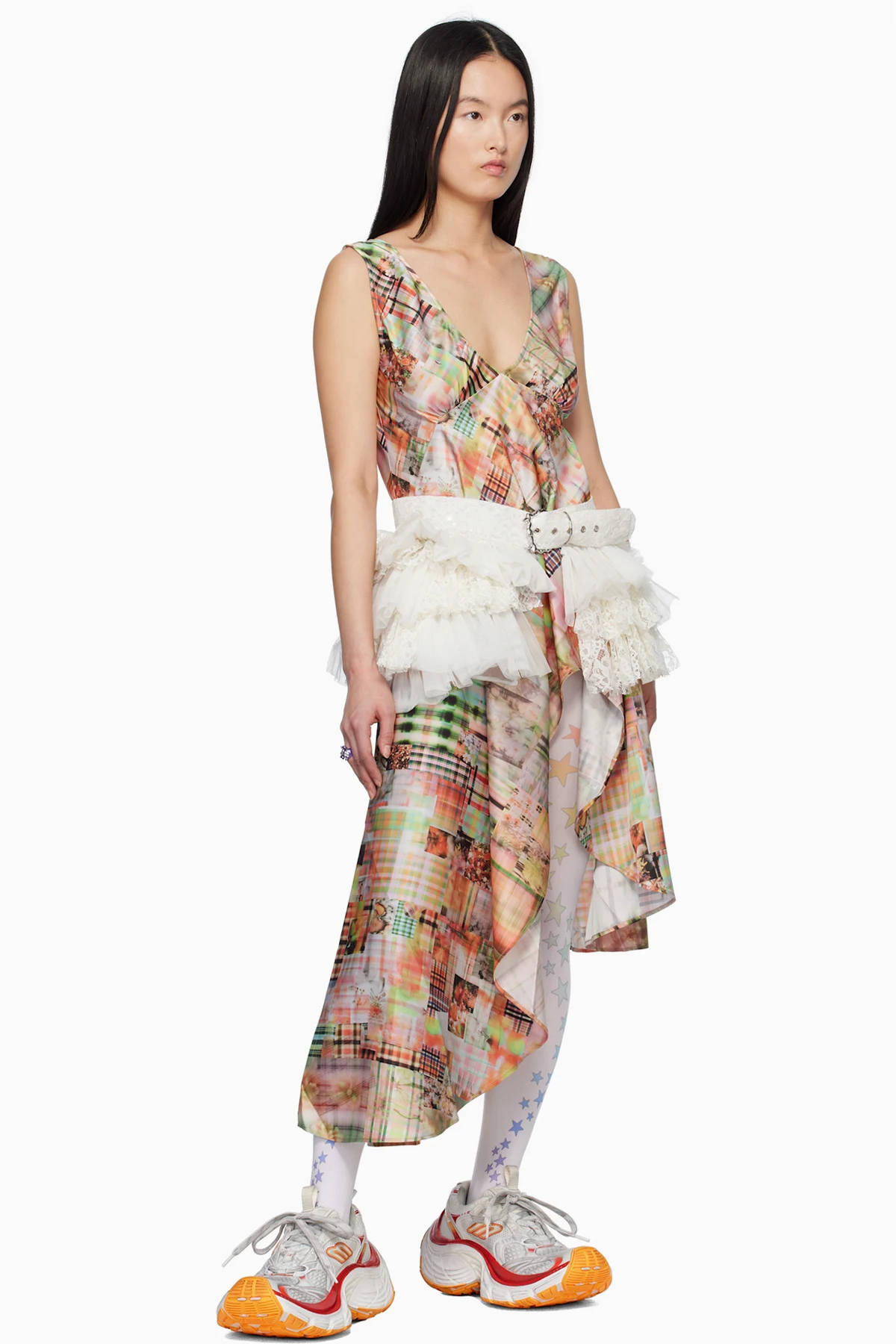 Acetate-blend satin midi dress. Check pattern printed throughout.