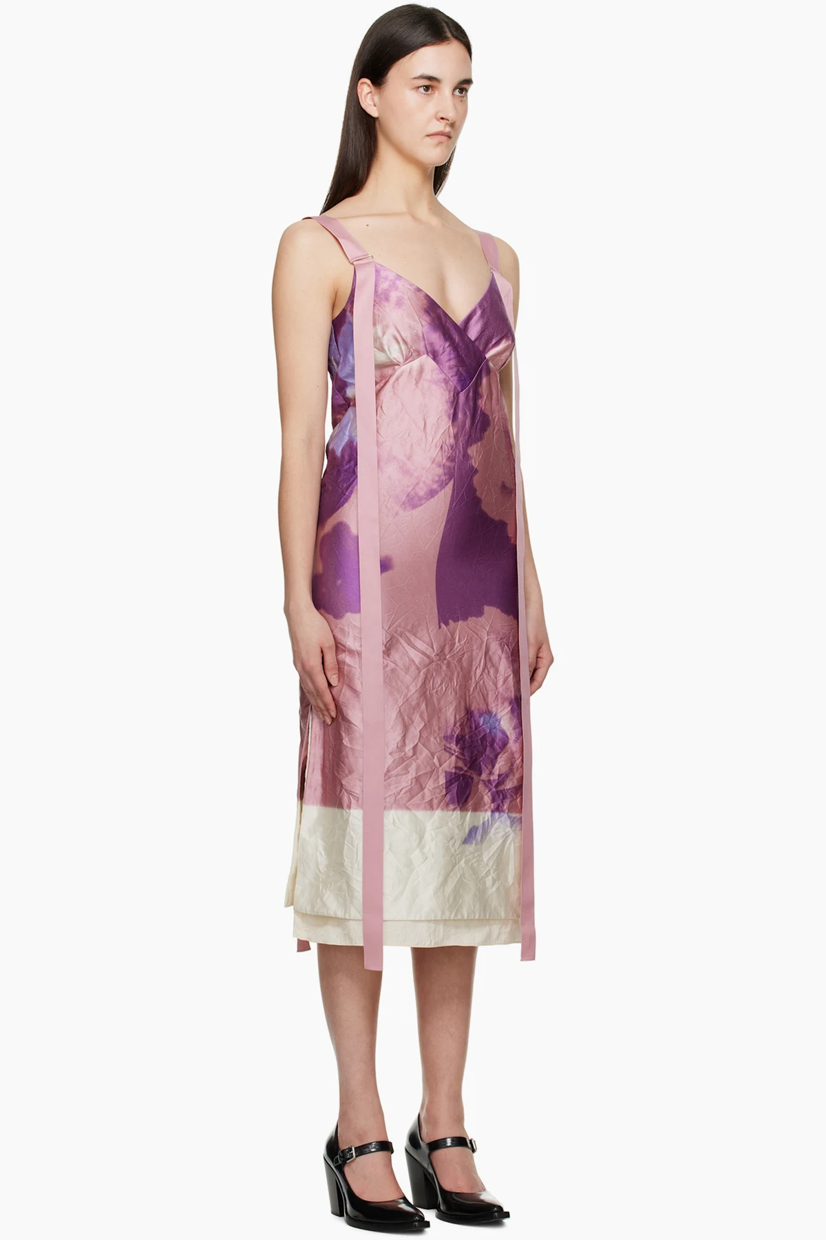 Pink & Purple V Neck Slip Cocktail Midi Dress