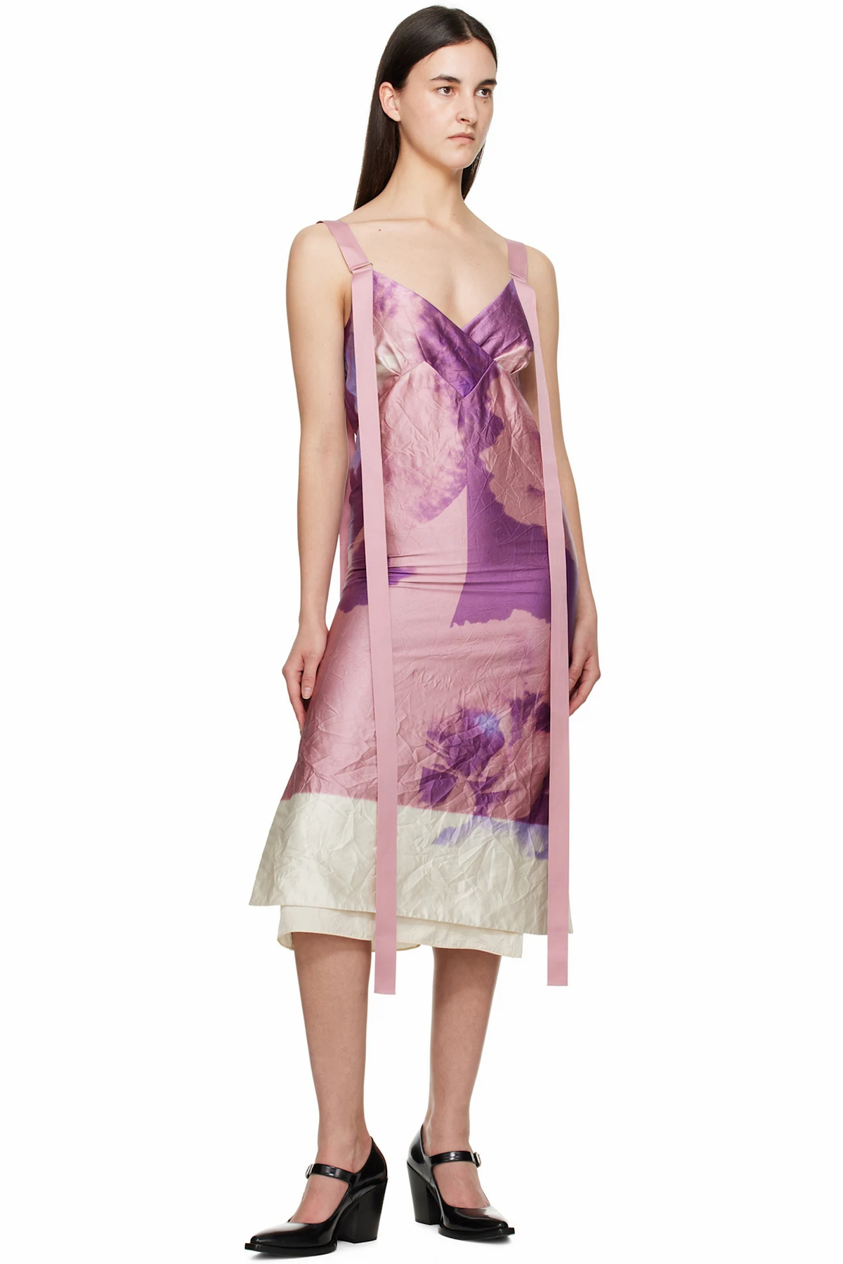 Crinkled polyester-blend twill midi dress. Floral pattern printed throughout.