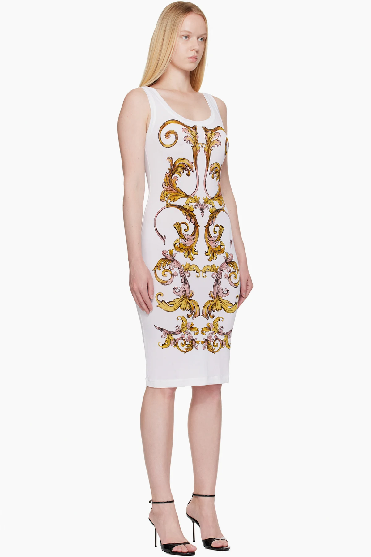 White Outline Barocco Slip Midi dress