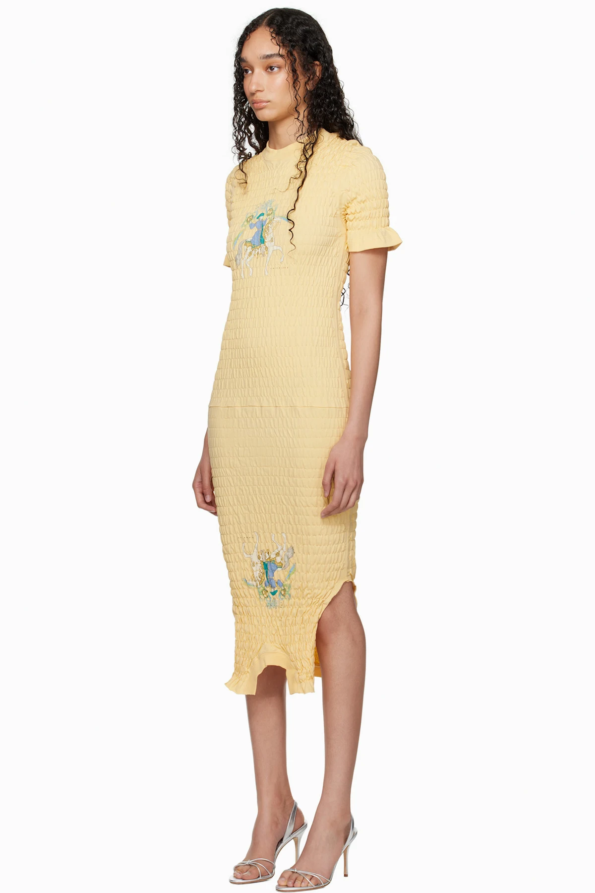SSENSE Exclusive Yellow Shirred T-shirt Midi Dress