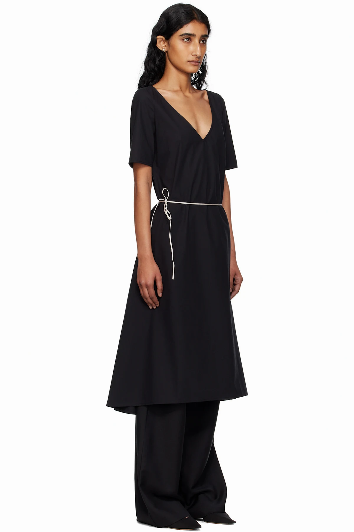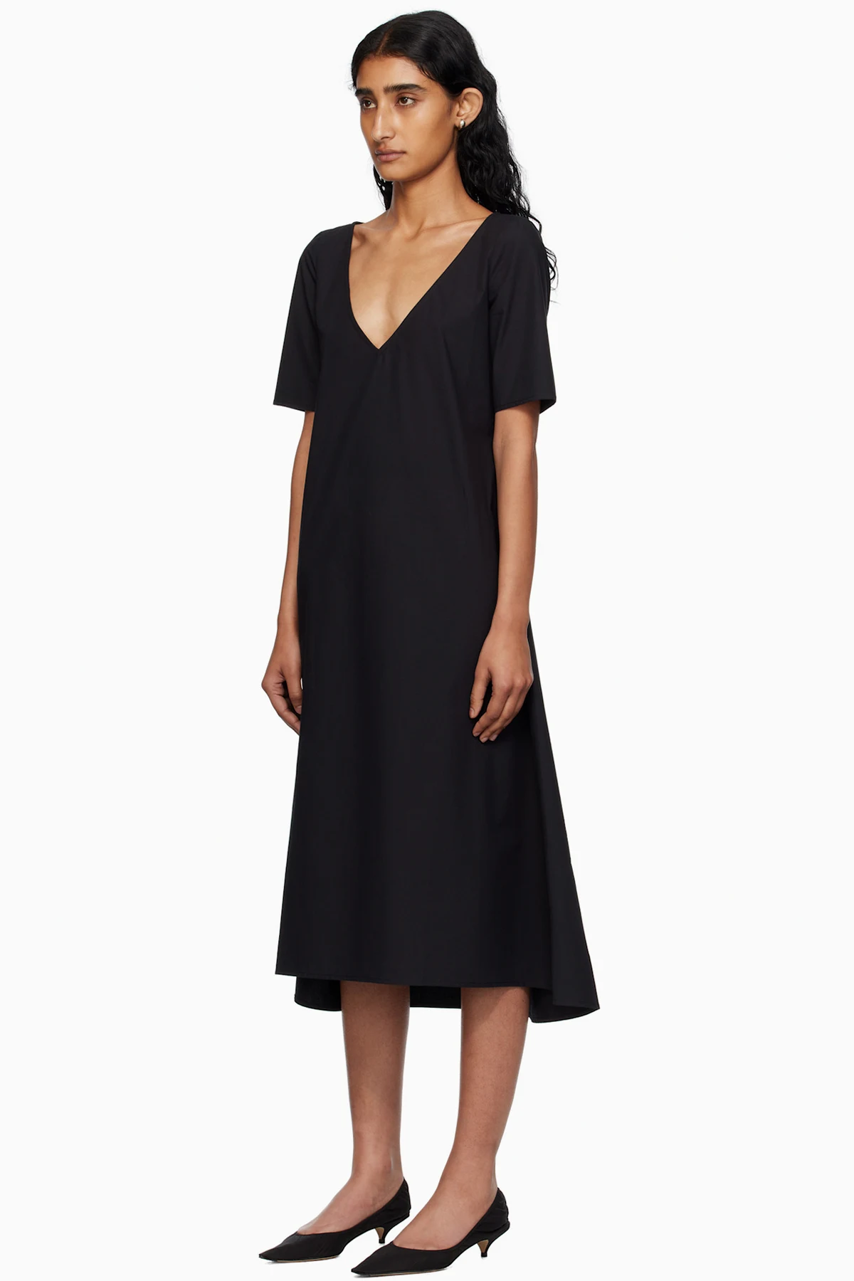 Black Cotton Poplin Midi Dress