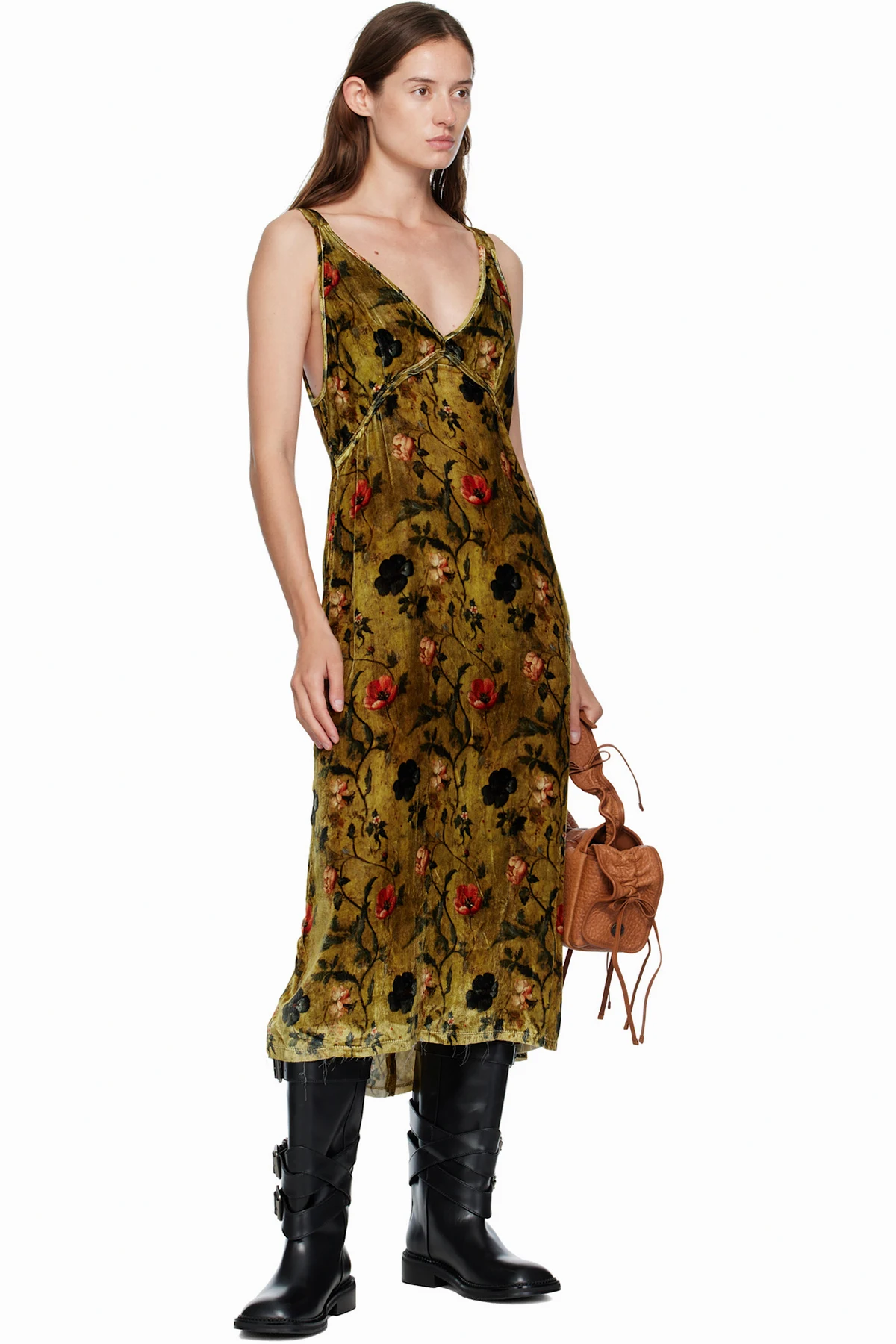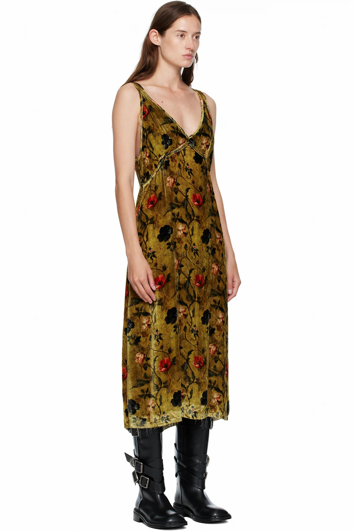 Viscose- and silk-blend velvet midi dress.
