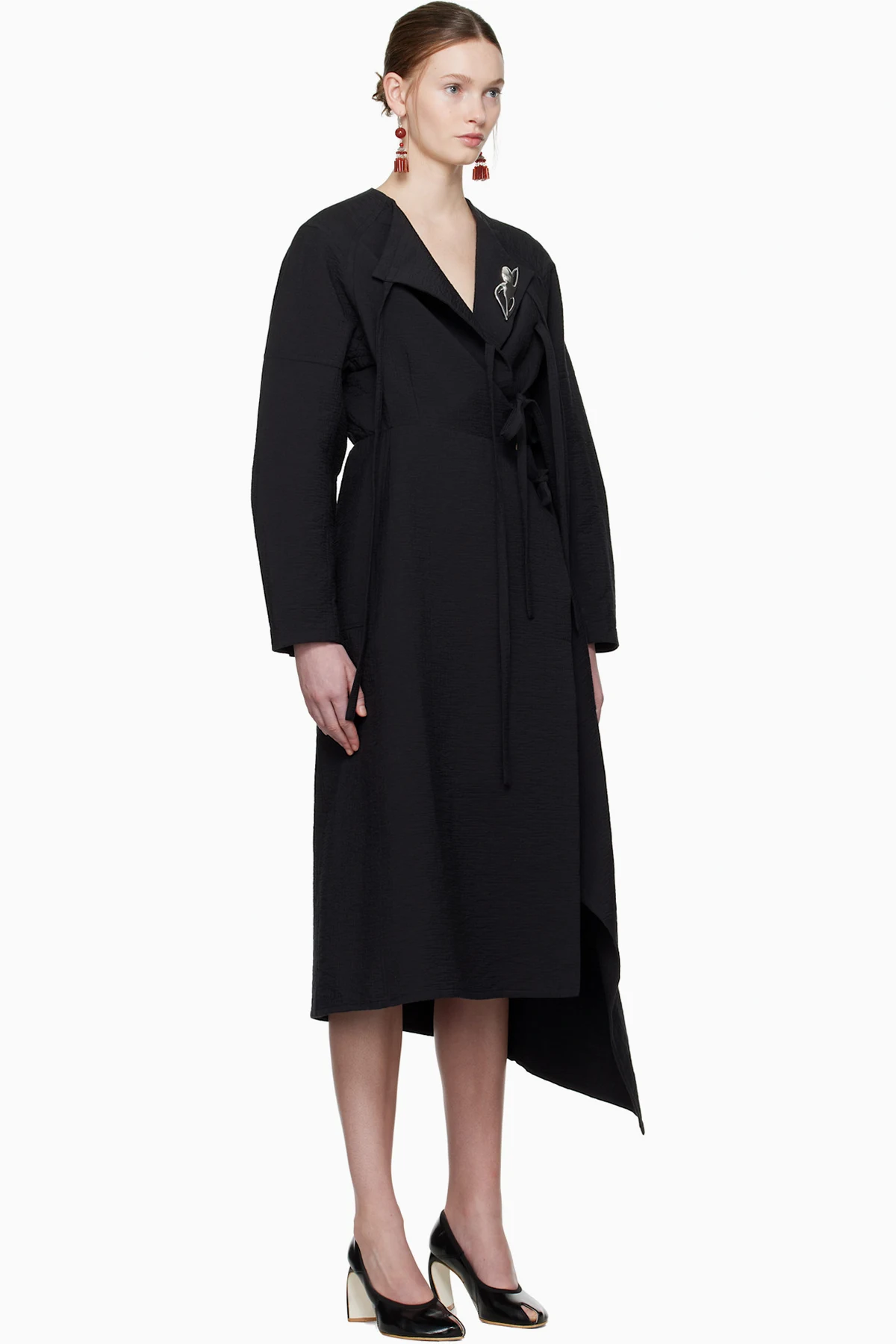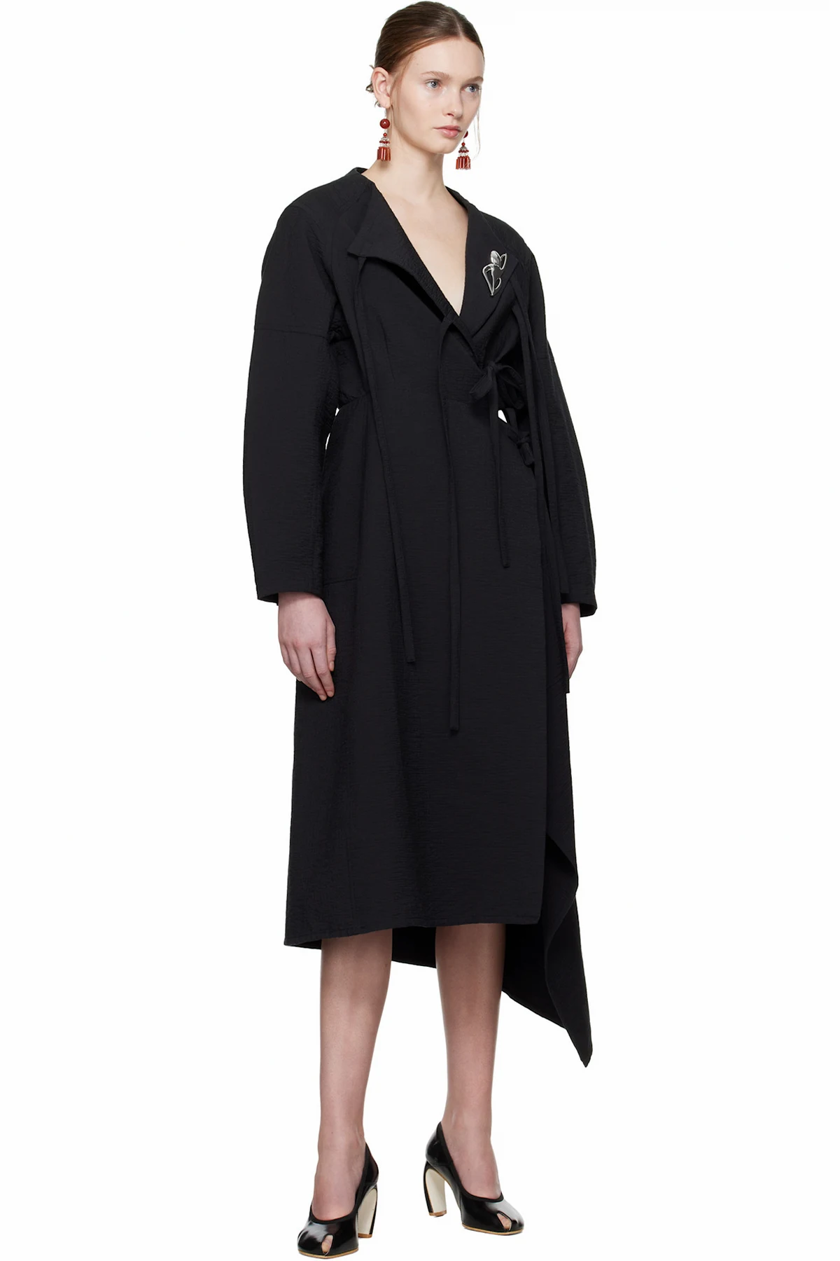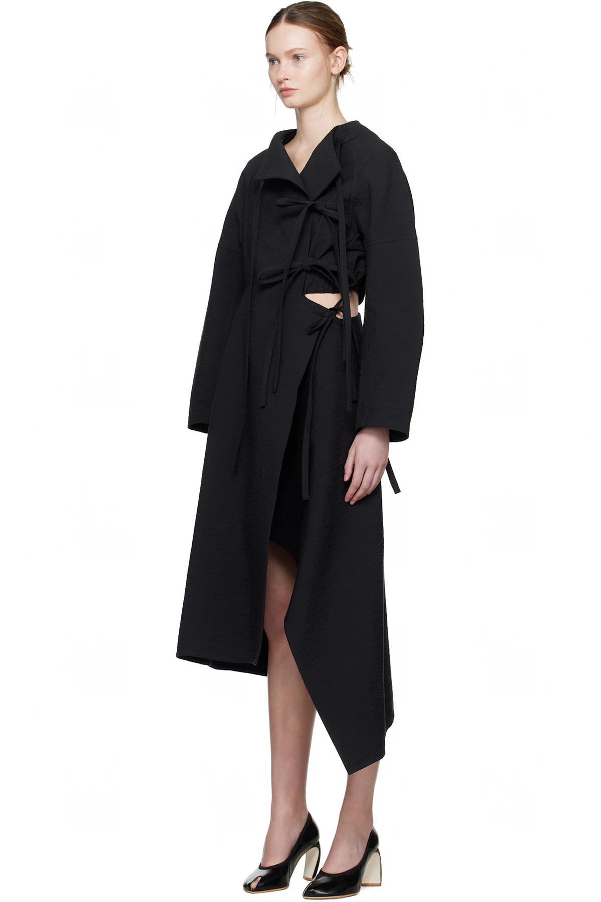 · Self-tie fastenings at front for alternate styling