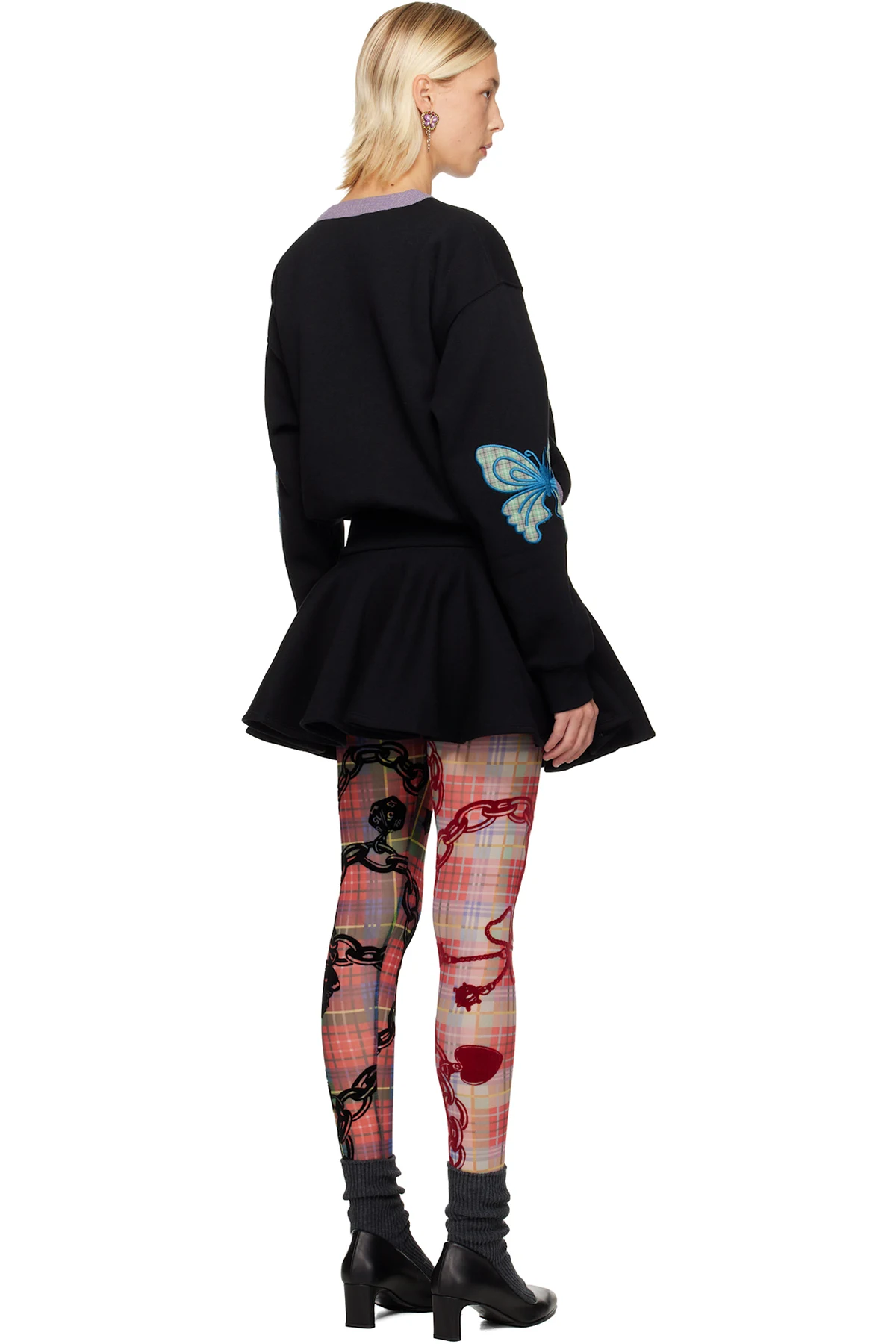 · Graphic patch with check pattern at elbows