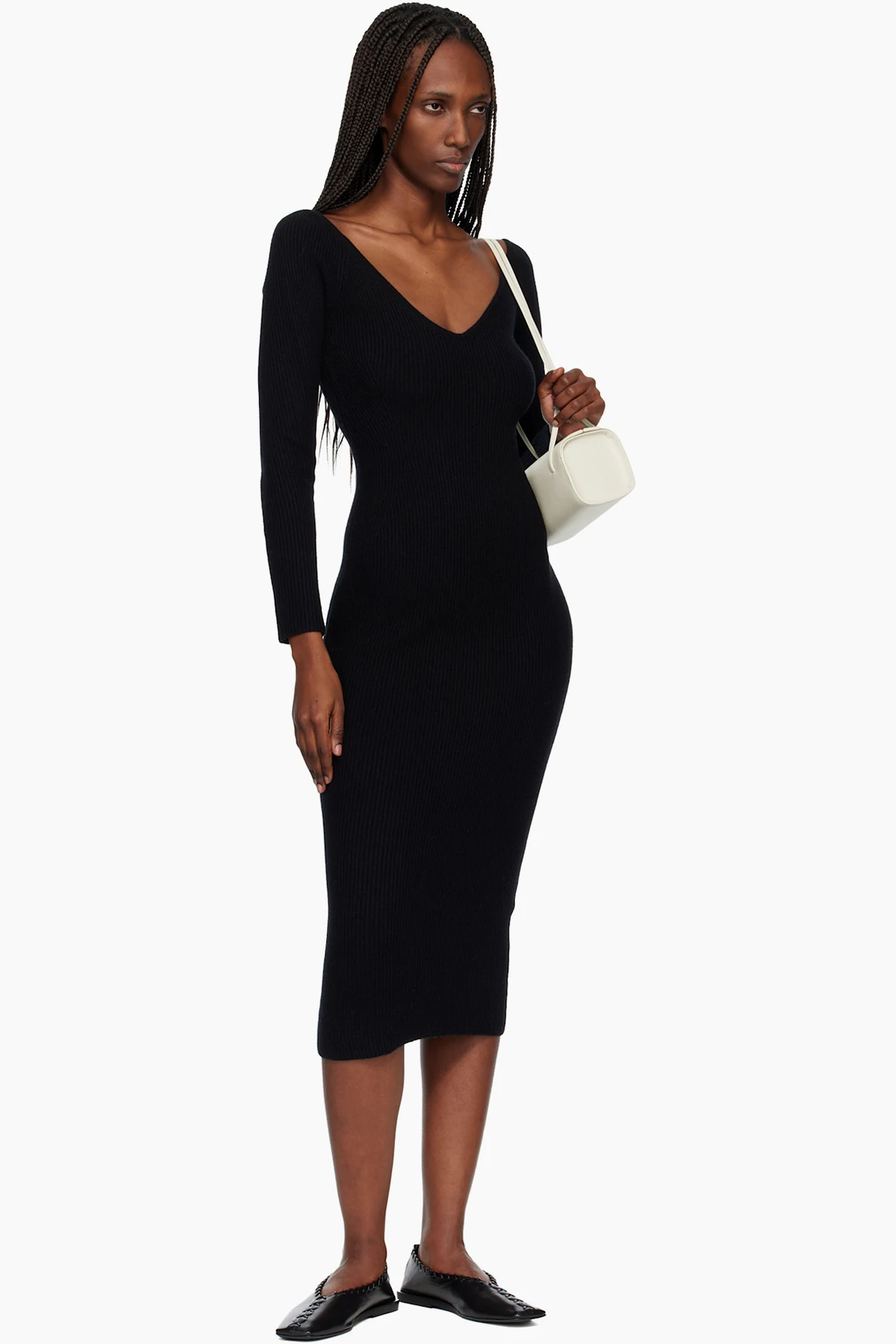 Rib-knit GOTS-certified cashmere midi dress.