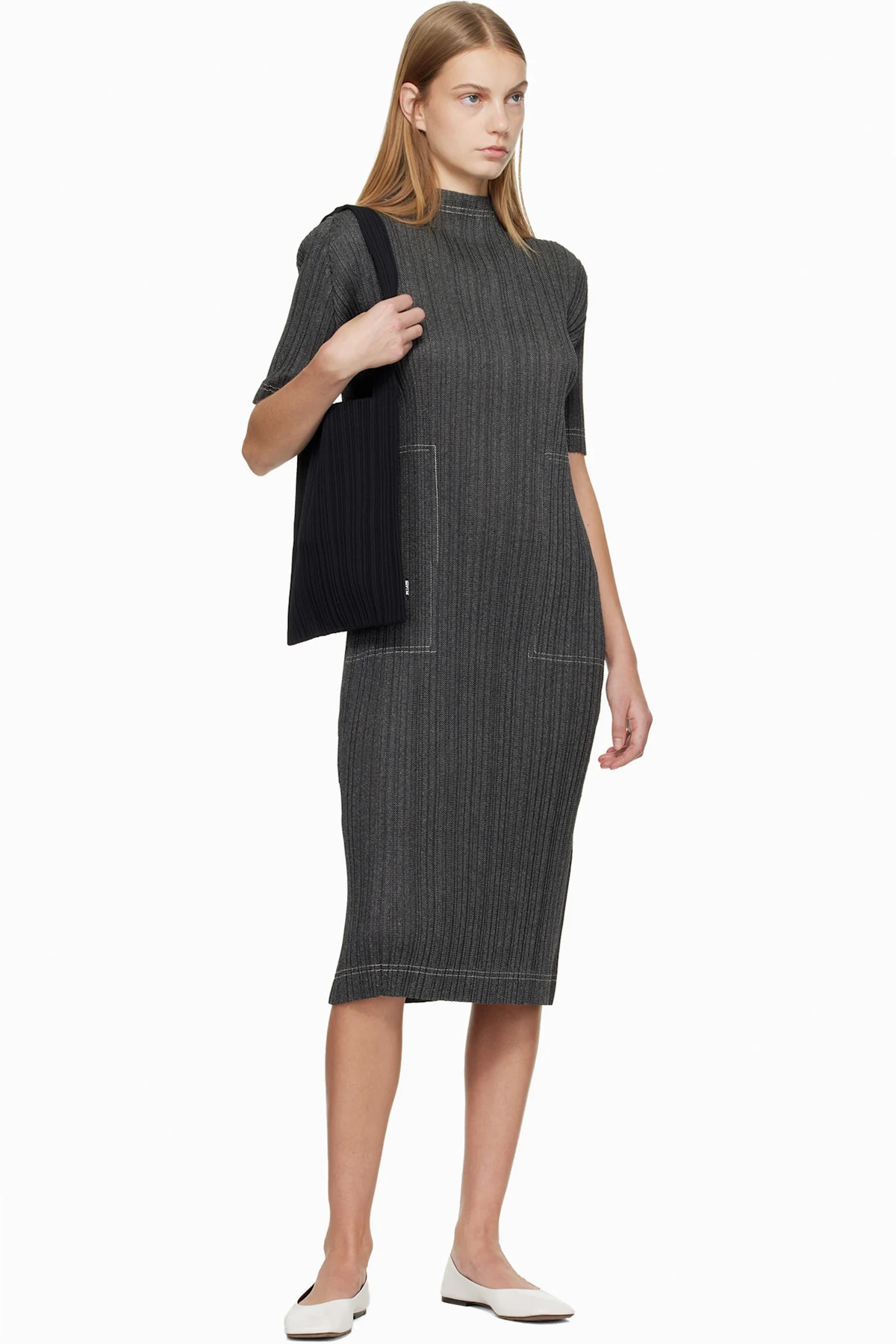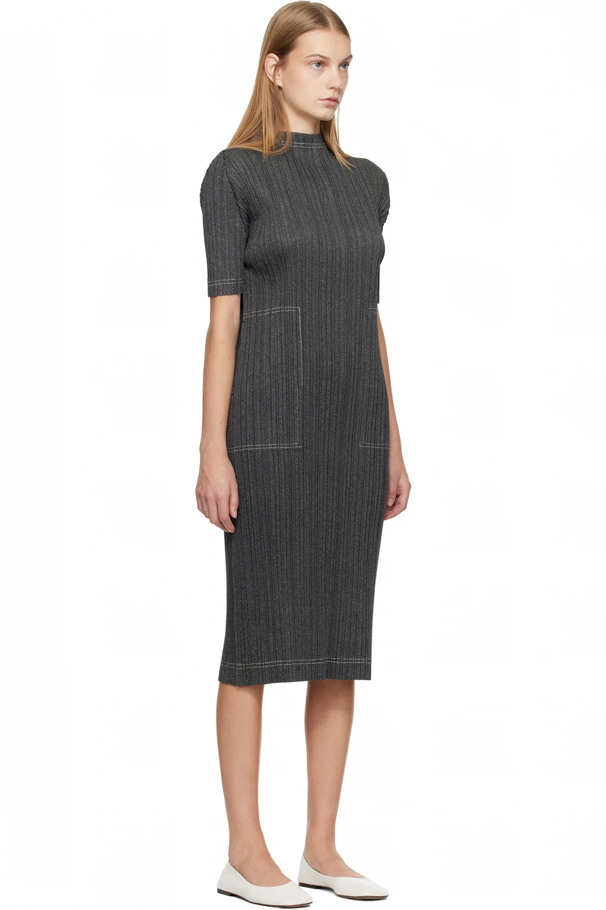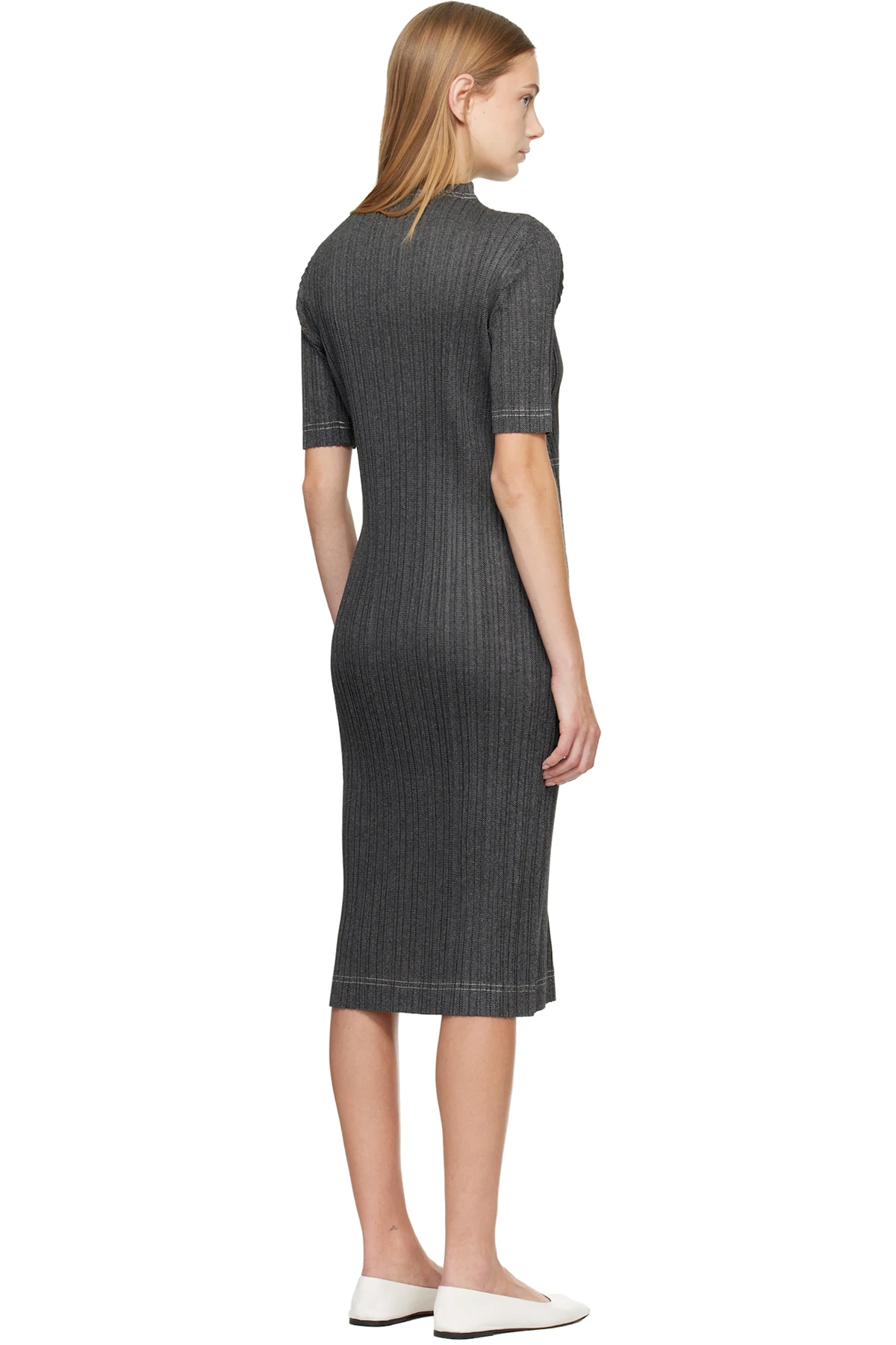 Garment-pleated tricot midi dress.
