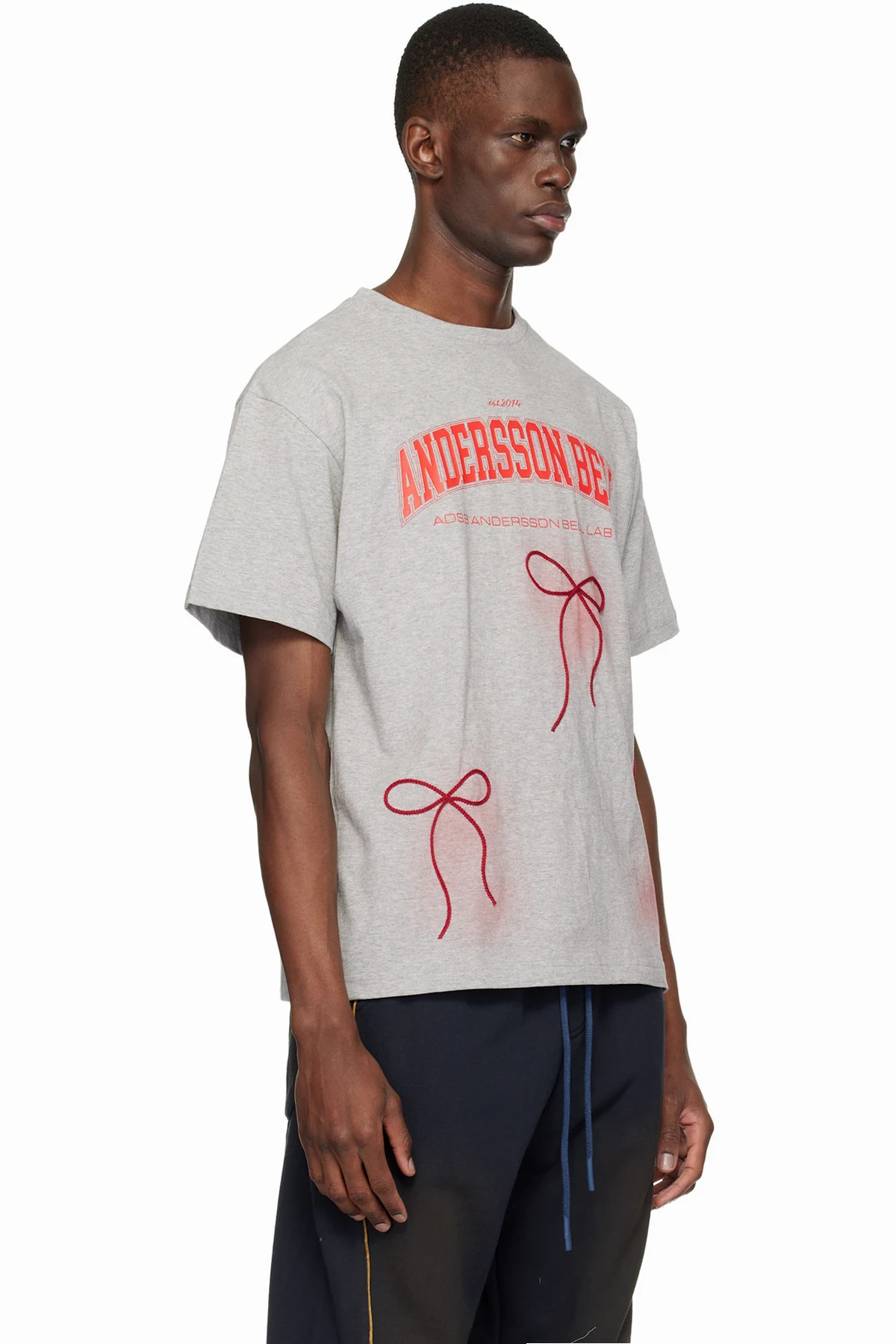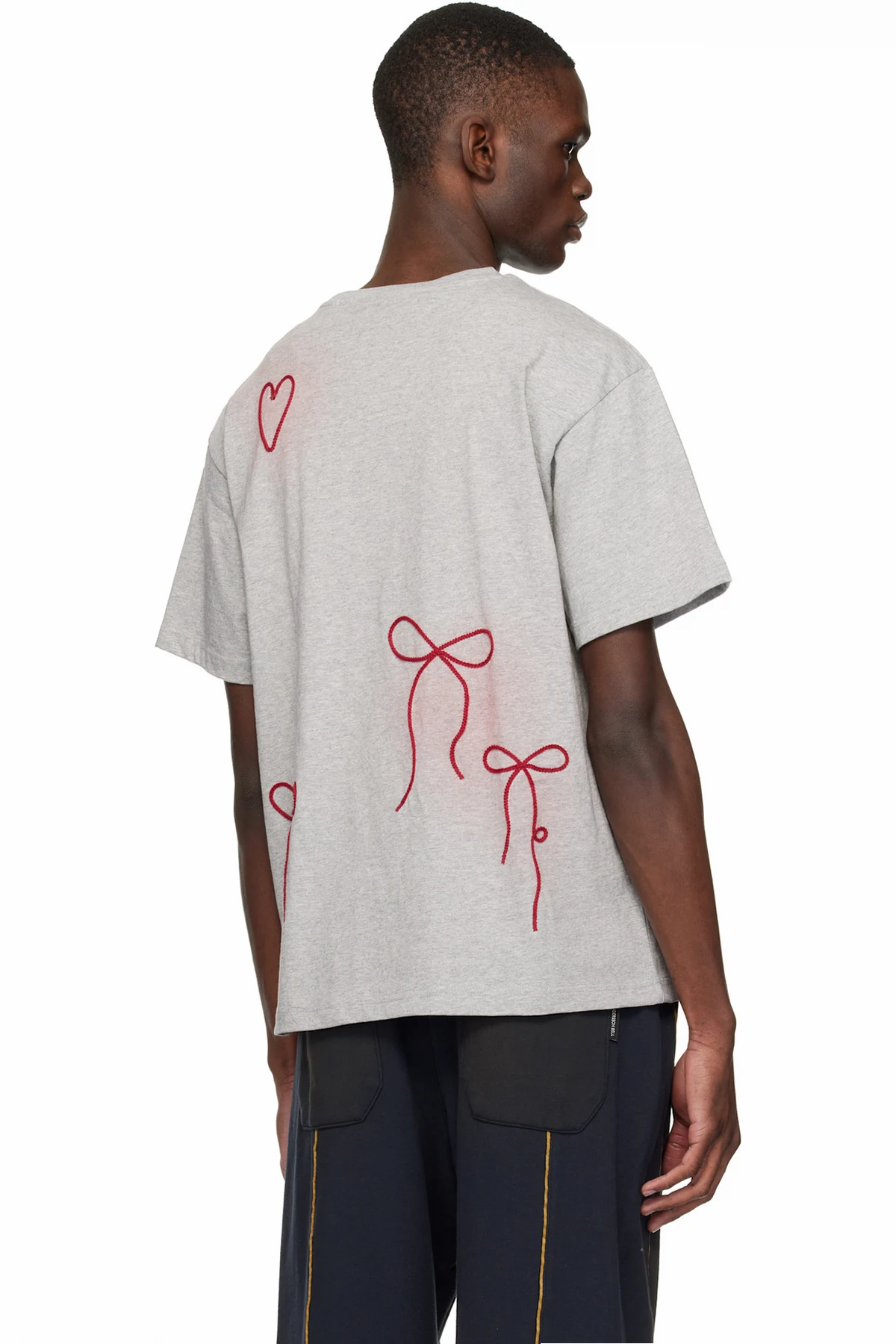 Gray Ribbon Embroidery Spray T-shirt