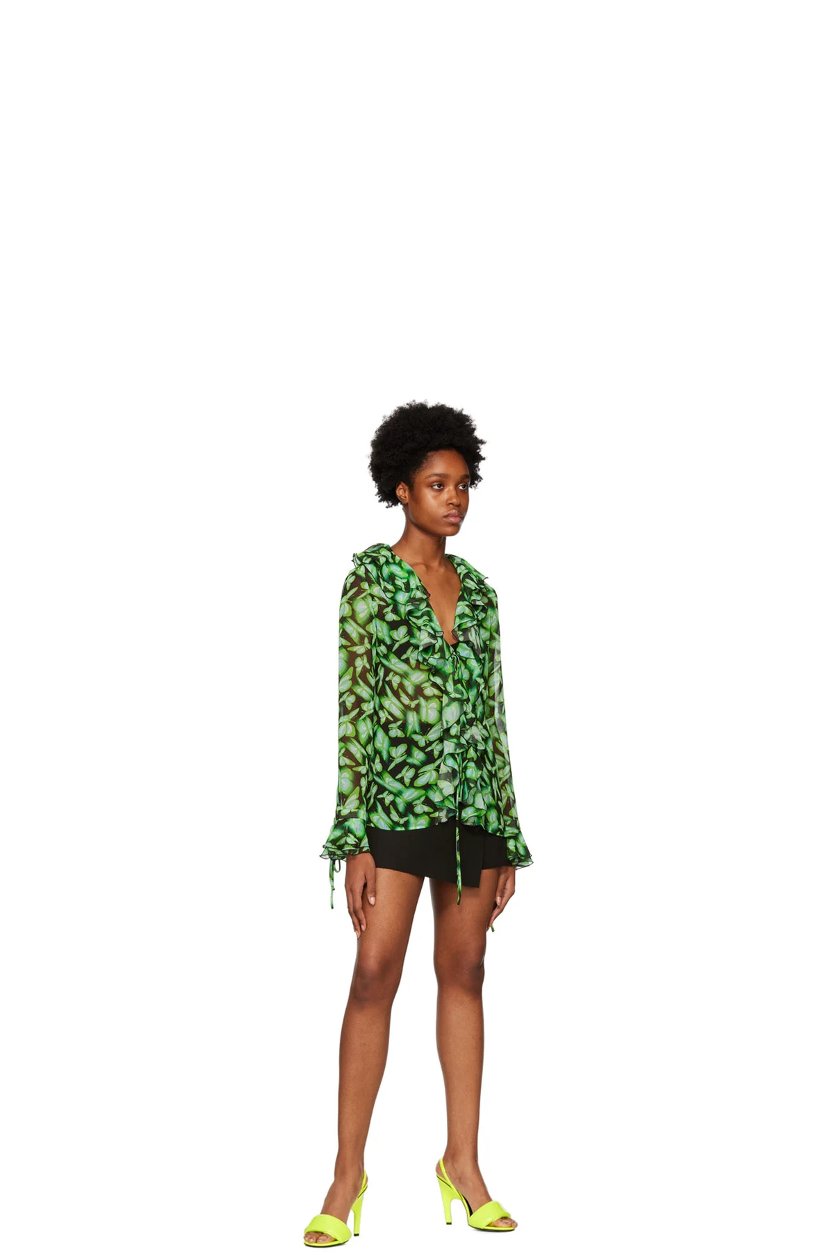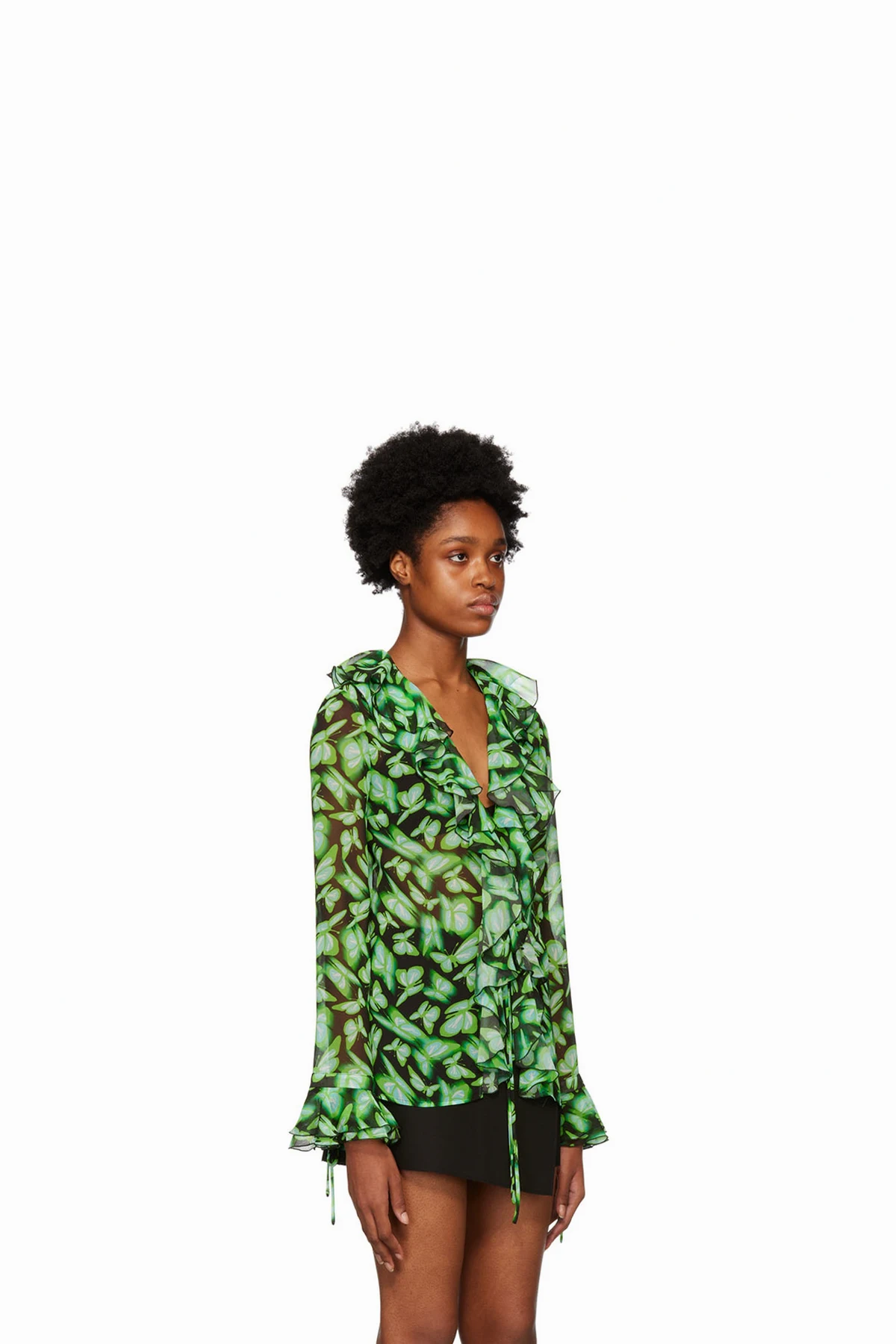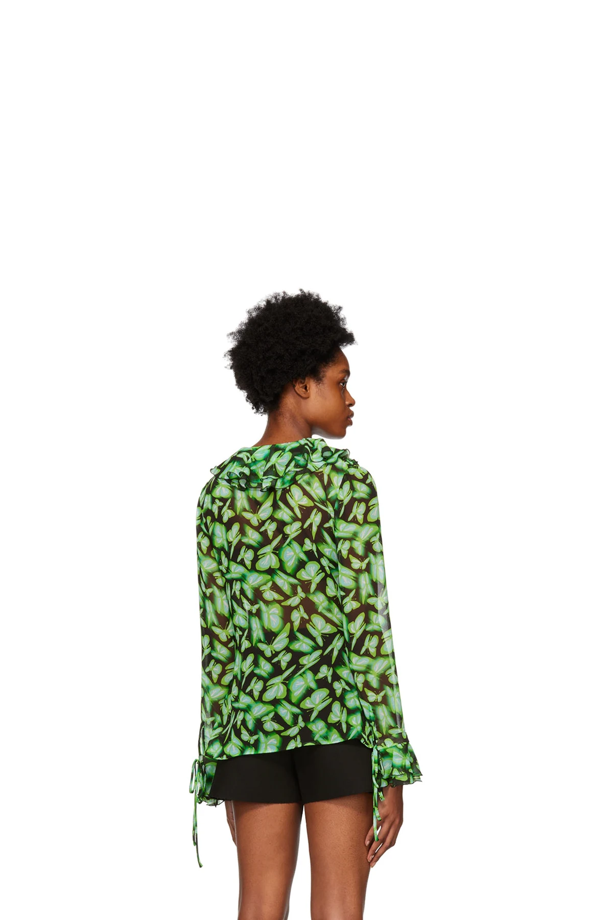 · Ruffled detailing at collar and cuffs