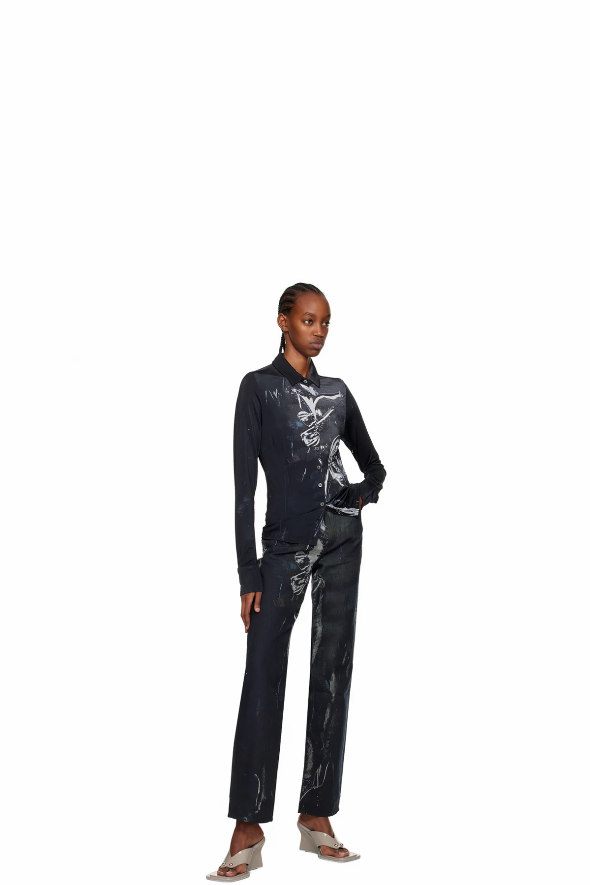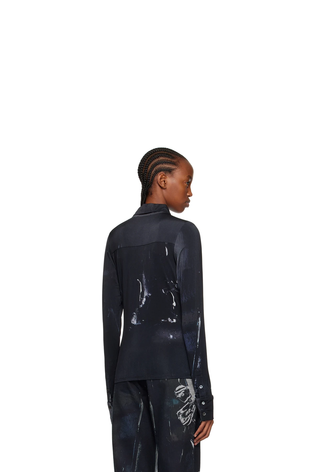 Stretch viscose-blend jersey shirt. Graphic pattern printed throughout.