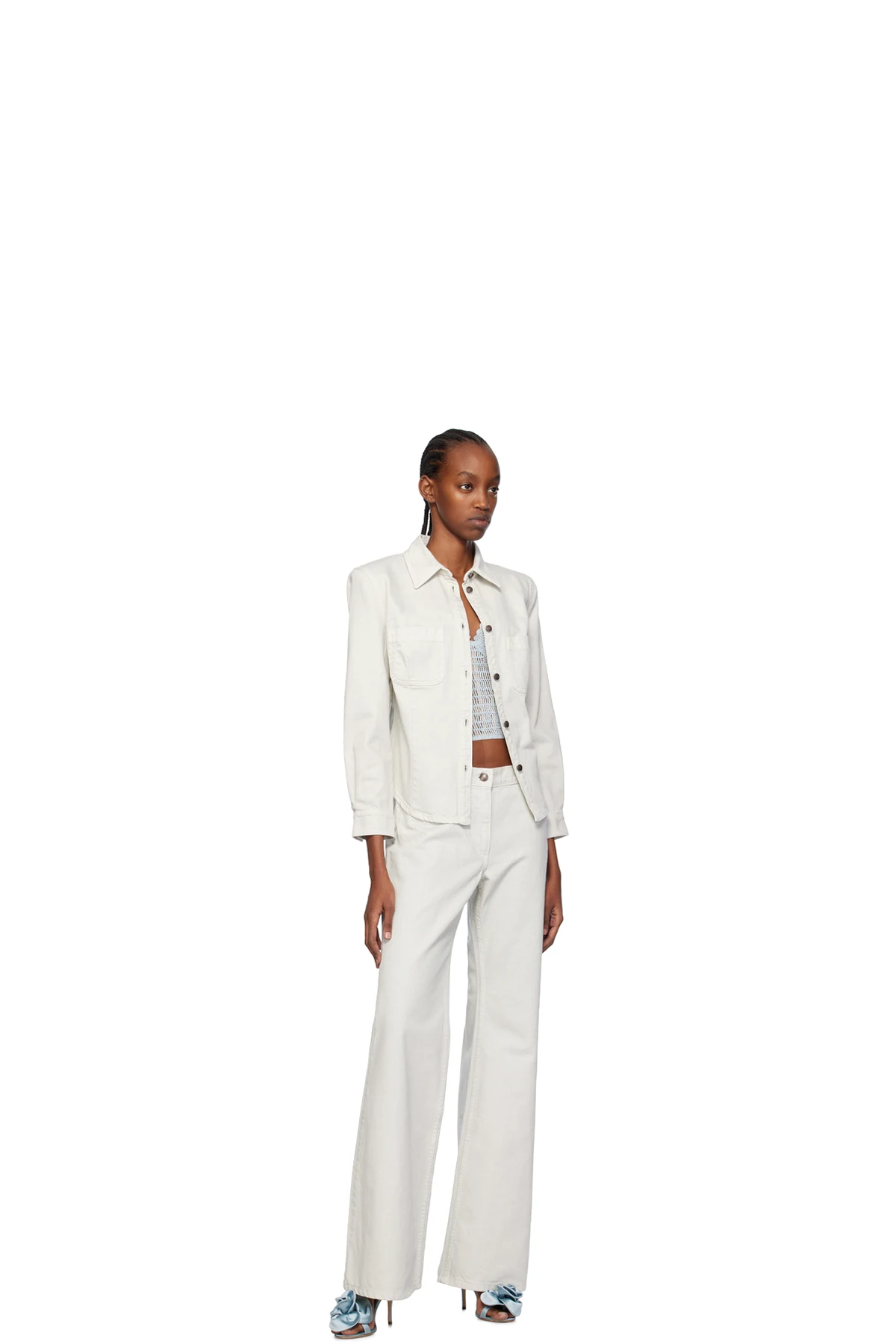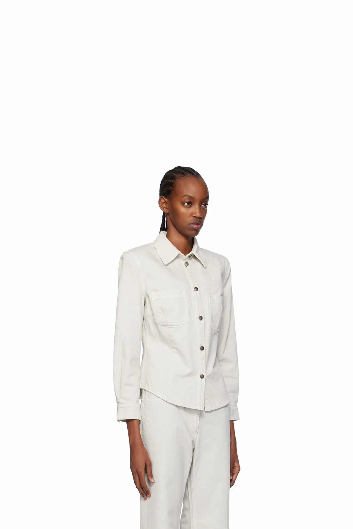 Non-stretch denim shirt.
