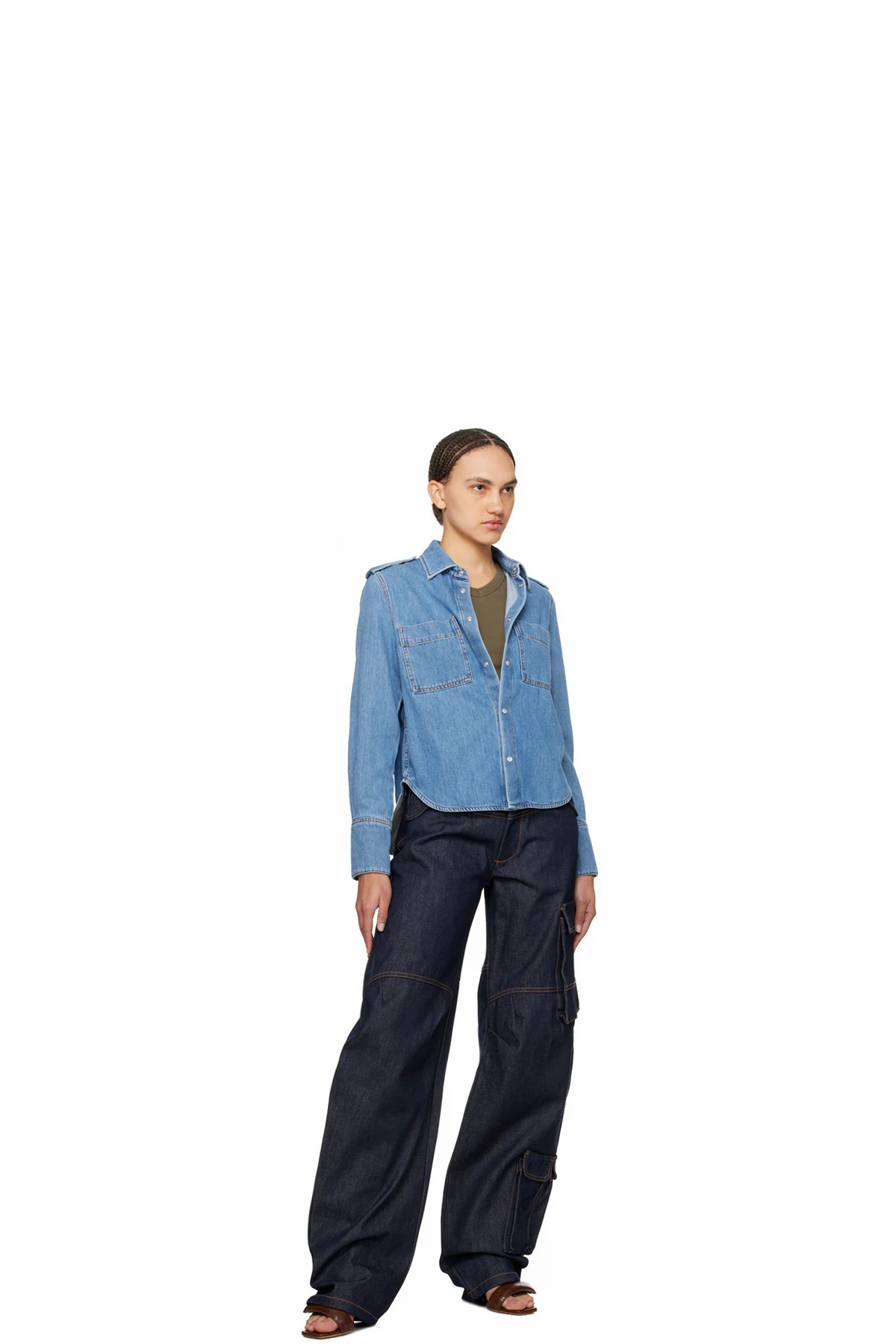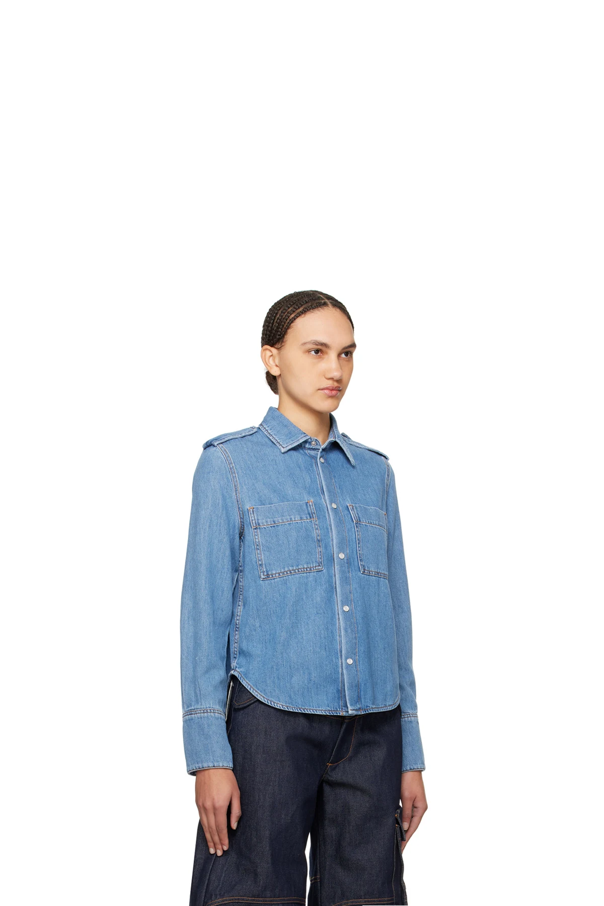 Non-stretch cotton- and tencel-blend denim shirt. Fading throughout.