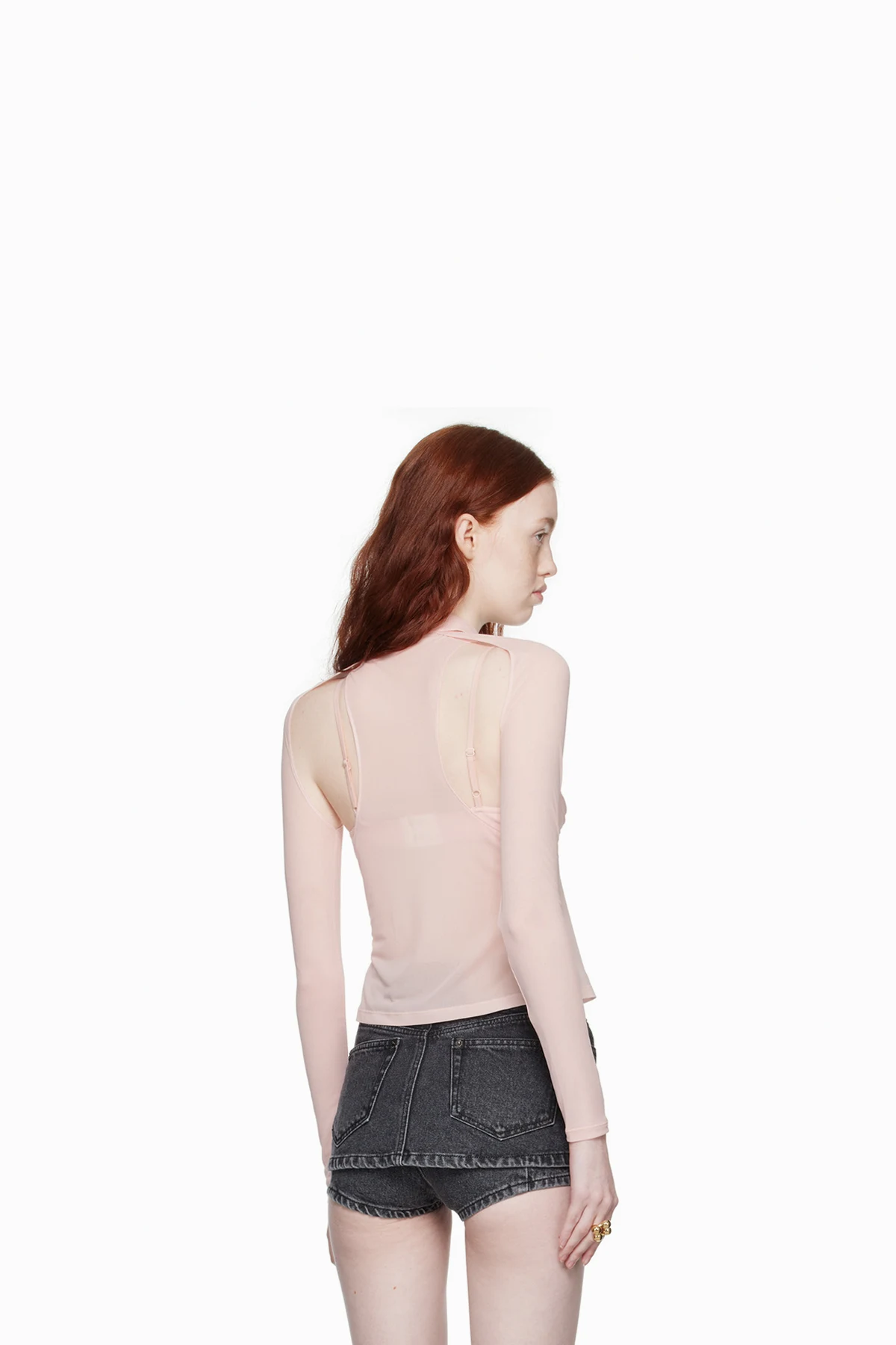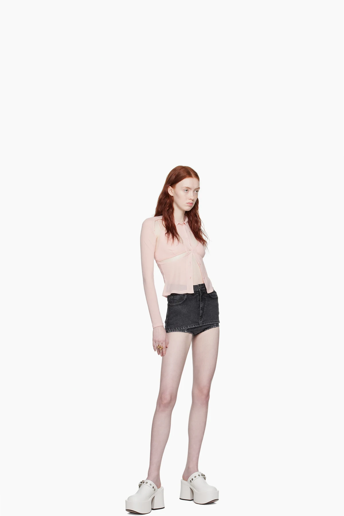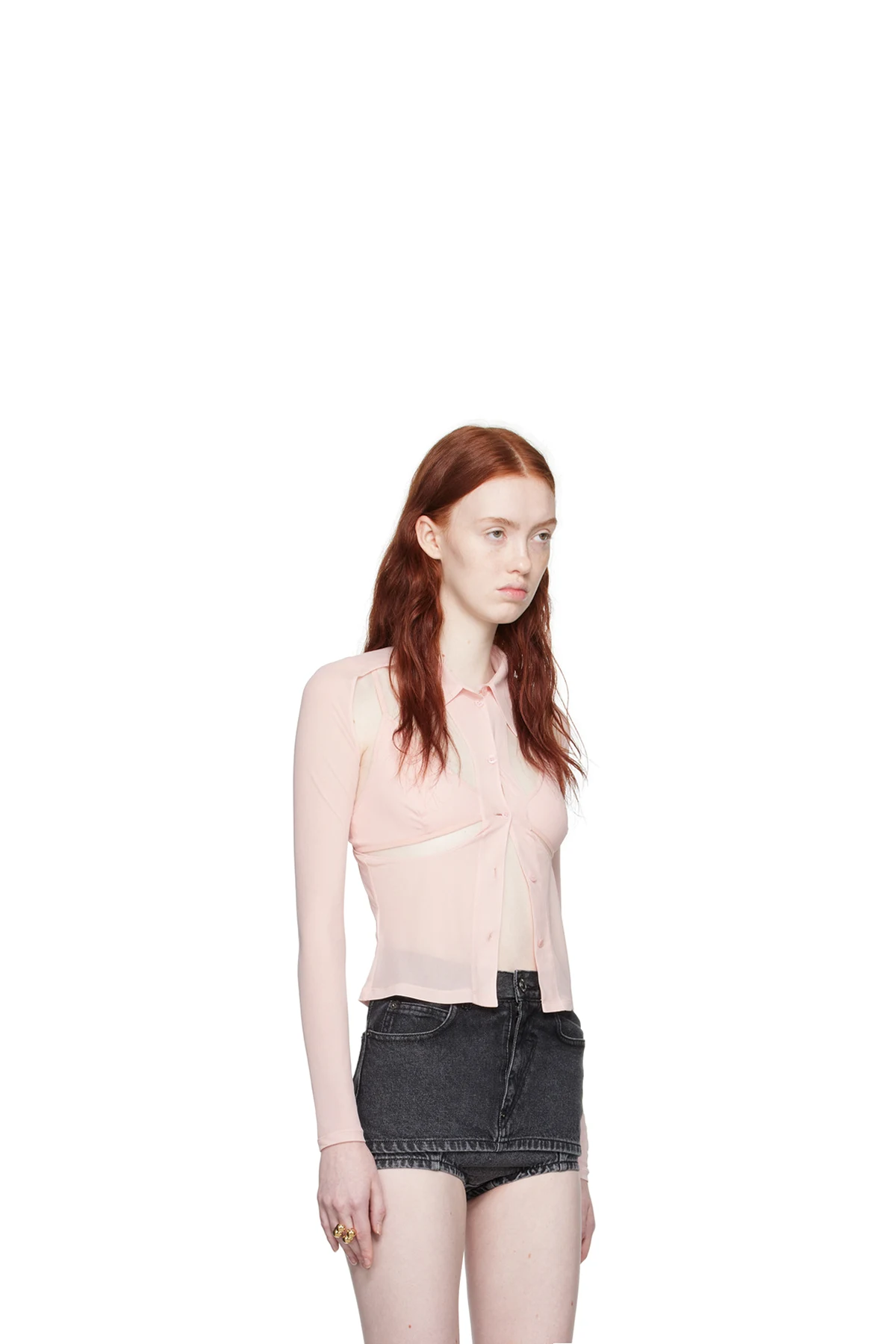 Semi-sheer polyester georgette shirt. Cutouts throughout.
