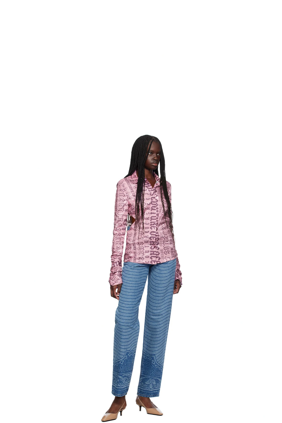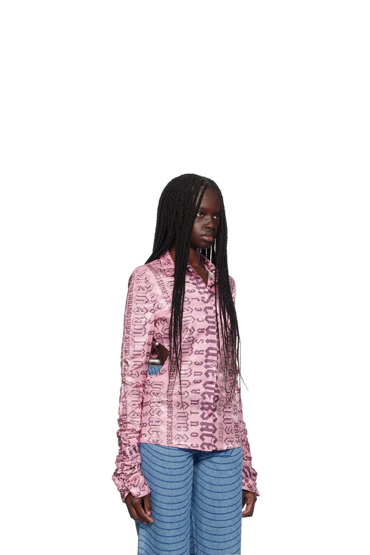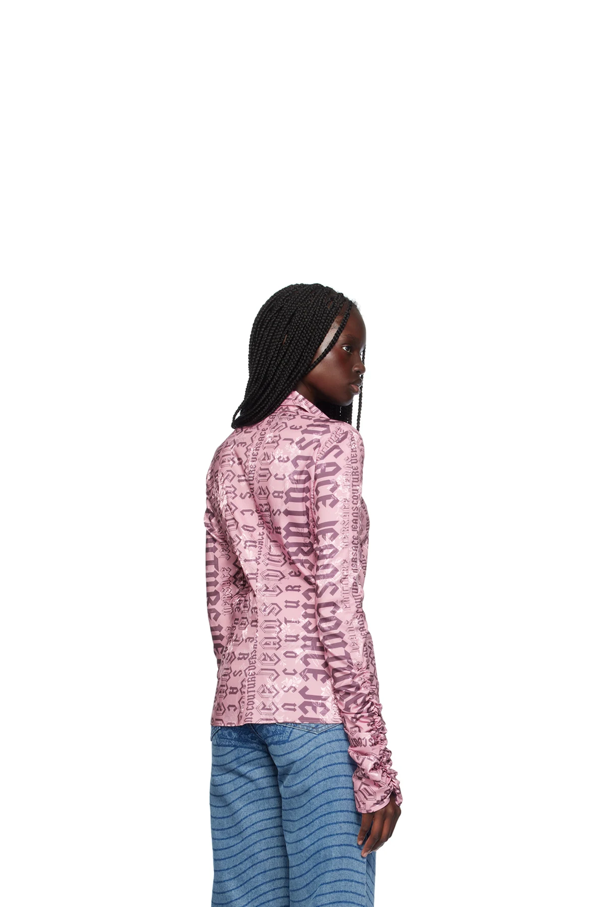 Stretch polyester georgette shirt. Jacquard floral pattern and logo pattern printed throughout.