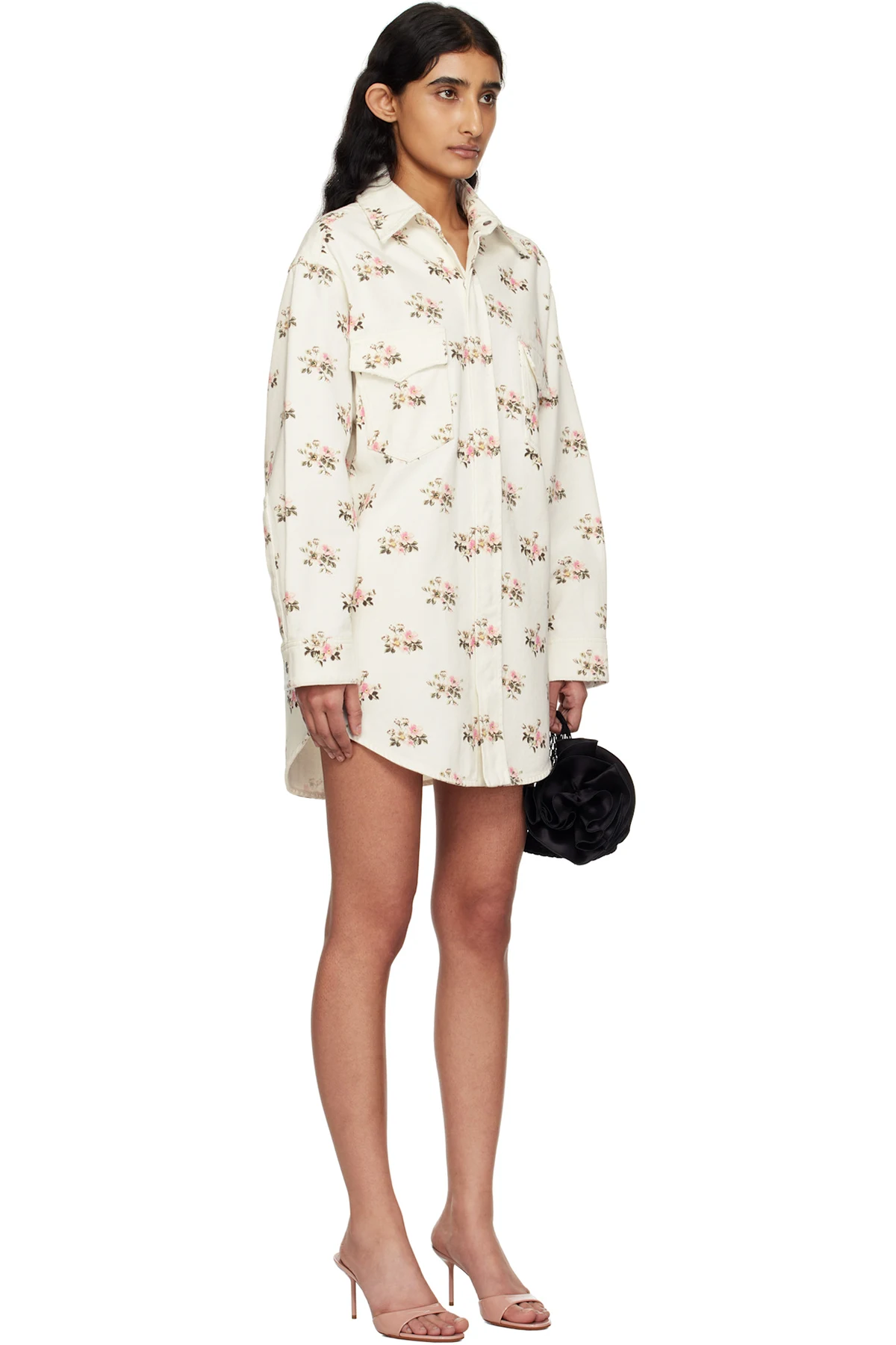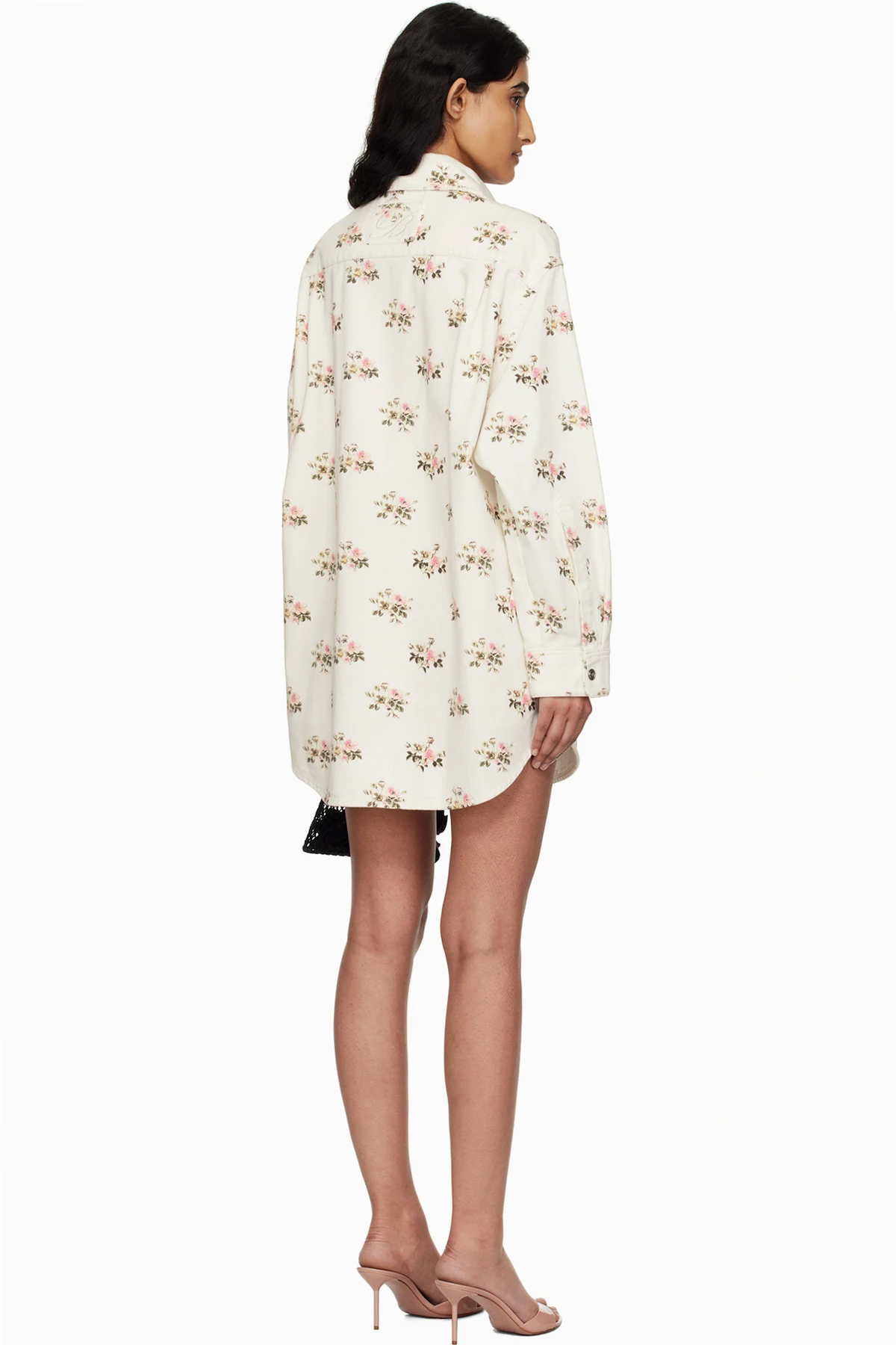 Non-stretch denim overshirt. Floral pattern printed throughout.