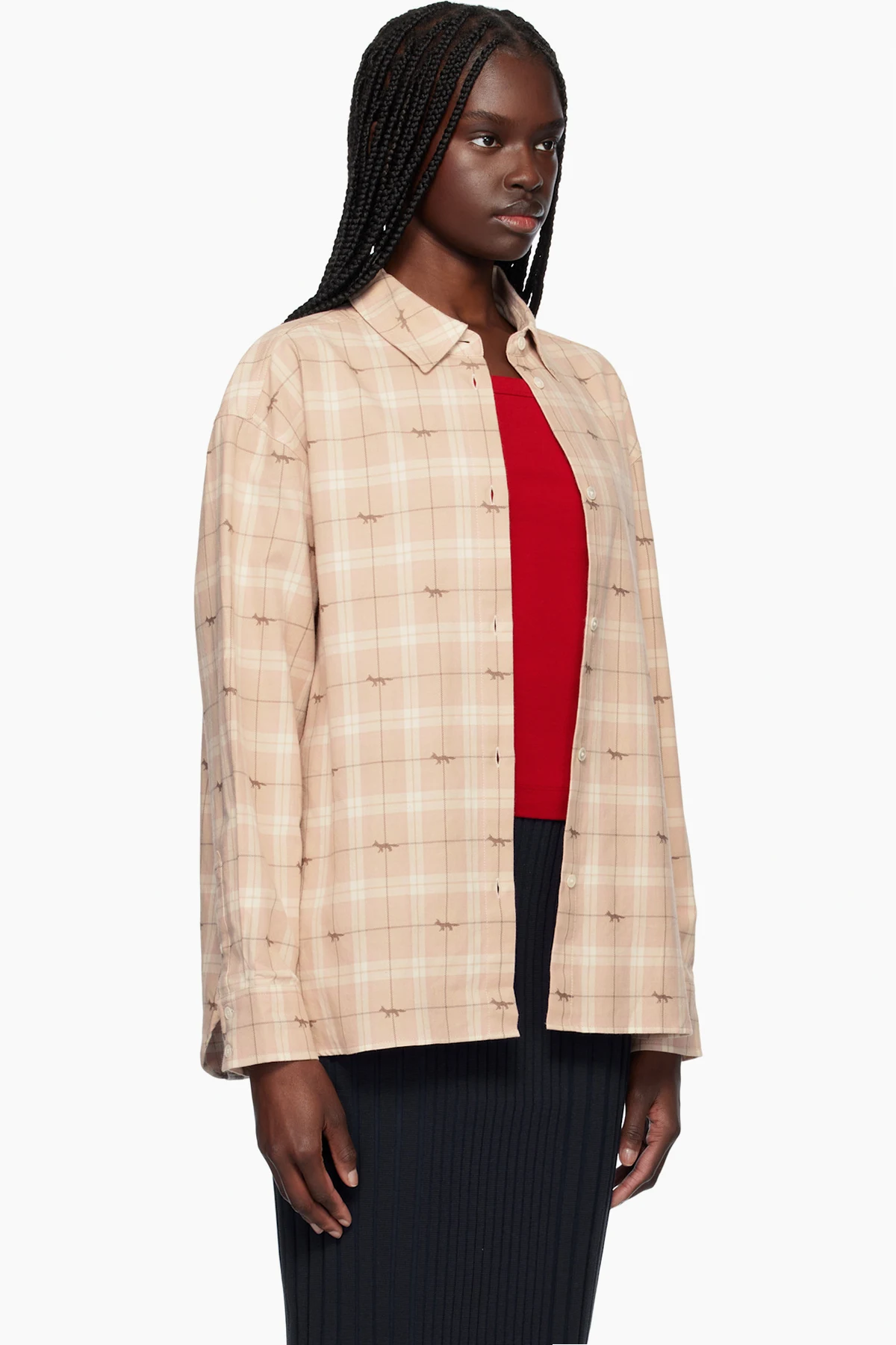 Cotton flannel overshirt. Check pattern and jacquard logo pattern throughout.