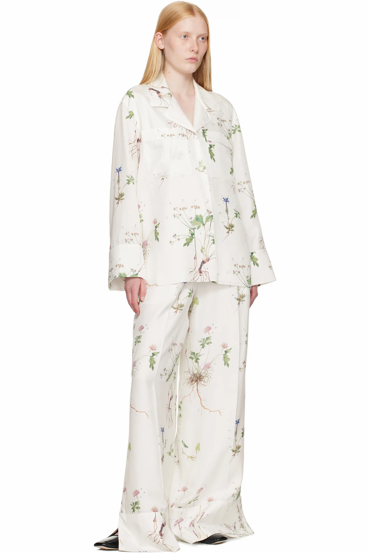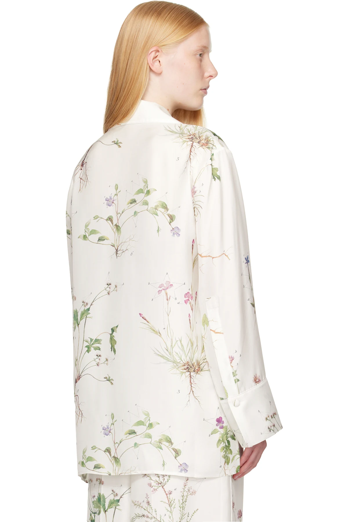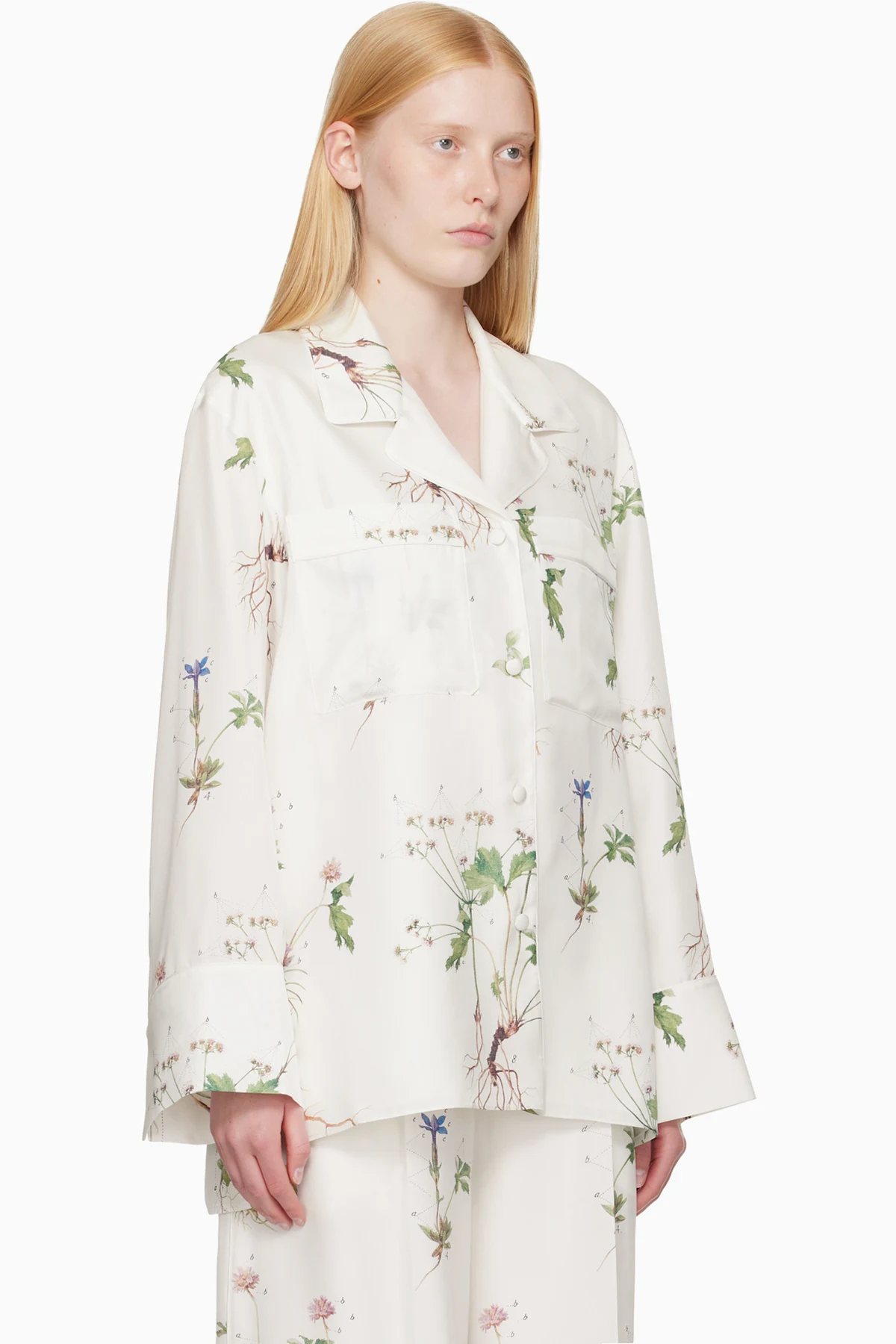 Silk twill shirt. Printed floral pattern and piping throughout.