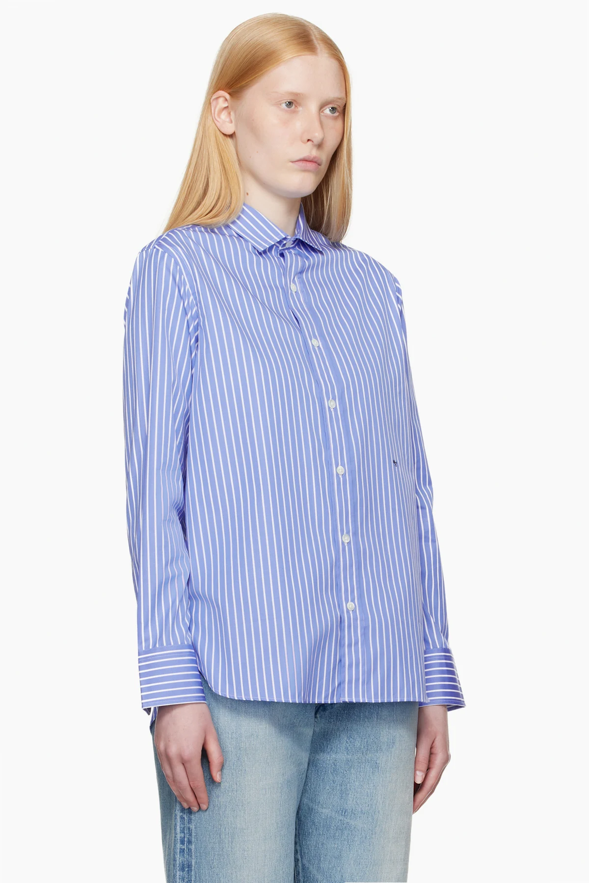 Cotton poplin shirt. Stripes throughout.