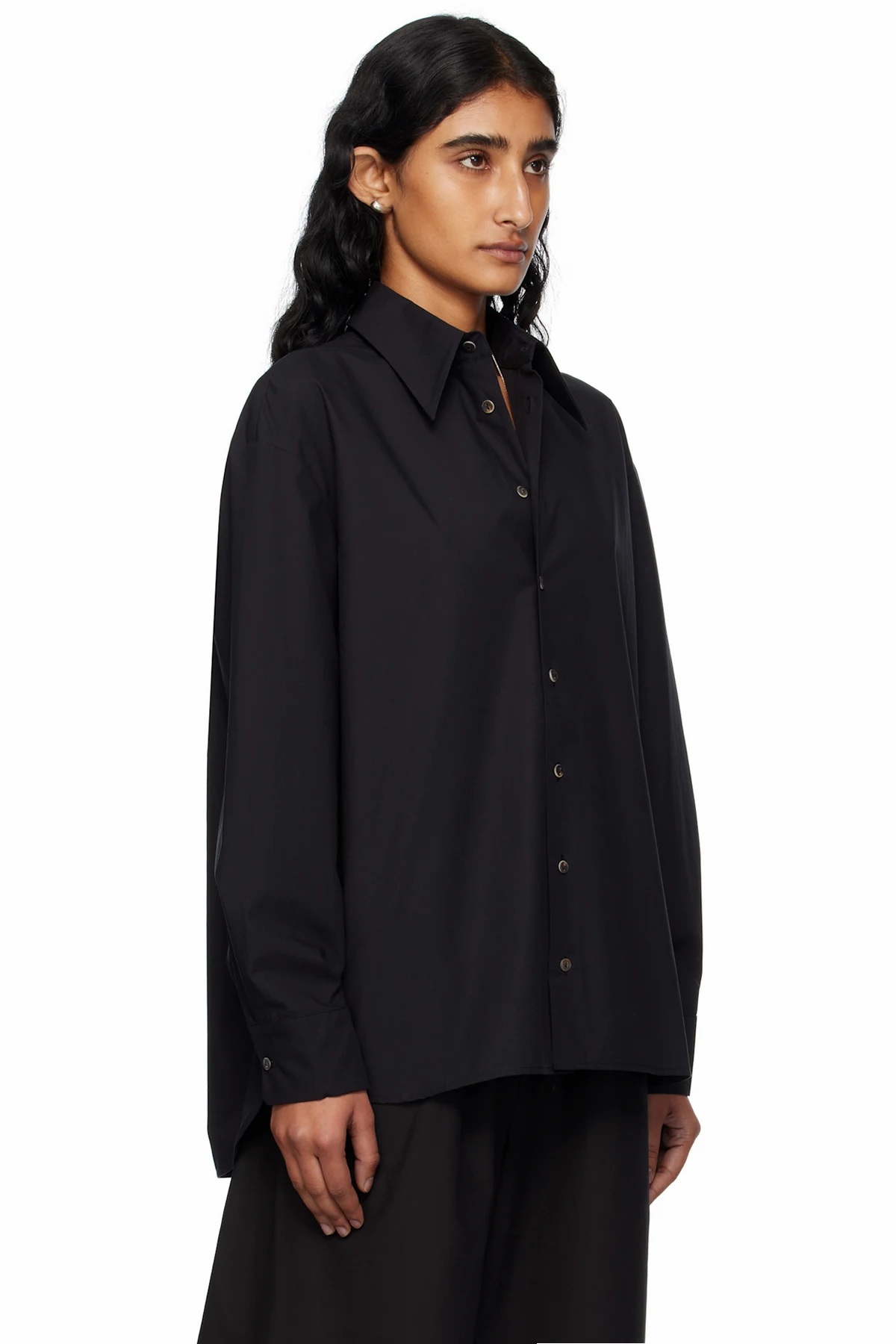 Black Cotton Poplin Oversized Long Sleeve Shirt