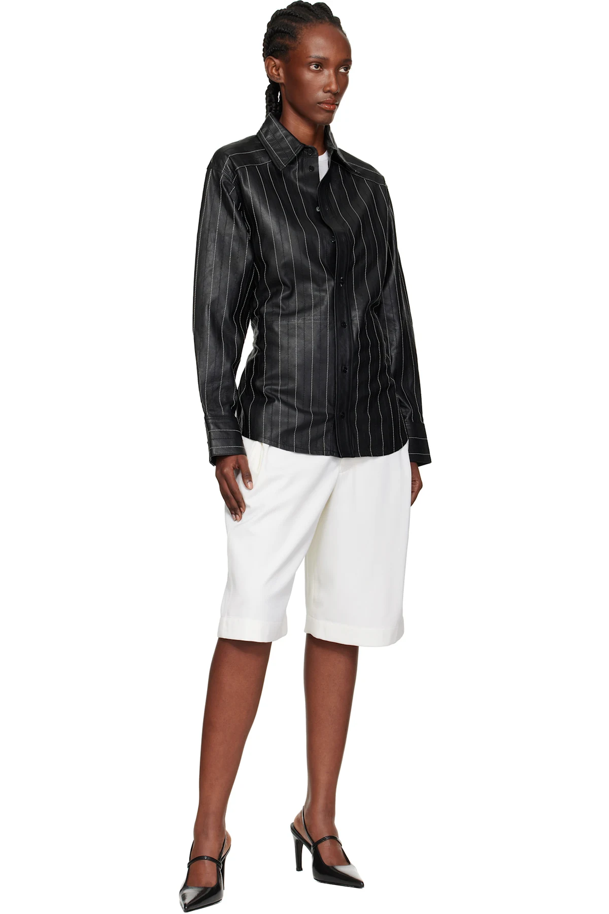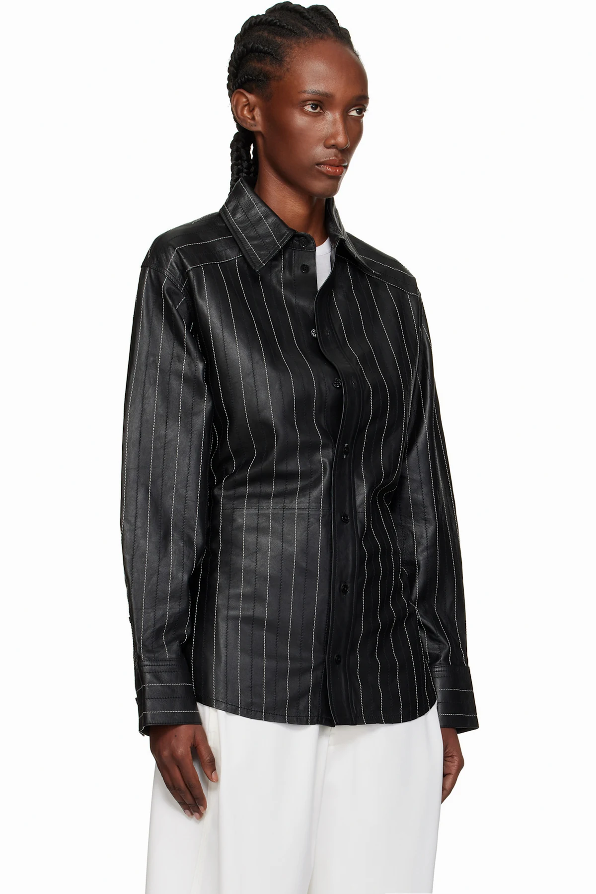 Grained leather shirt.