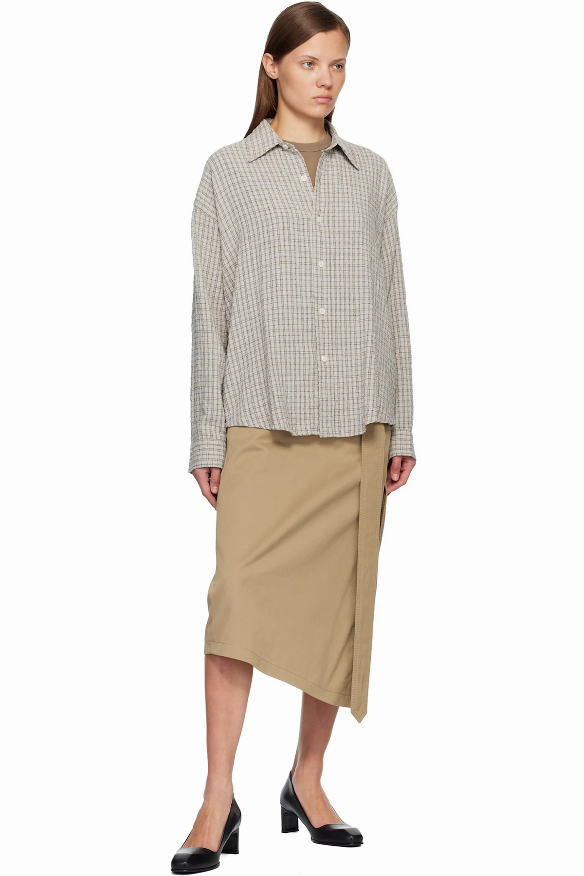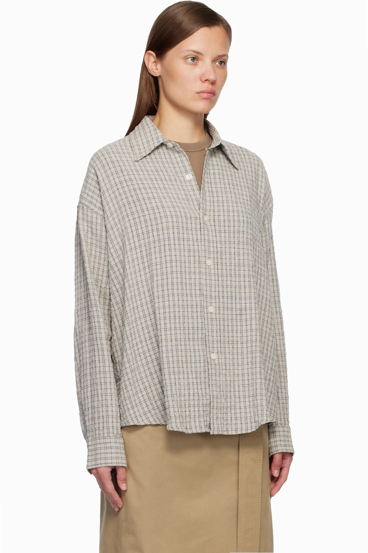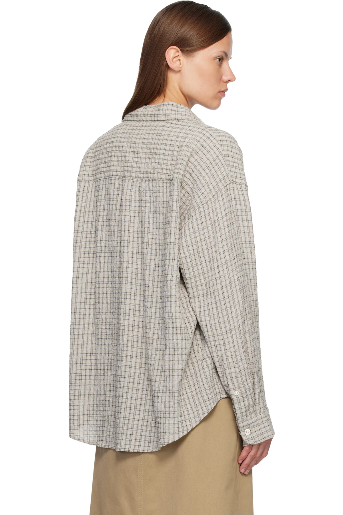 Oversized stretch viscose- and cotton-blend seersucker shirt.