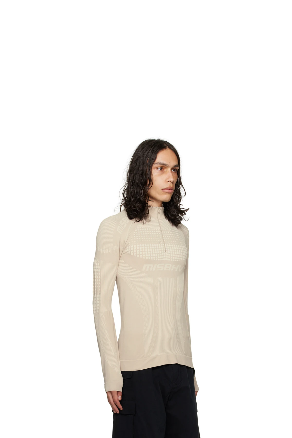 Breathable stretch recycled nylon-blend jersey sweater. Jacquard stripes and polka dot pattern throughout.