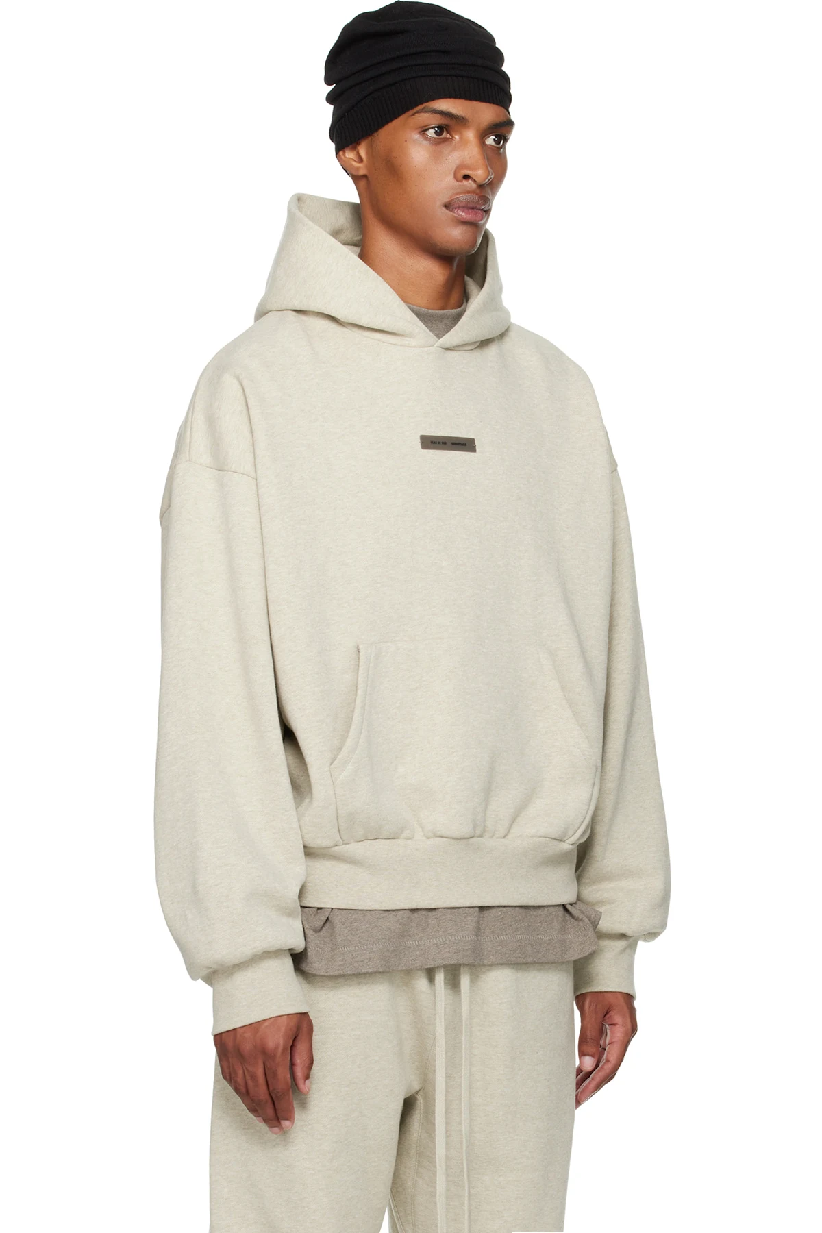 Beige Classic Fit Fleece Hoodie