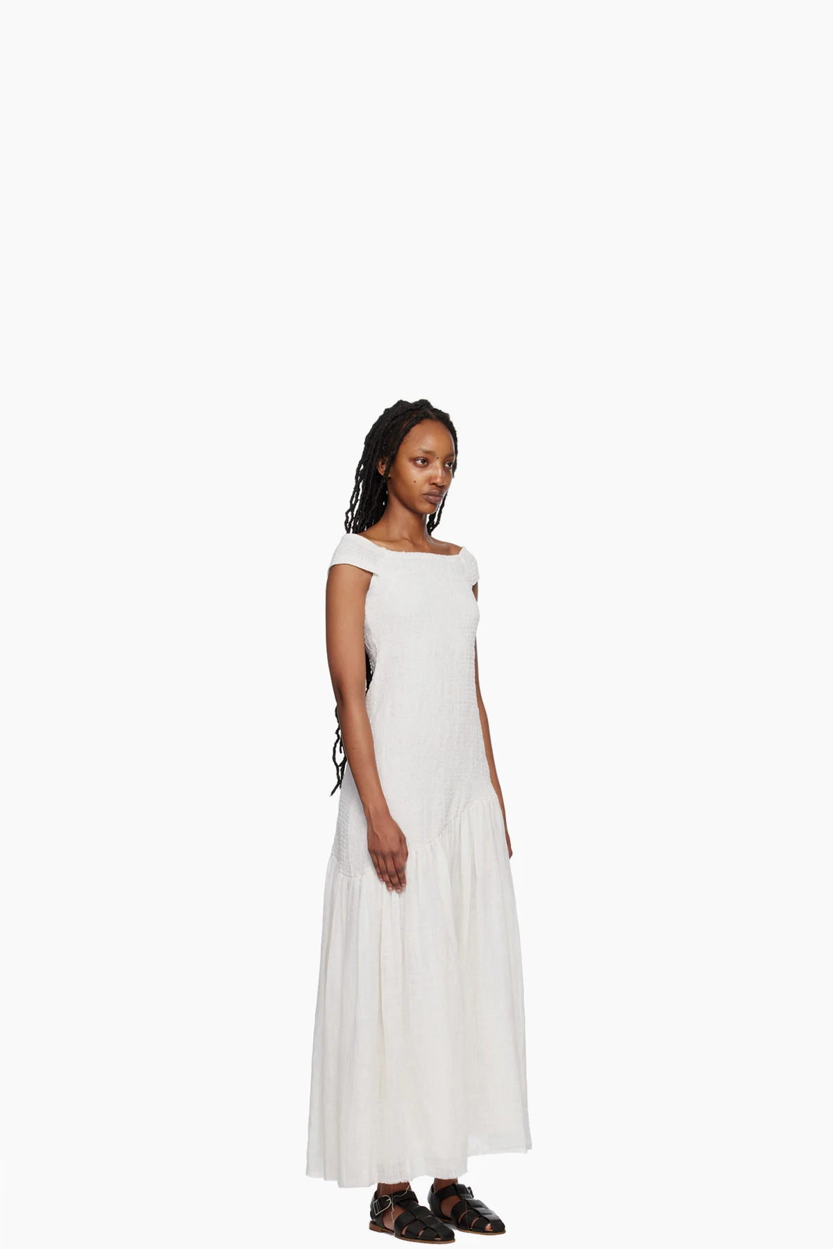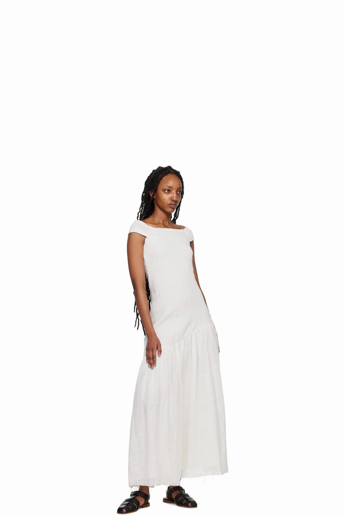 Semi-sheer linen- and silk-blend gauze dress. Smocking throughout.
