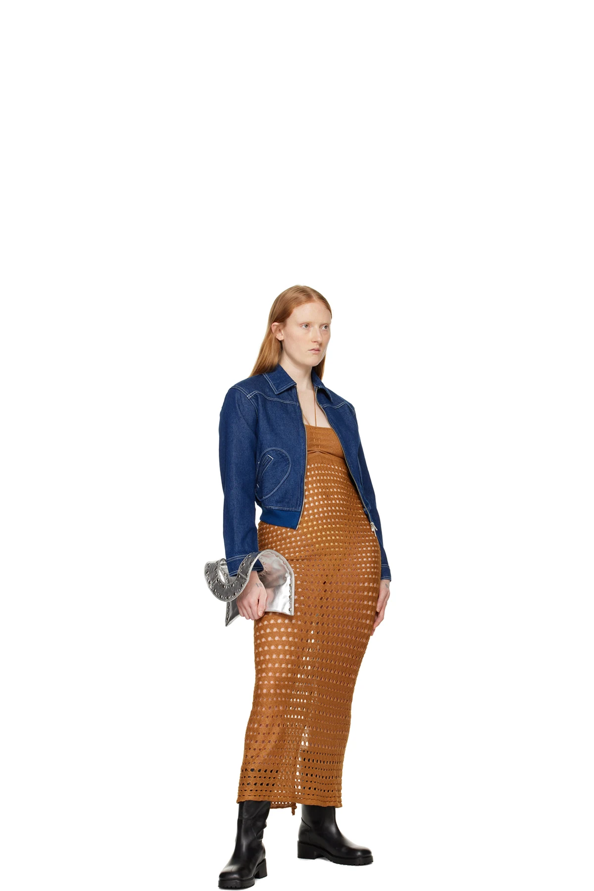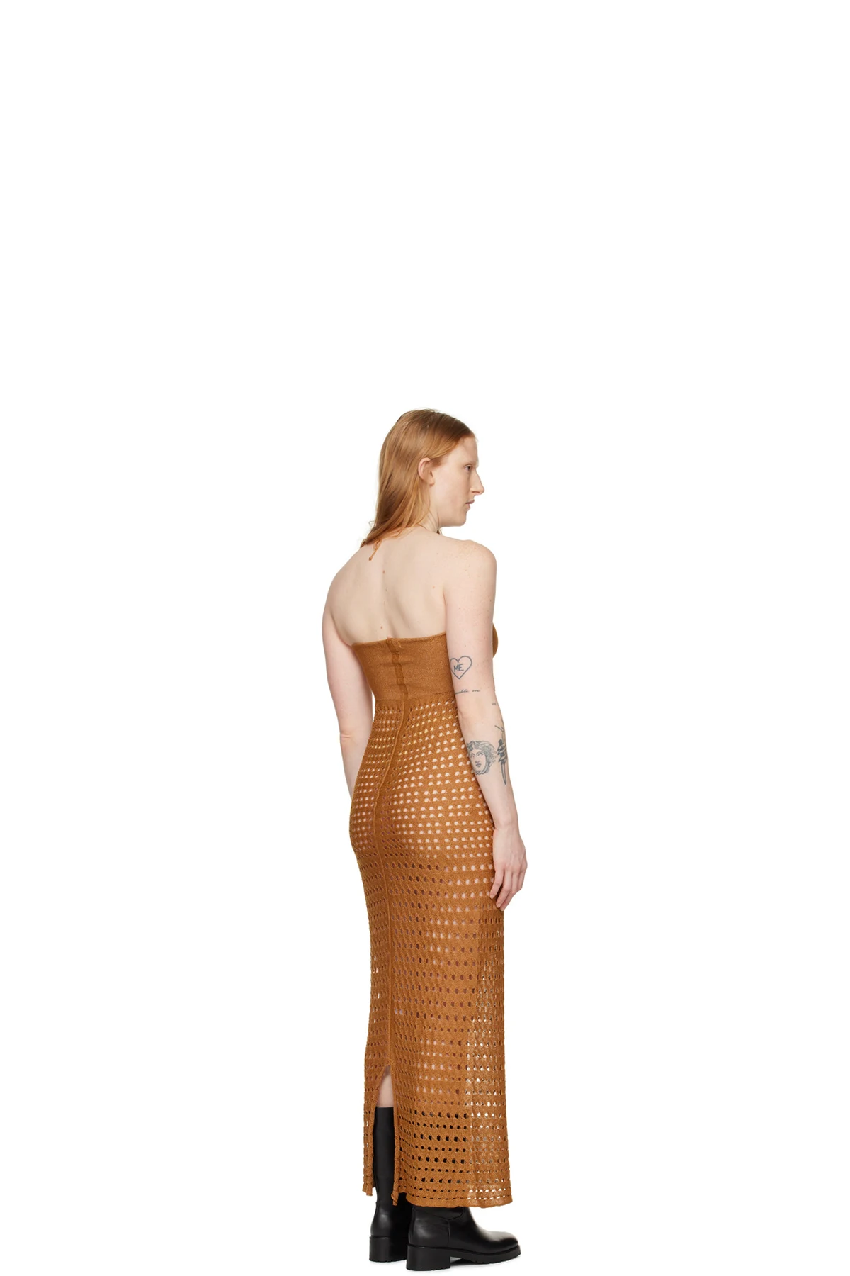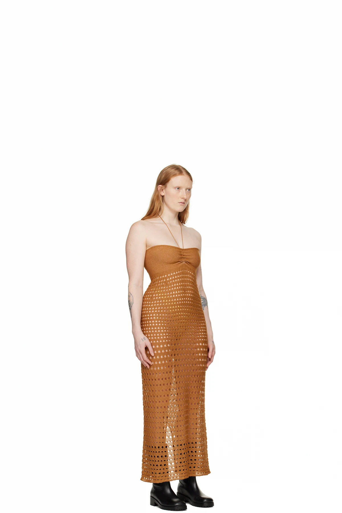 Knit and open knit viscose-blend dress. Metallic thread detailing throughout.