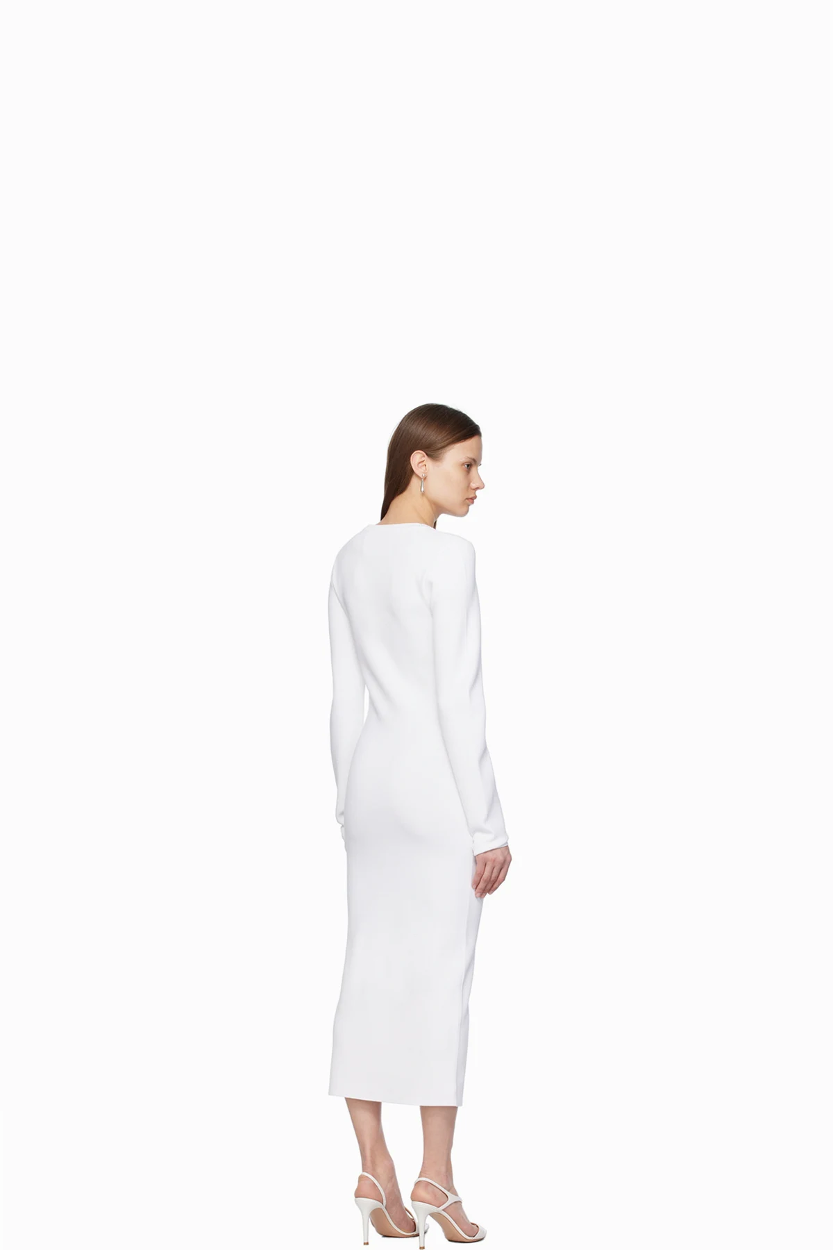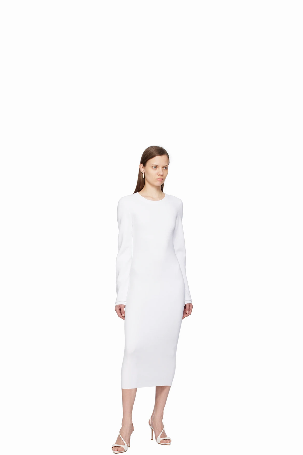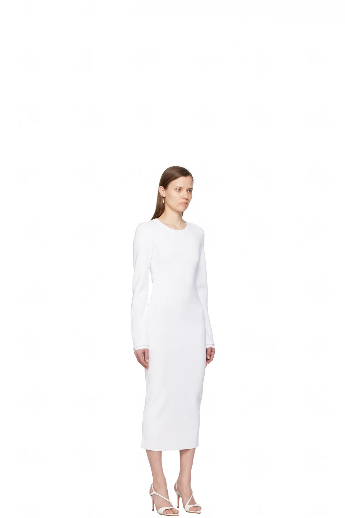Knit rayon- and nylon-blend dress. Rib knit crewneck.