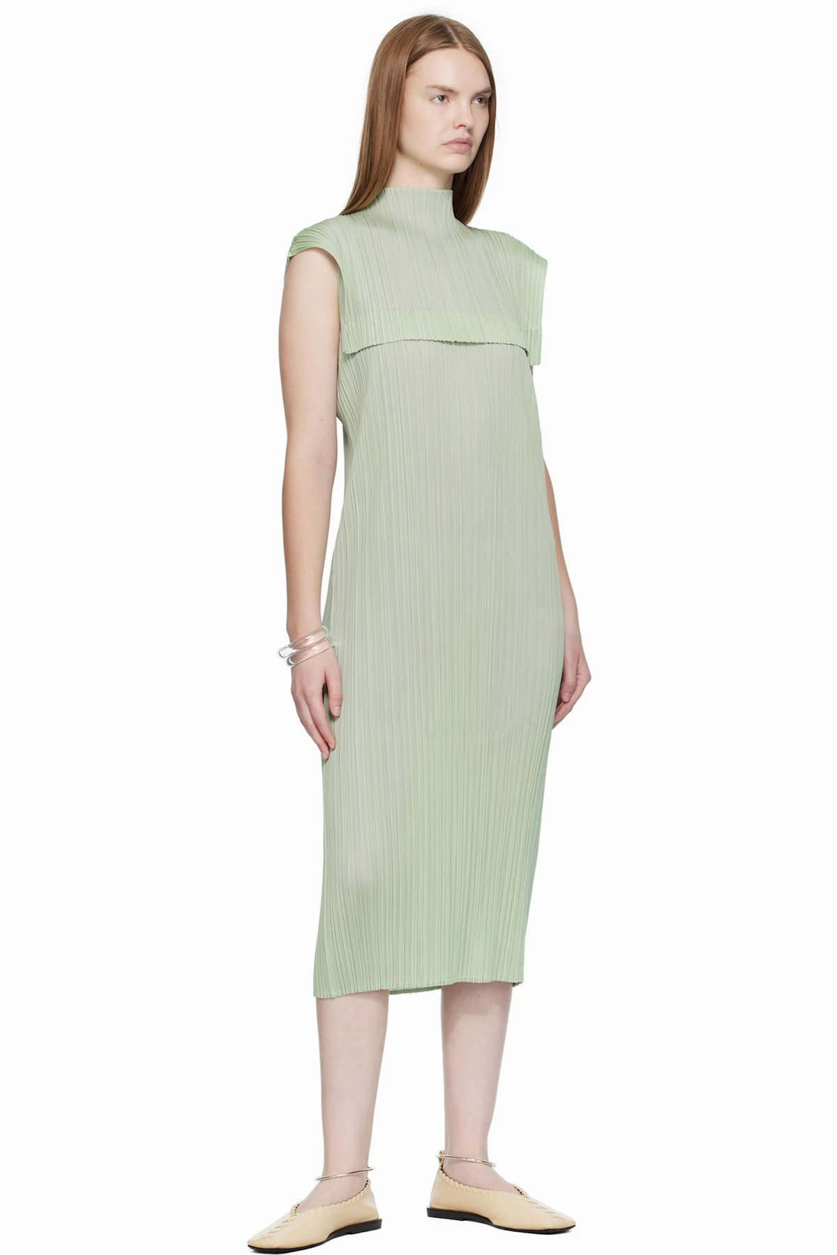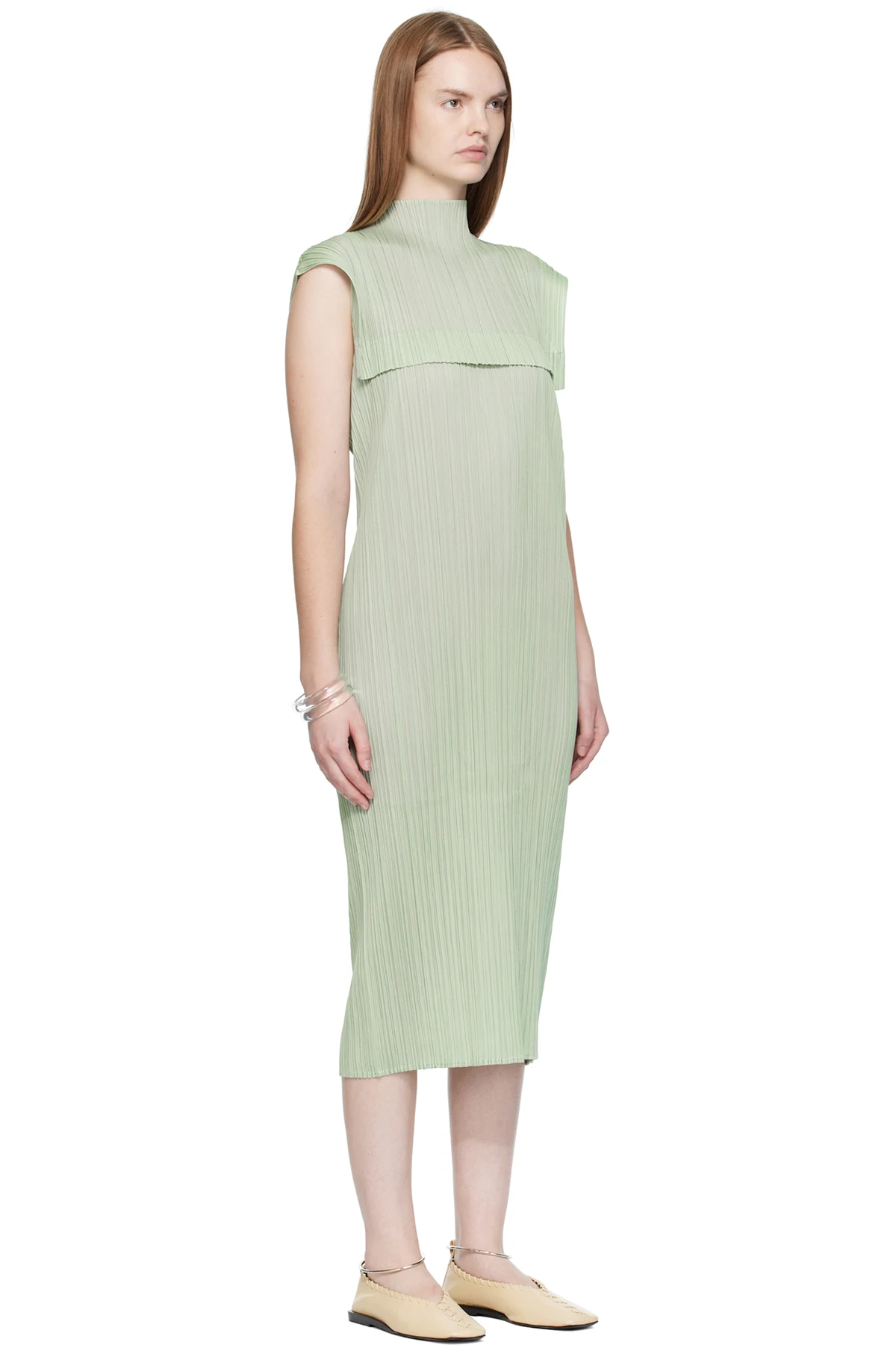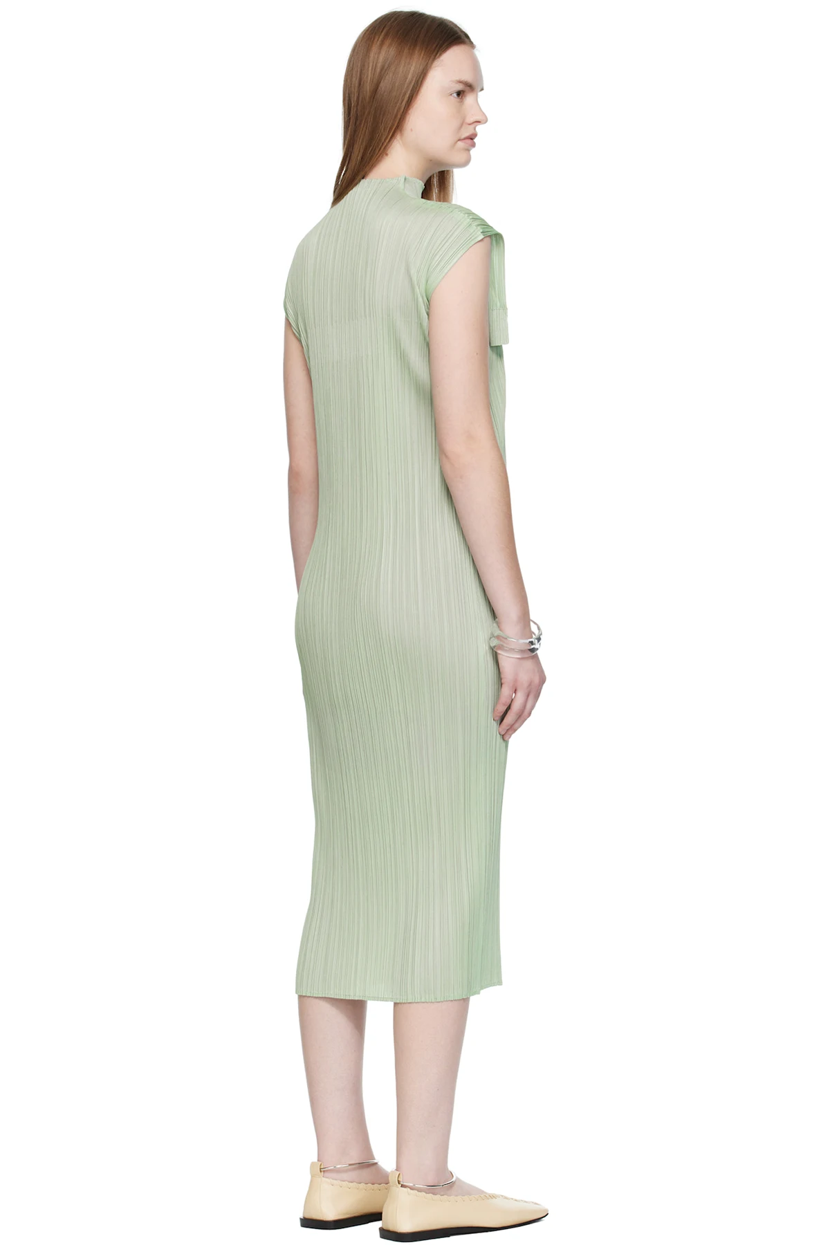 Garment-pleated tricot maxi dress.