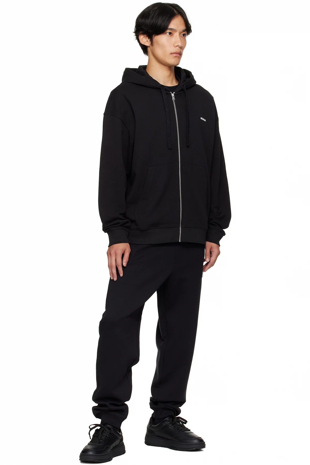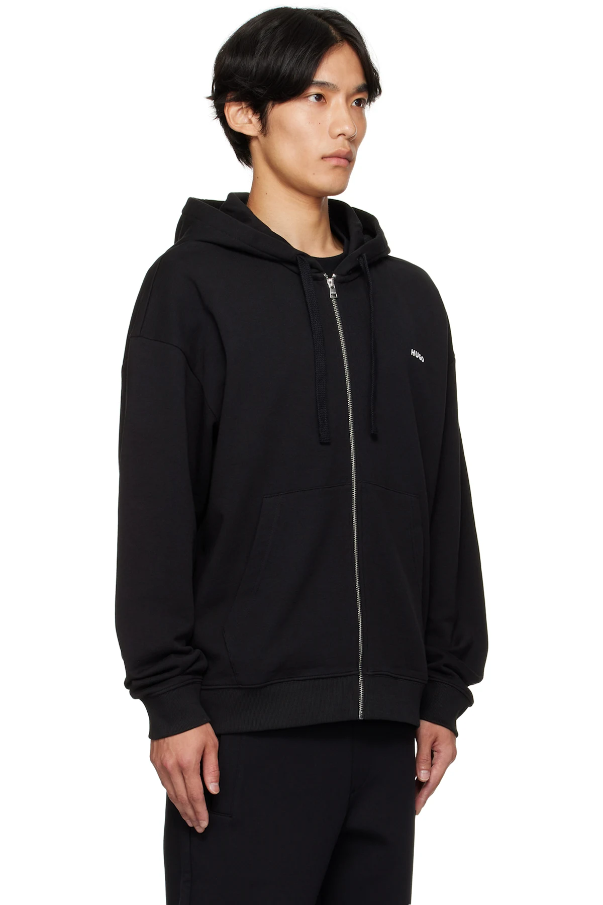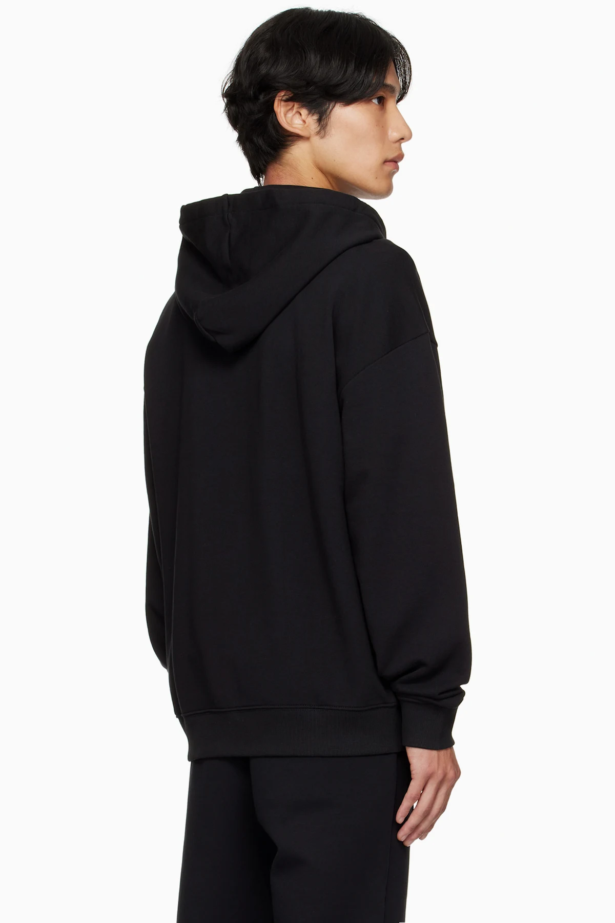 Black Relaxed-Fit Cotton Terry Zip-Up Hoodie