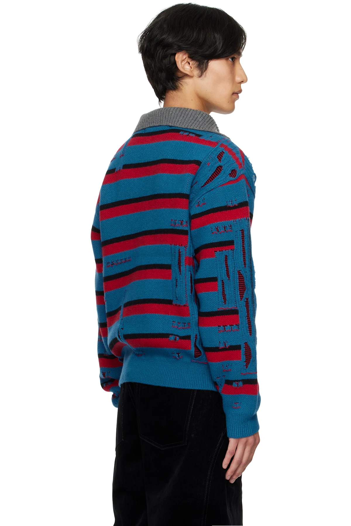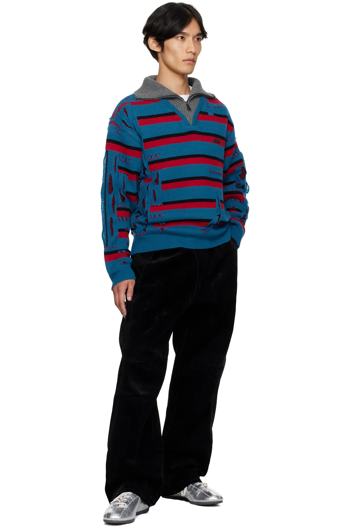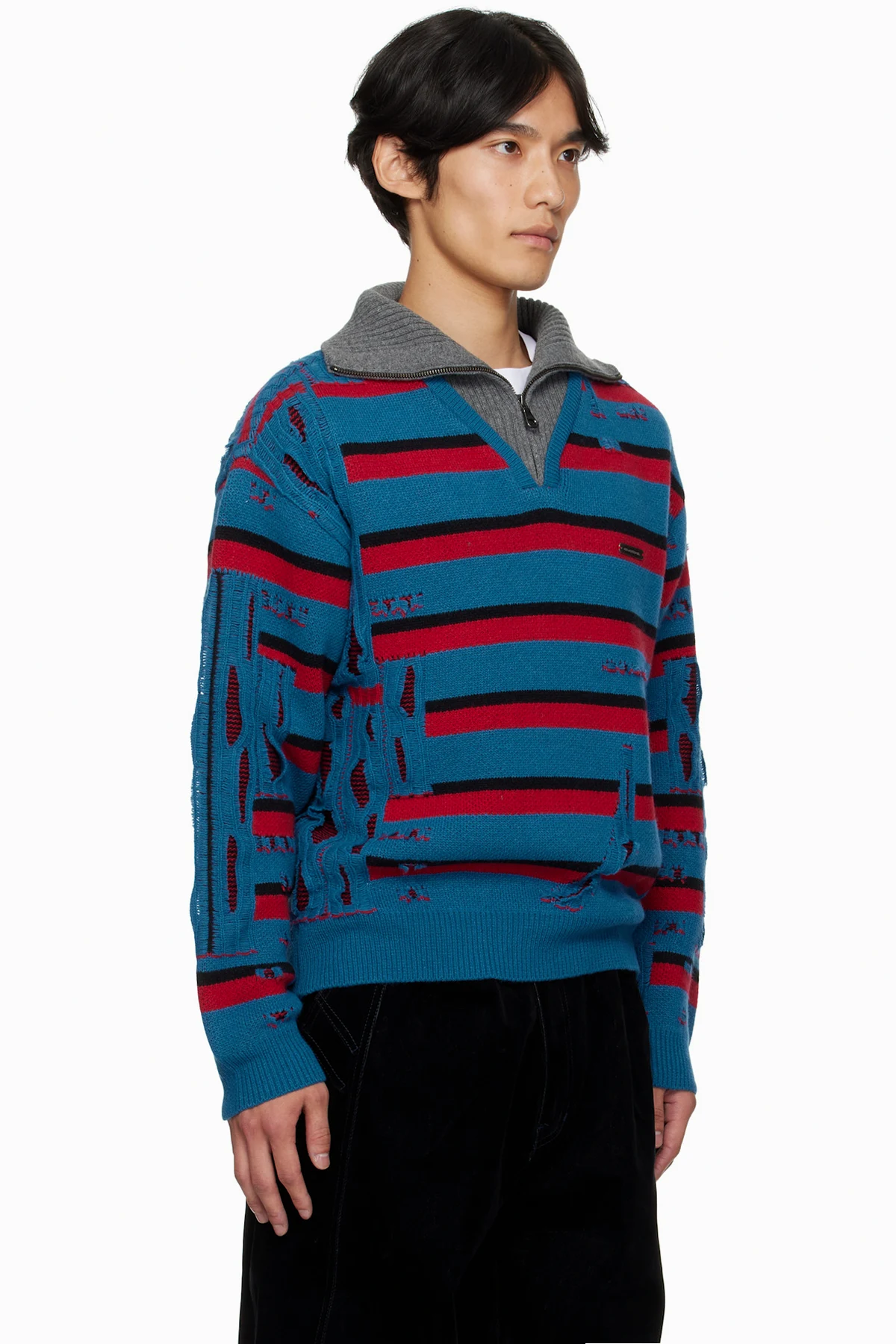 Blue & Red Stripe Jacquard Half Zip Sweater
