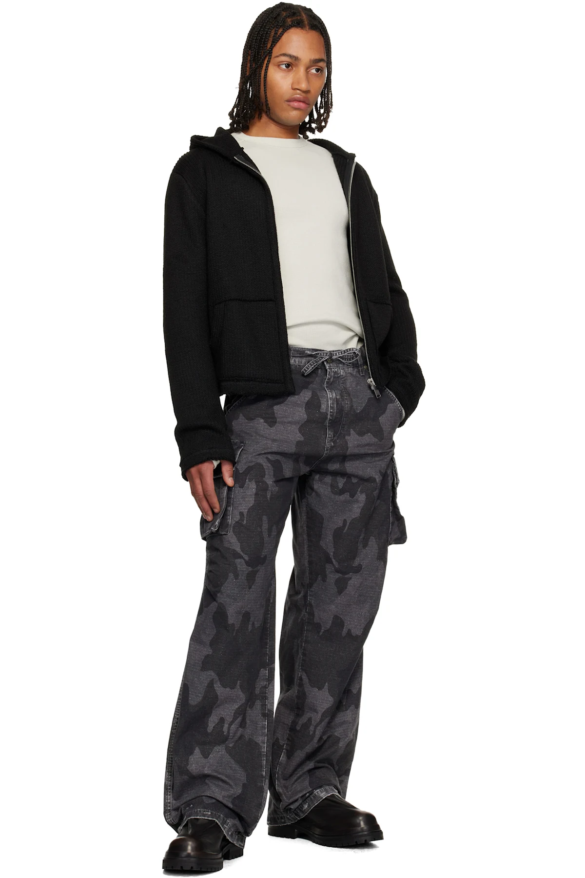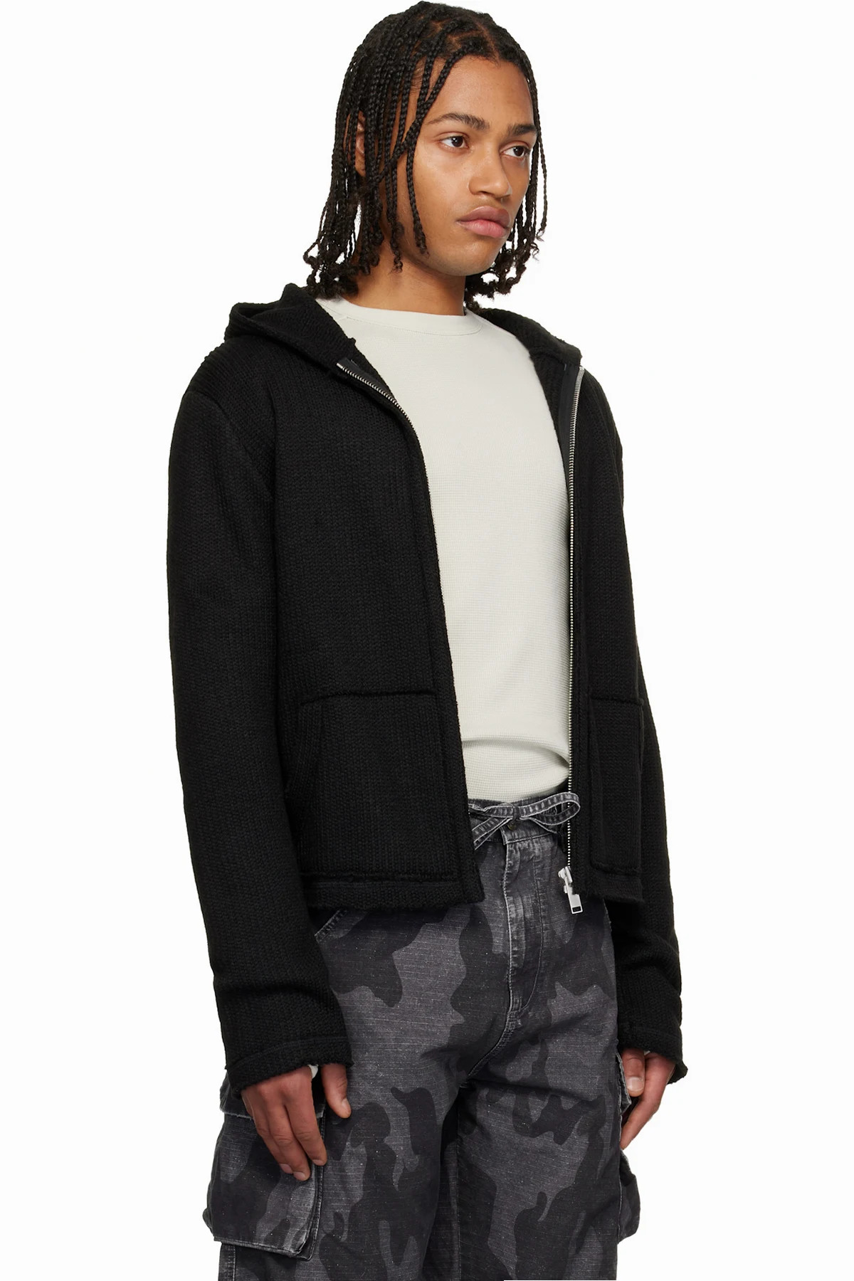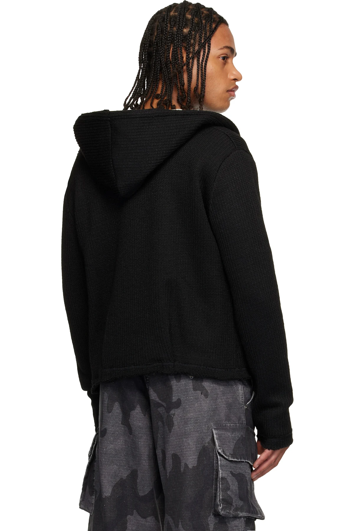 Rib-knit hoodie.