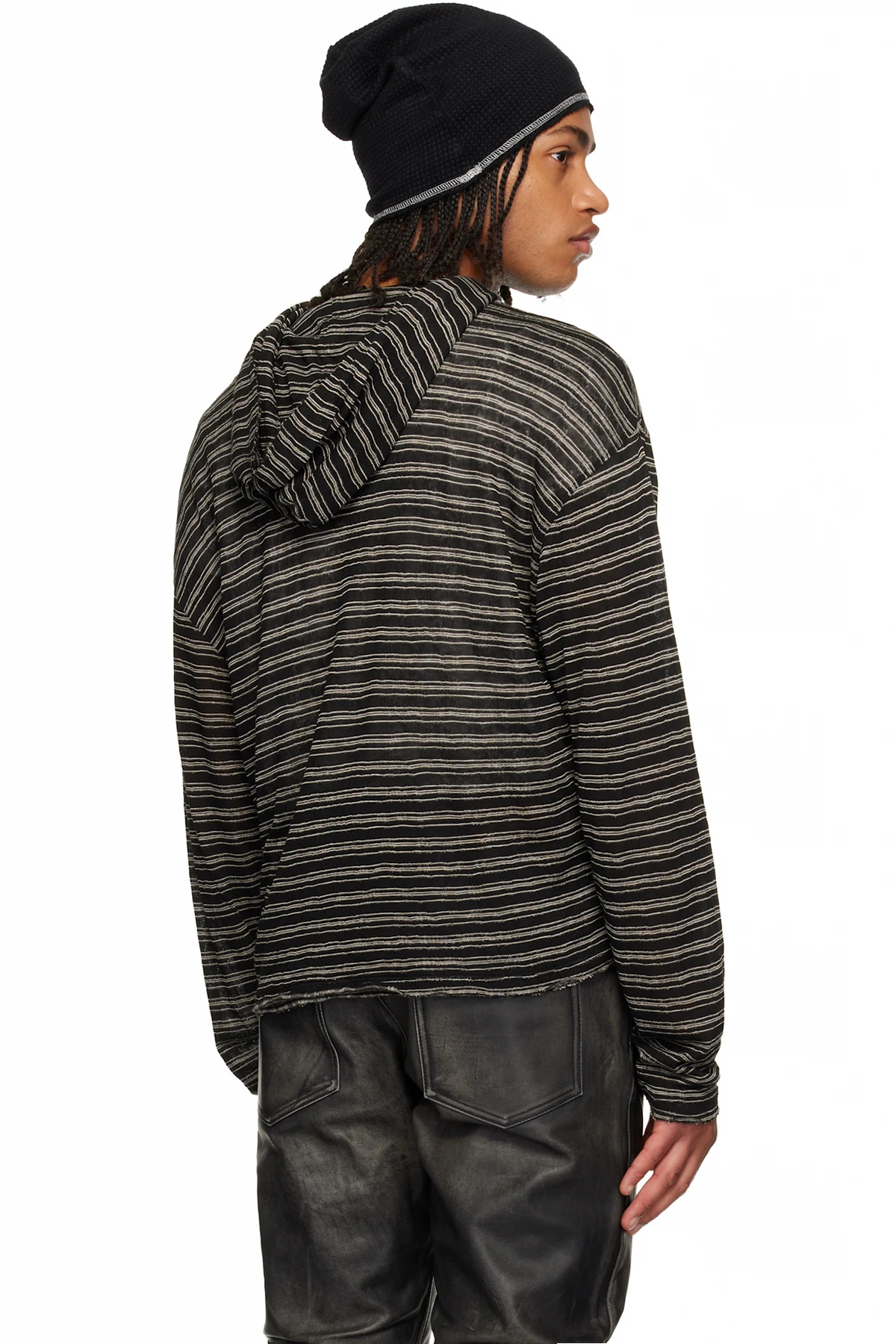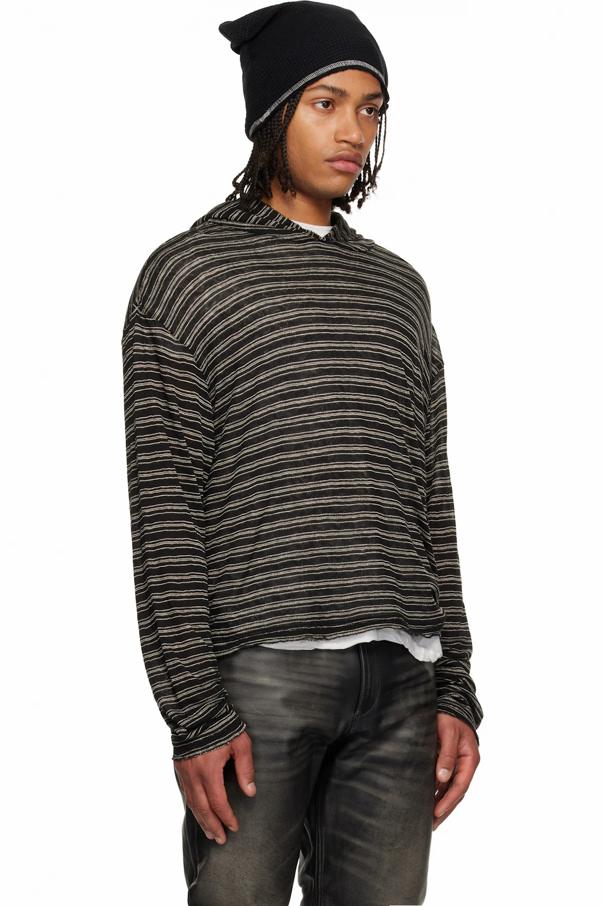 Semi-sheer knit hoodie.