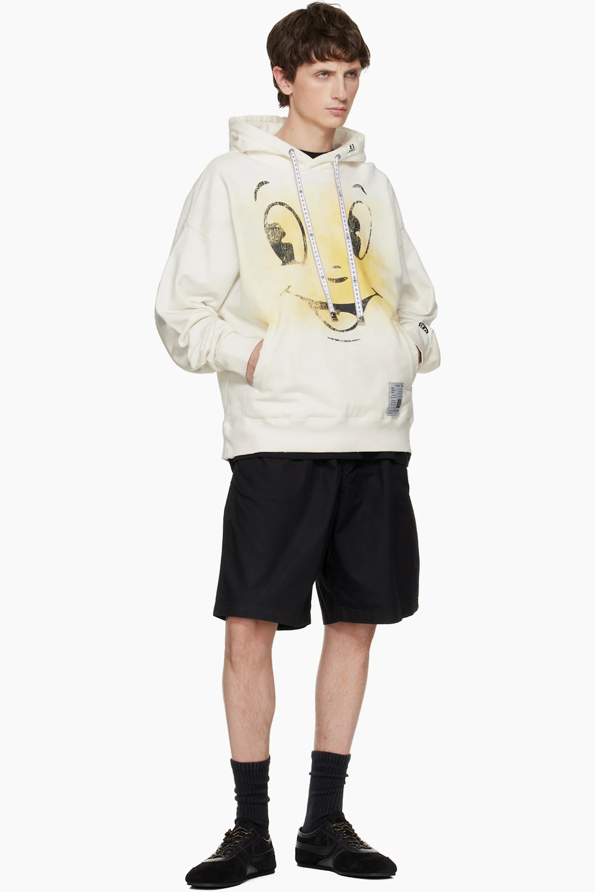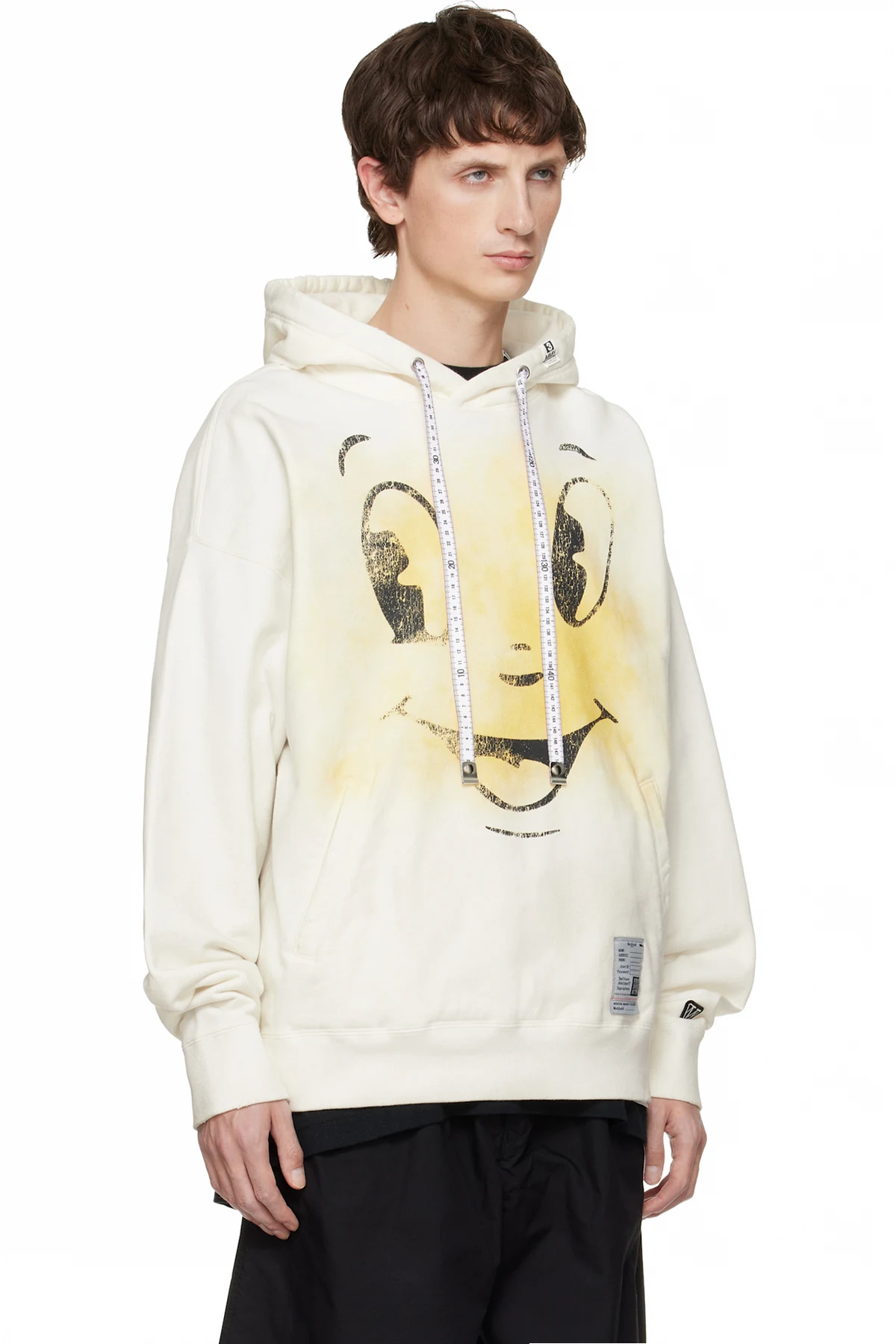 White Happy Face Printed Distressed Hoodie