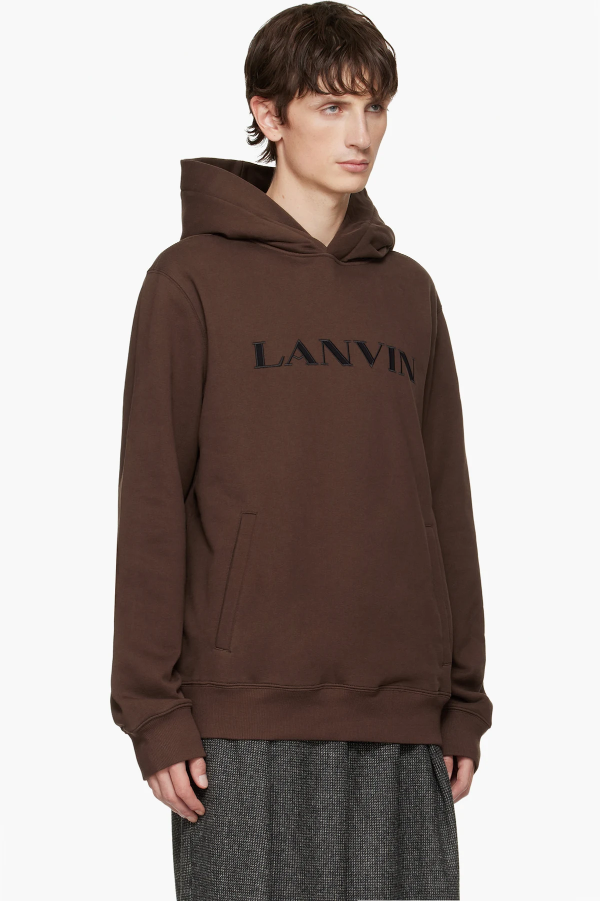 Brown 'Lanvin' Embroidered Cotton Hoodie