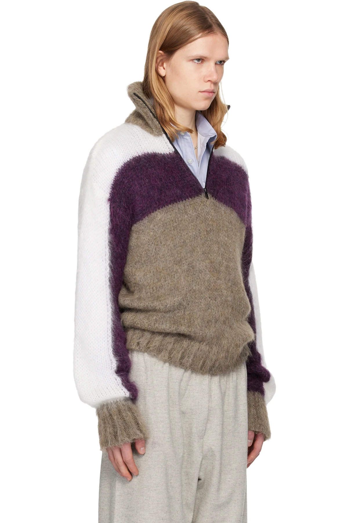 Brushed knit mohair-blend sweater.